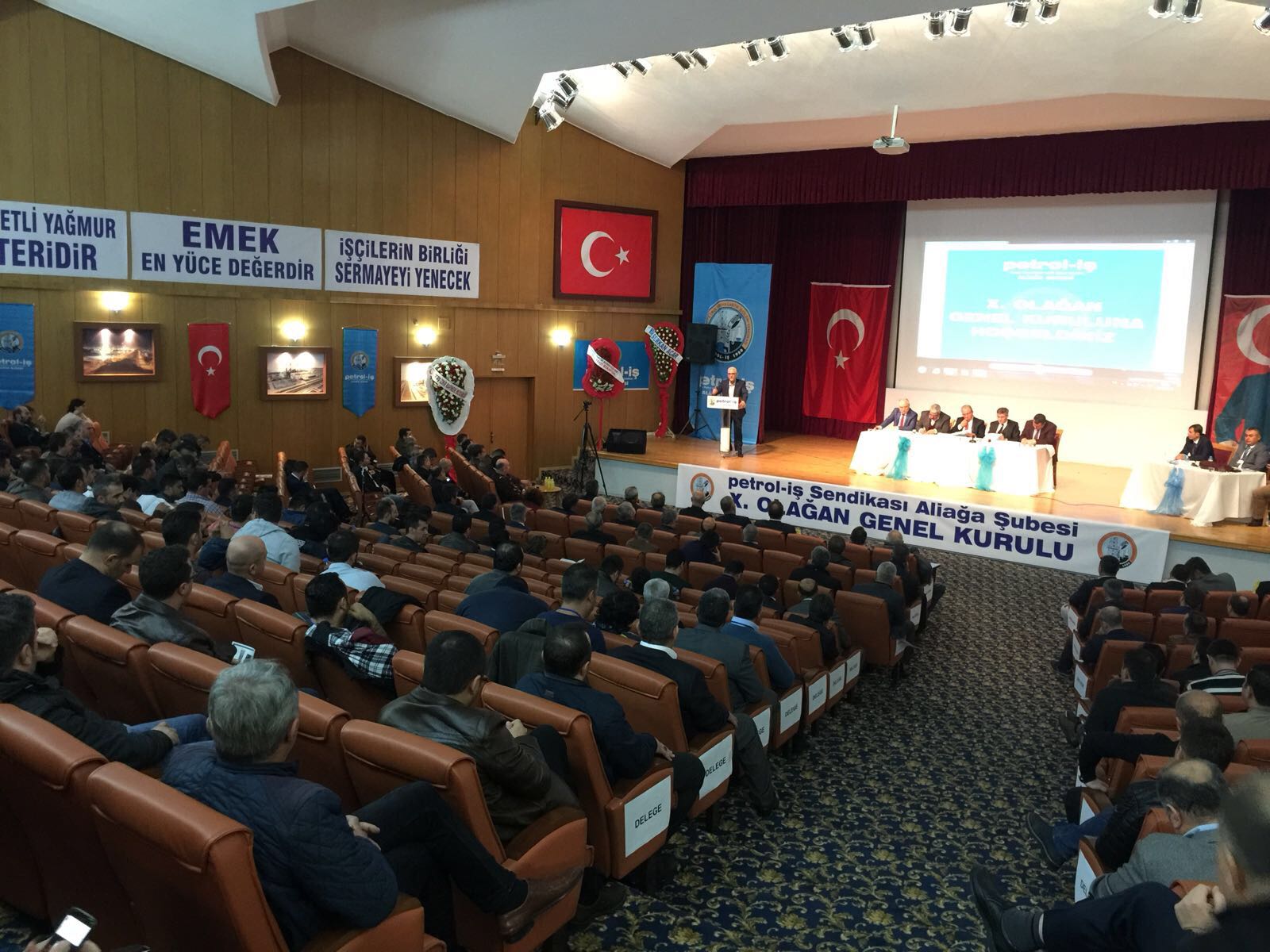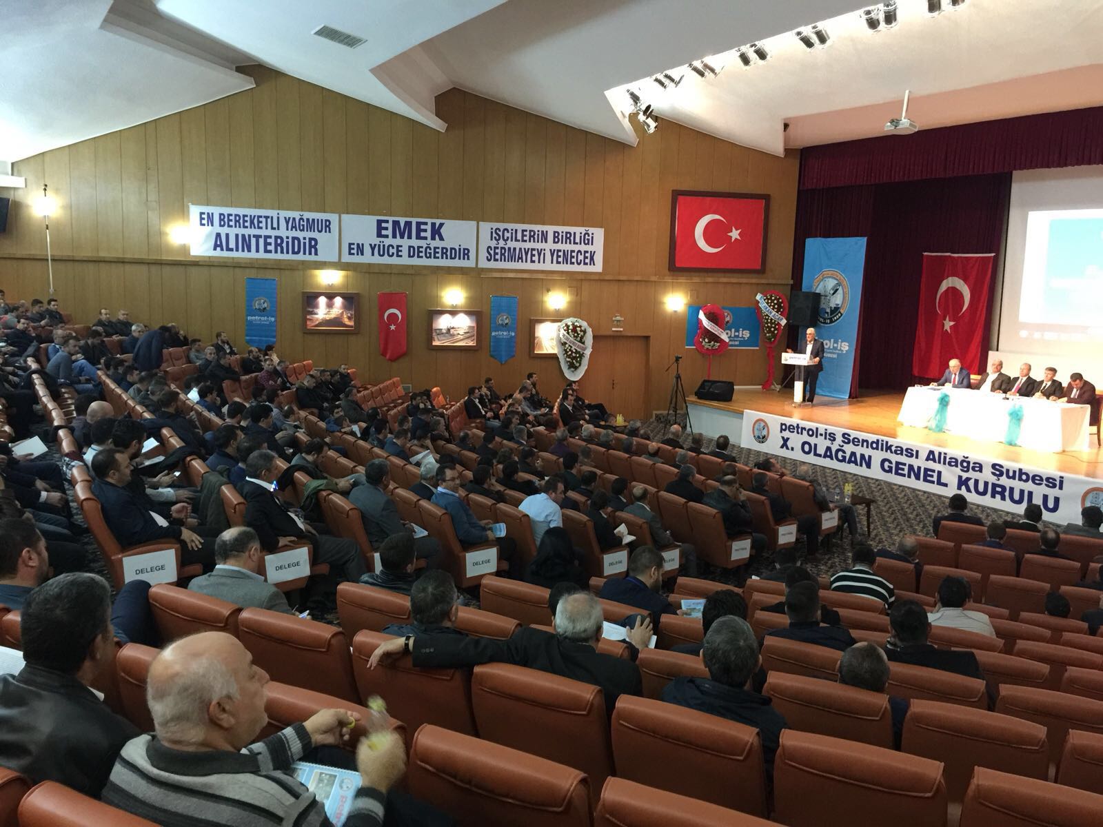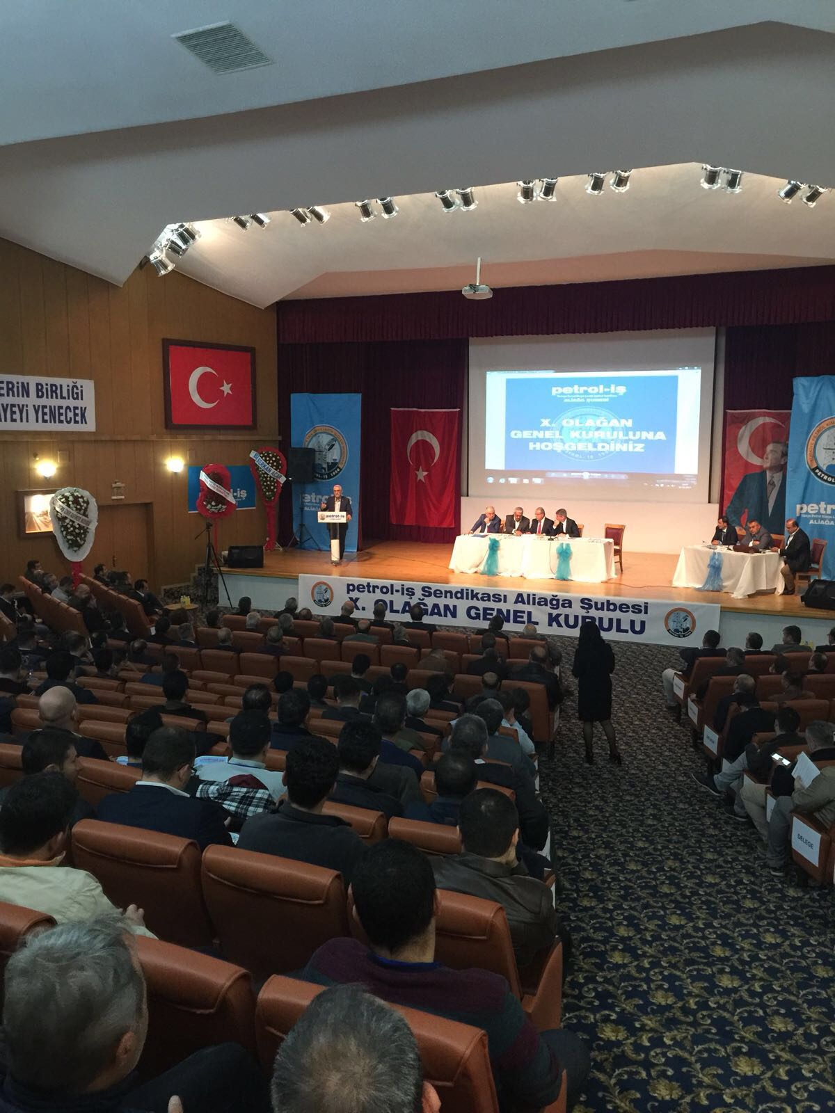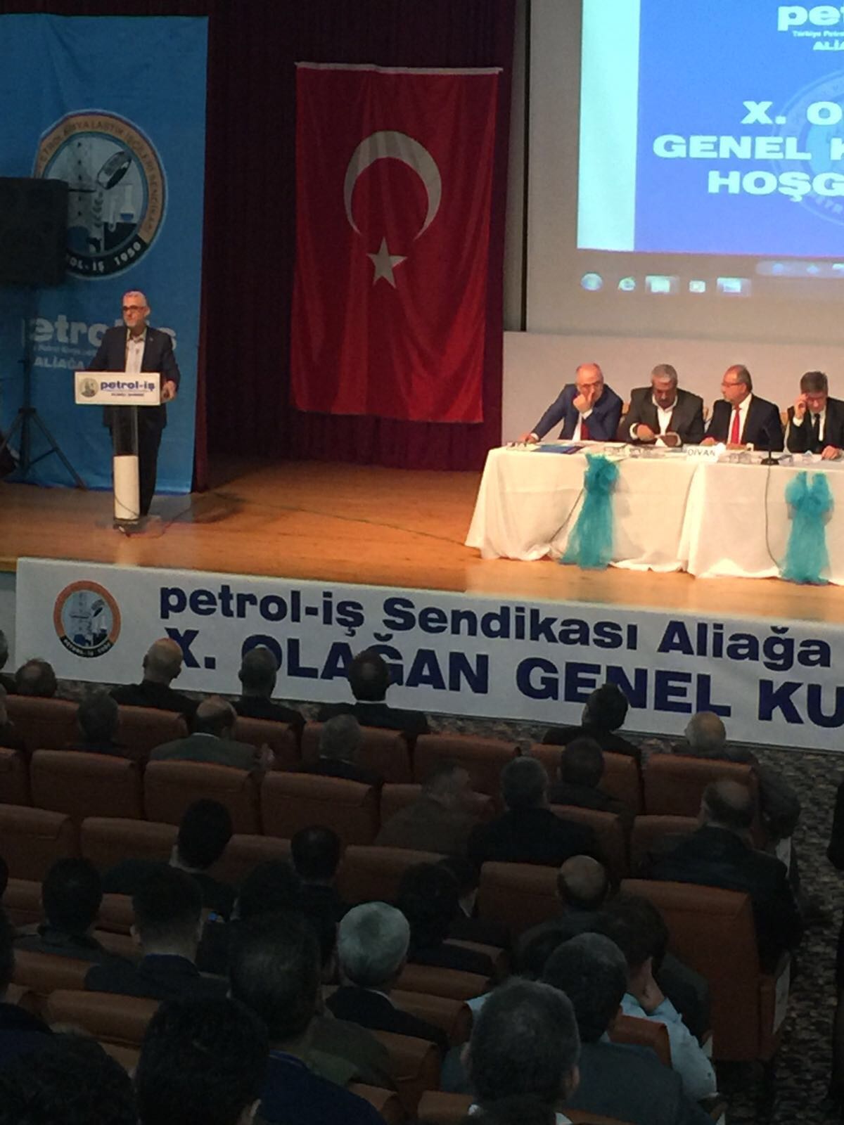 Aliağa Şubemizin 10.Olağan Genel Kurulu’na Petrol-İş Merkez Yönetim Kurulu üyeleri, Denetim ve Disiplin Kurulu üyeleri, şube başkanları, şube yöneticileri, şubemizin örgütlü olduğu işyerlerinden temsilciler ve üyelerimiz de katıldı.