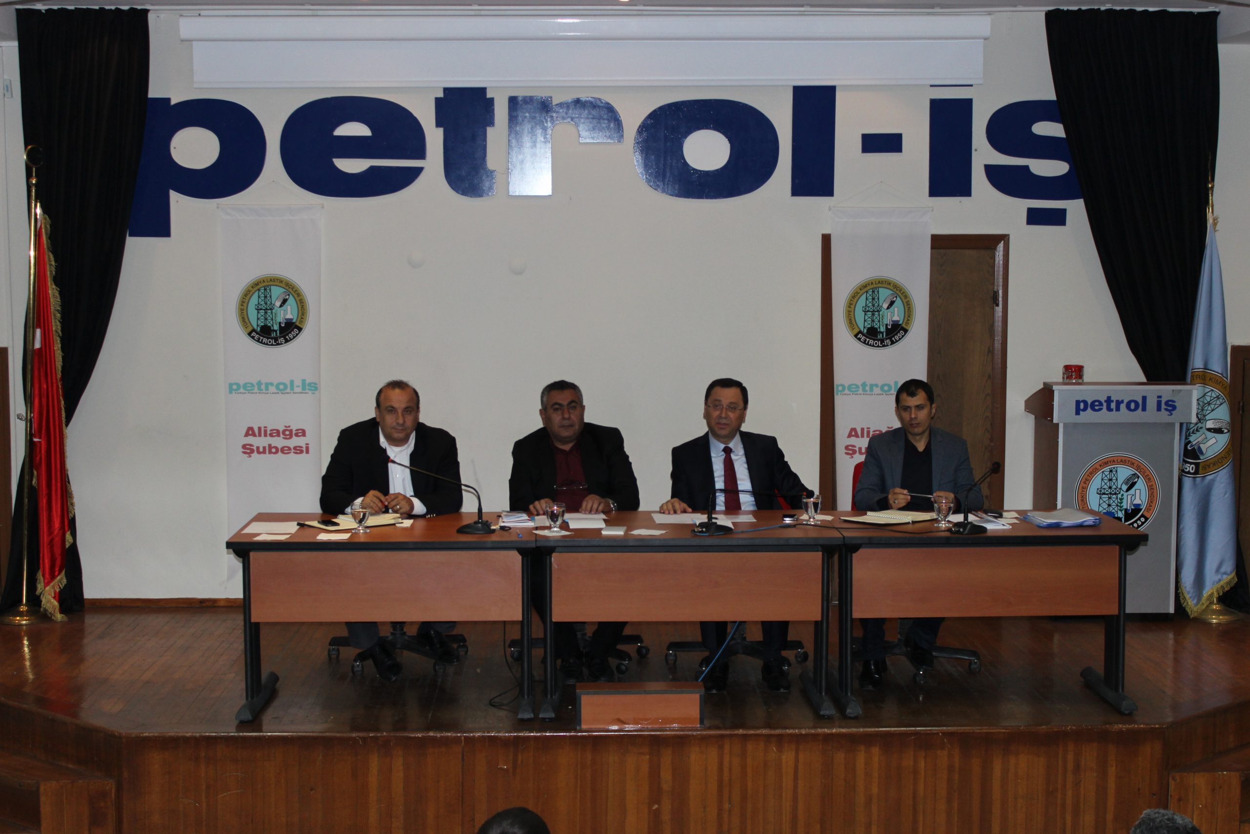 Petrol-İş Sendikası Aliağa Şubesi’nin Temsilciler Kurulu toplantısı, 31 Ekim Cuma günü, Genel Başkan Mustafa Öztaşkın’ın katılımıyla Aliağa Şube’de yapıldı. Toplantıda Ermenek ve Soma’da yaşanan iş cinayetlerinin yanısıra Filistin, Lazkiye, Musul-Kerkük, Telefer, Rojava ve Kobani’de yaşanan insanlık dramı da konuşuldu.