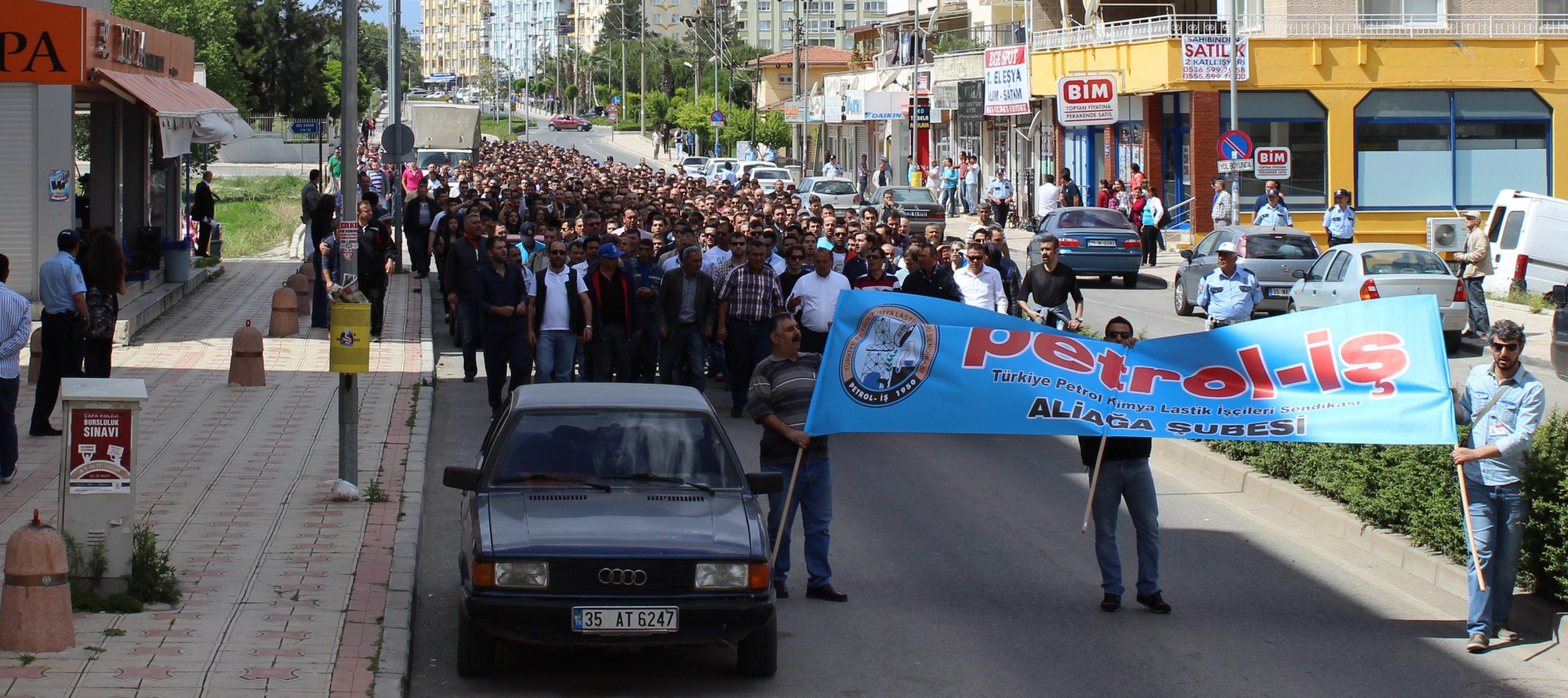 Soma’da 13 Mayıs 2014 tarihinde meydana gelen iş cinayetini protesto etmek için Türk-İş Yönetim Kurulu’nun aldığı karar doğrultusunda 15 Mayıs Perşembe Günü Aliağa Şubemize bağlı Petkim, Tüpraş, Star Rafinerisi, Saybolt, Ravago işyerlerimizde bir günlük iş bırakma eylemi gerçekleştirildi.