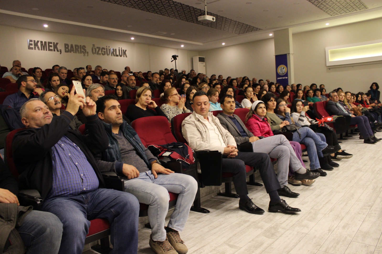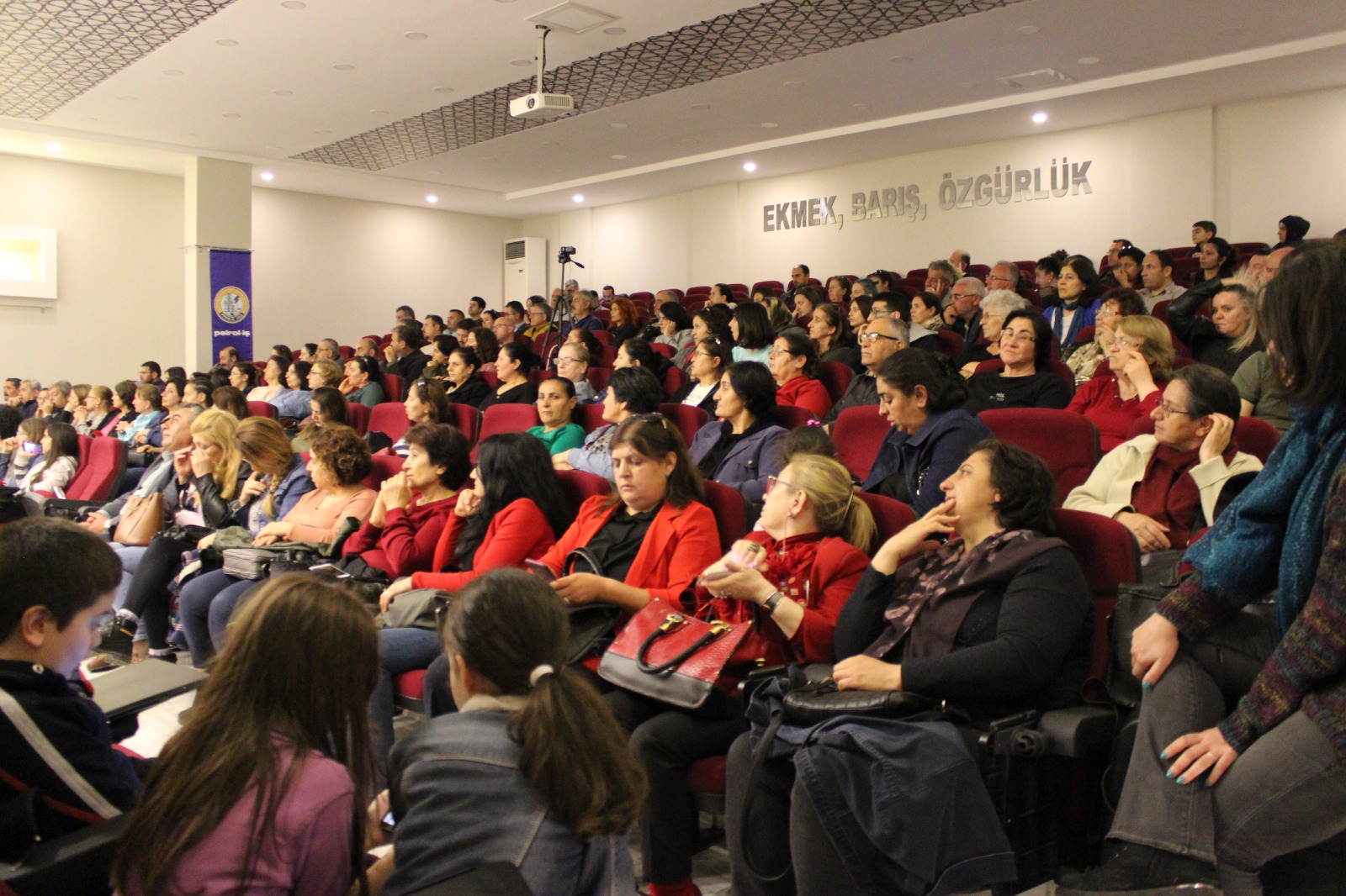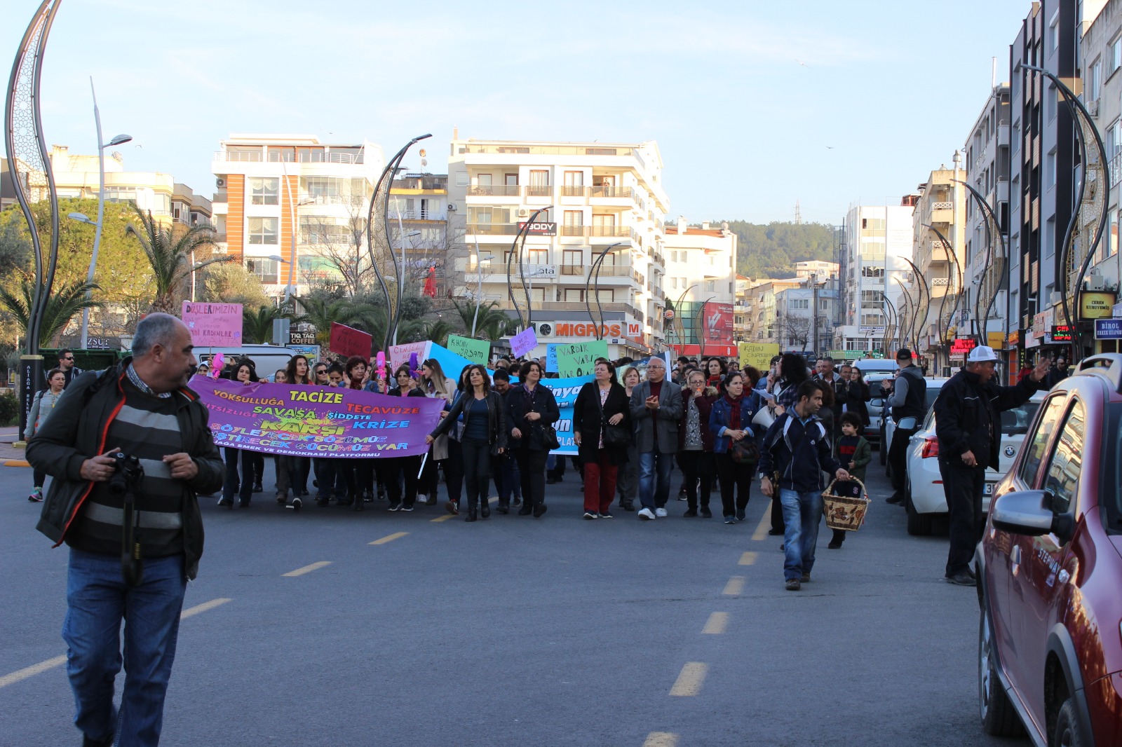 Demokrasi Meydanı’nda bir araya gelen kadınlar, hazırladıkları pankart ve dövizlerle birlikte Hükümet Caddesi üzerinde yürüyüşe geçti. Aliağa Petrol İş Sendikası’na kadar yürüyen ve kadına karşı şiddet ve istismara tepki gösteren kadınlar, çevredeki birçok kişinin de takdirini topladı. 8 Mart etkinlikleri yürüyüşün ardından Aliağa Petrol İş Sendikası Necmettin Girirtlioğlu Konferans Salonu’nda devam etti. Salonda Aliağa Emek ve Demokrasi Platformu adına Petrol İş Sendikası üyesi Ebru Er günün anlam ve önemine dair bir konuşma yaptı. Konuşmanın ardından katılımcılara bir sinevizyon gösterimi izletildi. Etkinlik şiir ve müzik dinletisi ile son buldu.
