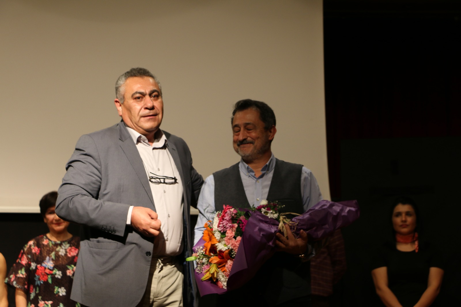Gecenin sonunda Petrol-İş Sendikası Aliağa Şube Başkanımız Ahmet Oktay sahneye çıkarak Yönetmen Cihangir Turantaş’a başarısından dolayı teşekkür etti ve gecenin anısına plaket verdi.