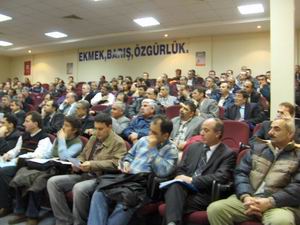 “Temiz ve Yenilenebilir Enerji Kaynakları – Aliağa’nın Jeotermal Potansiyeli” Konulu Sunum Şubemiz Konferans Salonunda 02 Mart 2006 günü saat 13.30’da başladı.Toplantıya çok sayıda demokratik kitle örgütü, siyasi parti, meslek odası ve dernek temsilcisi katıldı. Sunumu Jeoloji Y. Mühendisi Dr. Tuncer EŞDER yaptı. Türkiye’nin pek çok bölgesinde MTA adına çalışmalar yaptıktan sonra 1996 yılında emekli olan Eşder, Aliağa ve çevresinin pek çok yerinde de araştırmalar yapmış bir bilim insanı.Doğalgaz hattının en kısa zamanda bitirilip, Aliağa’nın doğalgaz ile ısınması için girişimlerin hızlandırıldığı, bir şirket aracılığı ile abone kaydına başlandığı bugünlerde, jeotermal enerji tartışması yeniden başladı.“Yurttaş İnisiyatifi” adı altında bir araya gelen kurum temsilcileri, ‘sanayide doğalgaz – ısınmada jeotermal’ parolası ile kamuoyu oluşturma kararı aldı.Bu sunumun ardından Aliağa’nın Samurlu Köyü yakınlarına kurulması planlanan, demir çelik fabrikalarından çıkan baca küllerinin içindeki ağır metalleri ayrıştırma tesisine onay verilmemesi için neler yapılması gerektiğini tartıştı. Akşam saat 18.00.’ ise İzmir Tabip Odası Başkanı Dr. Zeki Gül, SES İzmir Şube Başkanı Dr. Ergün Demir ve İzmir Milletvekili Hakkı Ülkü’nün konuşmacı olarak katıldığı “SSGSS Yasa tasarısı neler getiriyor- Ne Yapmalı” konulu panel yapıldı.