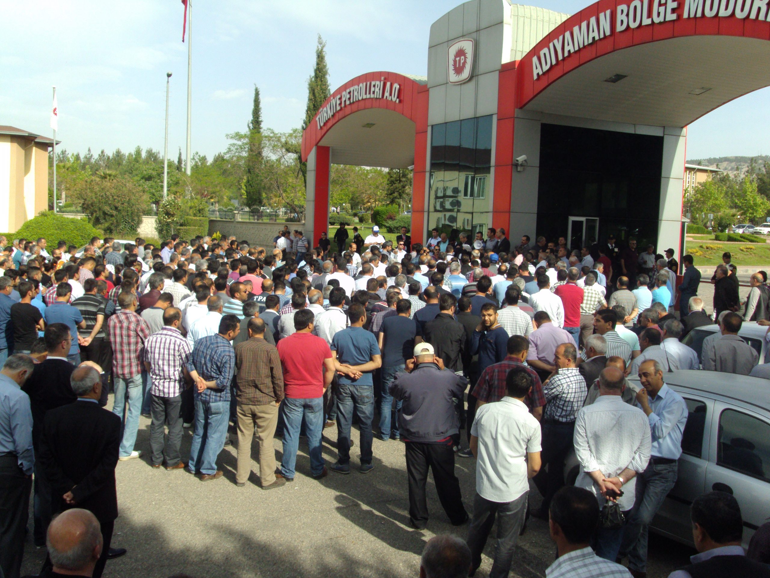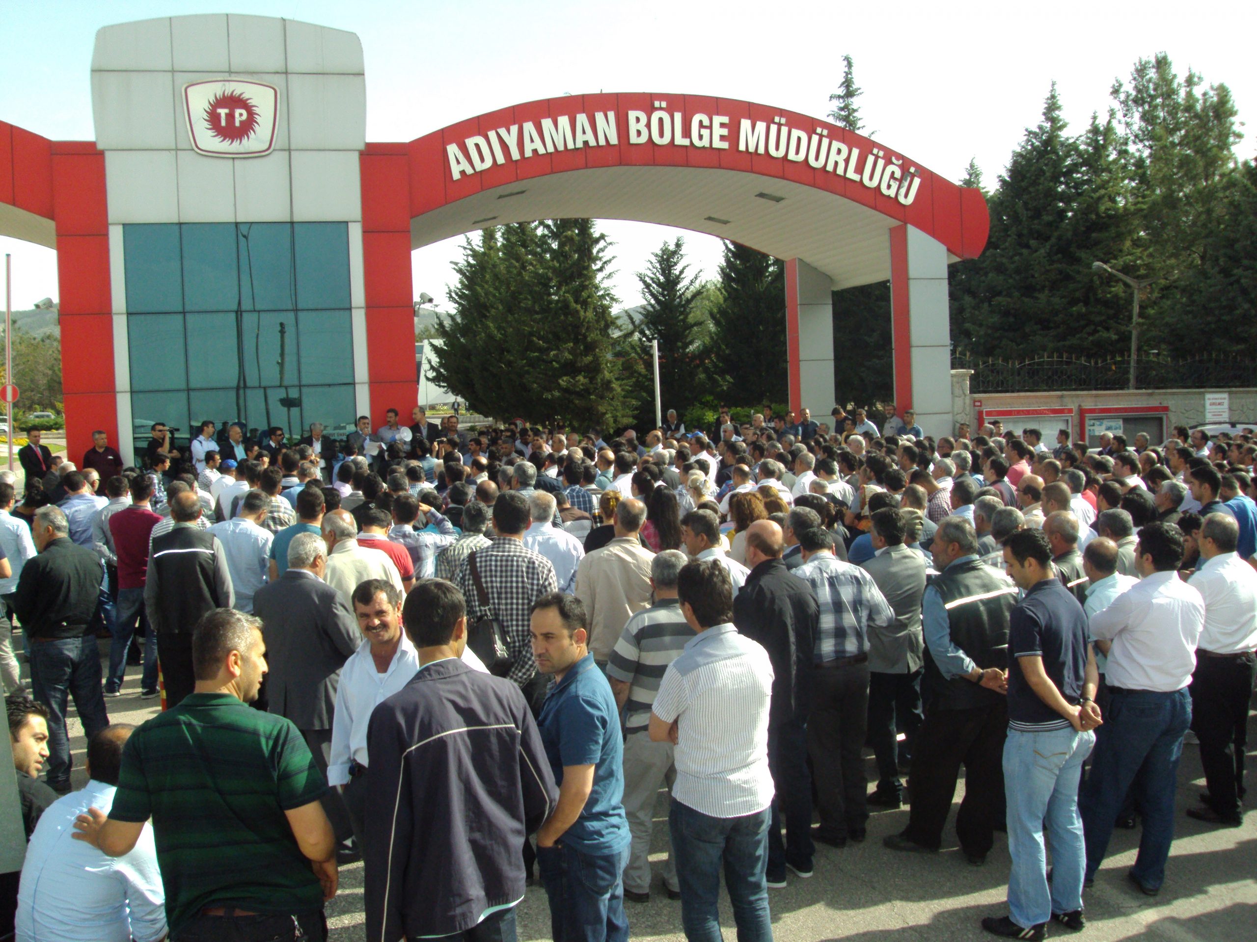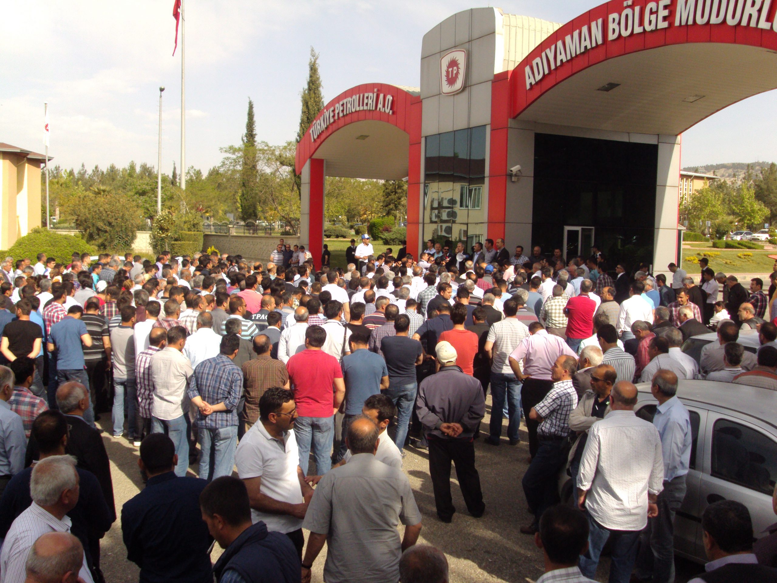 Adıyaman TPAO Bölge Müdürlüğünde çalışan Petrol-İş Sendikası üyeleri  sabah erken saatlerde iş bırakarak bölge binasına yürüdü.  TPAO çalışanları  sık sık “TPAO bizimdir bizim kalacak”, “Direne direne kazanacağız”, “Birleşe birleşe kazanacağız”, “Bu daha başlangıç mücadeleye devam”,  “Yönetim şaşırma sabrımızı taşırma”,  “Taşeronlaşmaya hayır” sloganlarını attılar.