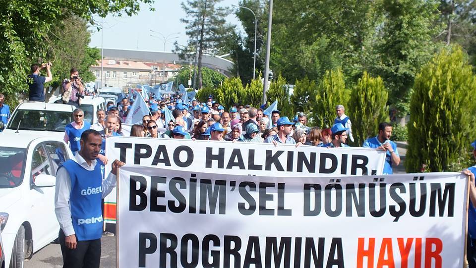 Petrol-İş Sendikası’nda örgütlü TPAO işçileri, kurumdaki işlerin parçalanarak taşeron şirketlere verilmesine karşı 5 Mayıs Pazartesi günü, yarım gün iş bıraktı. Batman, Adıyaman ve Trakya’da bölge müdürlükleri, Ankara’da ise Genel Müdürlük önünde yapılan eylemlere katılım kitleseldi. Petrol-İş Sendikası Genel Başkanı Mustafa Öztaşkın, Genel Mali Sekreteri İbrahim Doğangül ve Genel Örgütlenme ve Eğitim Sekreteri Nimetullah Sözen de alanlardaydı.
