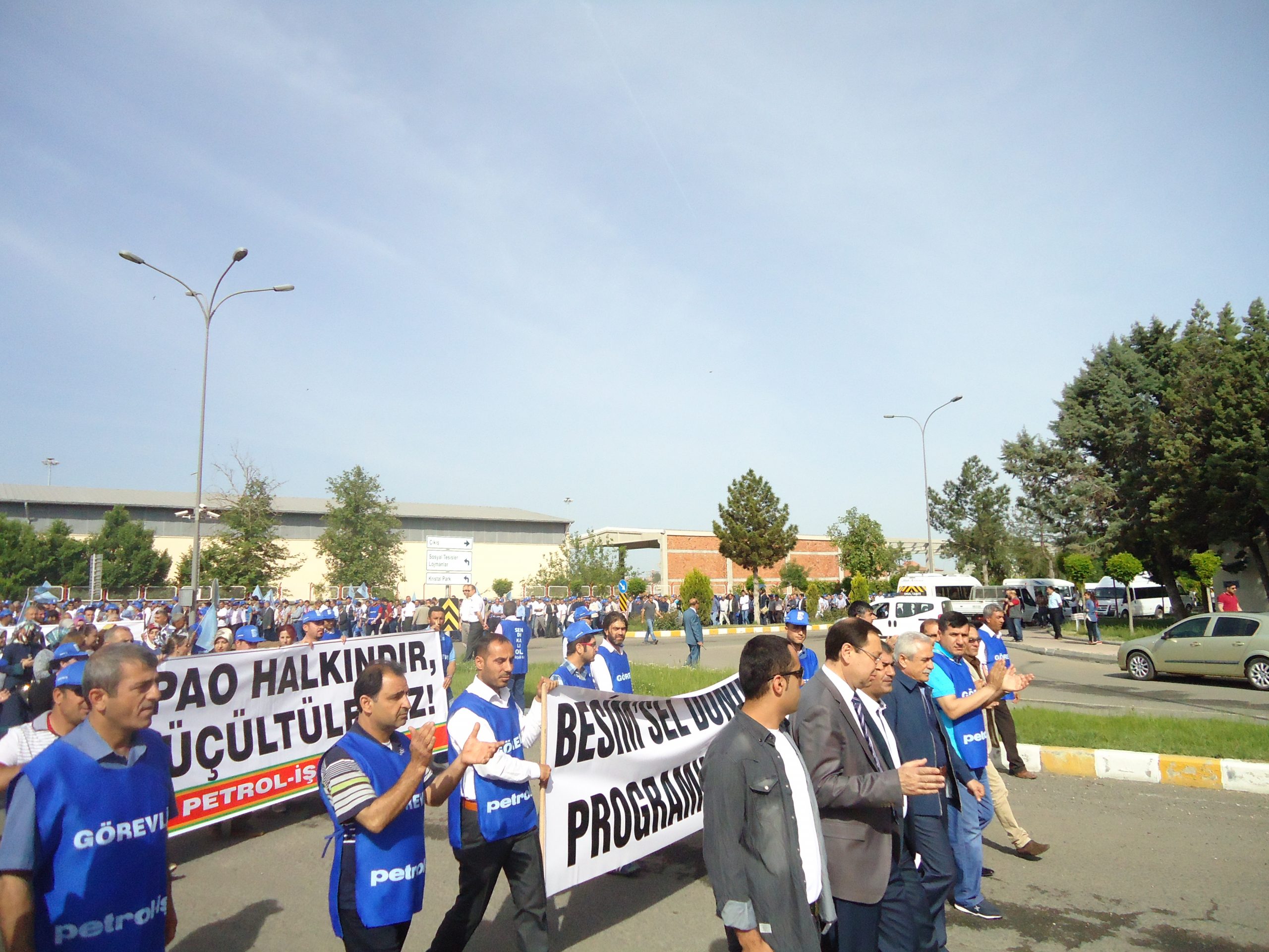 Yürüyüşün ardından üyelere hitaben bir konuşma yapan Petrol-İş Genel Başkanı Mustafa Öztaşkın “ TPAO bir süredir küçülüyor. Kurumun işleri, önceleri kadrolu personel tarafından yapılırken, bir süredir taşeronlaştırma ve hizmet alımları adı altında, birilerine adeta peşkeş çekilmektedir. Son olarak ta TPAO yönetimi tarafından, kuruluş bünyesinde sürdürülen ağır nakliyat, yol ve lokasyon yapım faaliyetlerinde çalışan işçilerin başka birimlere kaydırılması gündeme getirilmiştir. Petrol-İş üyesi TPAO işçilerine üretim birimine geçmeleri teklif edilmektedir.Söz konusu faaliyetlerde ise taşeronlaşmaya gidilecek, bu işler ya TPAO bünyesinde yeni kurulan servis şirketine verilecek ya da dışarıdan hizmet alımı yoluyla karşılanacaktır. Bu girişim kabul edilemez! ” dedi. Bu projenin TPAO’nun özelleştirmesinin önünü açacağını dile getiren Öztaşkın, özelleştirmeye karşı verdikleri mücadelenin en büyüğünü TPAO’da vermeye hazır olduklarını bildirdi. 58 milyar dolarlık özelleştirmenin 51 milyar dolarının AKP Hükümeti döneminden yapıldığı belirten Öztaşkın şöyle devam etti: “Nerede bu paralar? Bu paralar ayakkabı kutularında saklandı. Hırsızlıkları ve yolsuzlukları görün.”