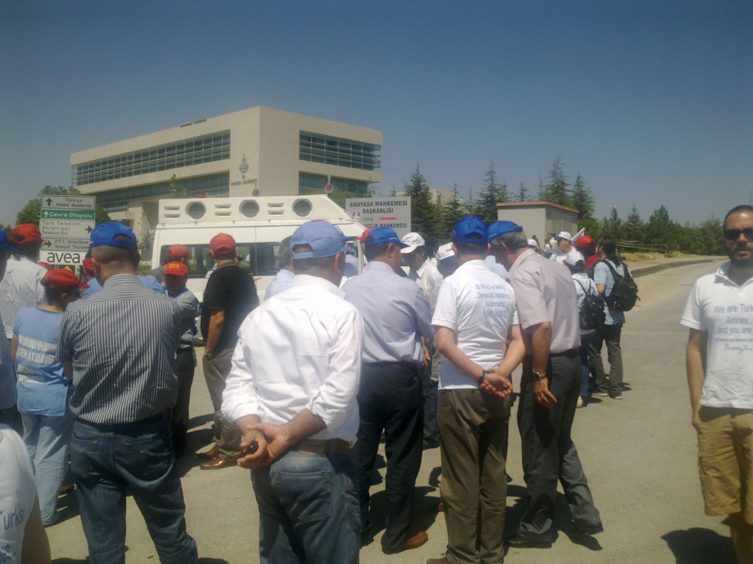 Ankara Şubemiz 11 Temmuz 2012 tarihinde Hava-İş Sendikasının Anayasa Mahkemesi önünde yapılan basın açıklamasına Şubemizin Yönetici ve Temsilcileri ile katılarak işten çıkarılan THY işçilerine destek verdiler.