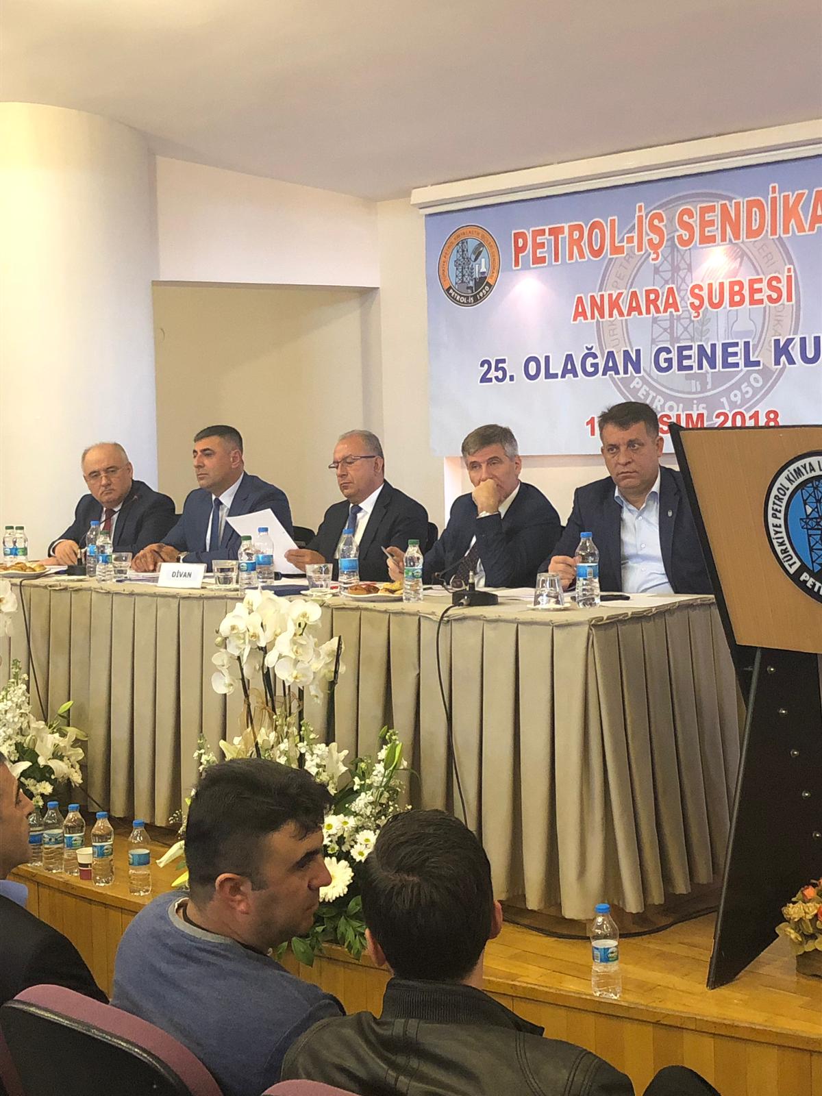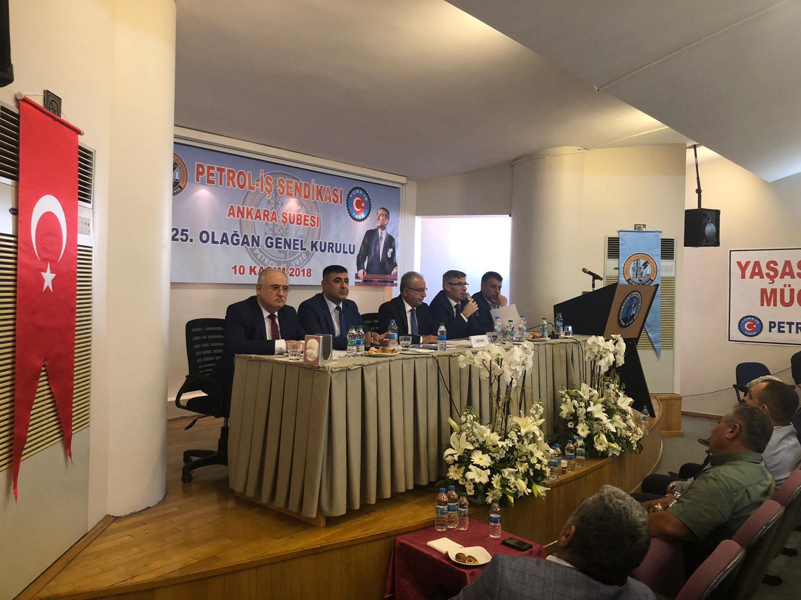 Ankara Şube 25. Olağan Genel Kurulu’na Petrol-İş Merkez Yönetim Kurulu Üyeleri, Şube Başkanları ve Yardımcıları,Merkez Denetim Kurulu Başkanı Yusuf Ziya Kahyaoğlu, Merkez Disiplin Kurulu Üyeleri Hasan Akçay, Asım Çavuşoğlu, Erdem Üstünce, Türk-İş’e bağlı Türkiye Yol-İş Sendikası Ankara 3 Nolu Şube Başkanı Şenol AKYOL, Türk Metal Sendikası Ankara 3 Nolu Şube Başkanı Nihat Zengin, 2 Nolu Ankara Şube Başkanı Halil İbrahim Alpoğlu, 1 Nolu Ankara Şube Başkanı İbrahim Biçer ve Ankara Şubemizin örgütlü olduğu işyerlerinden temsilciler ve üyelerimiz de katıldı.