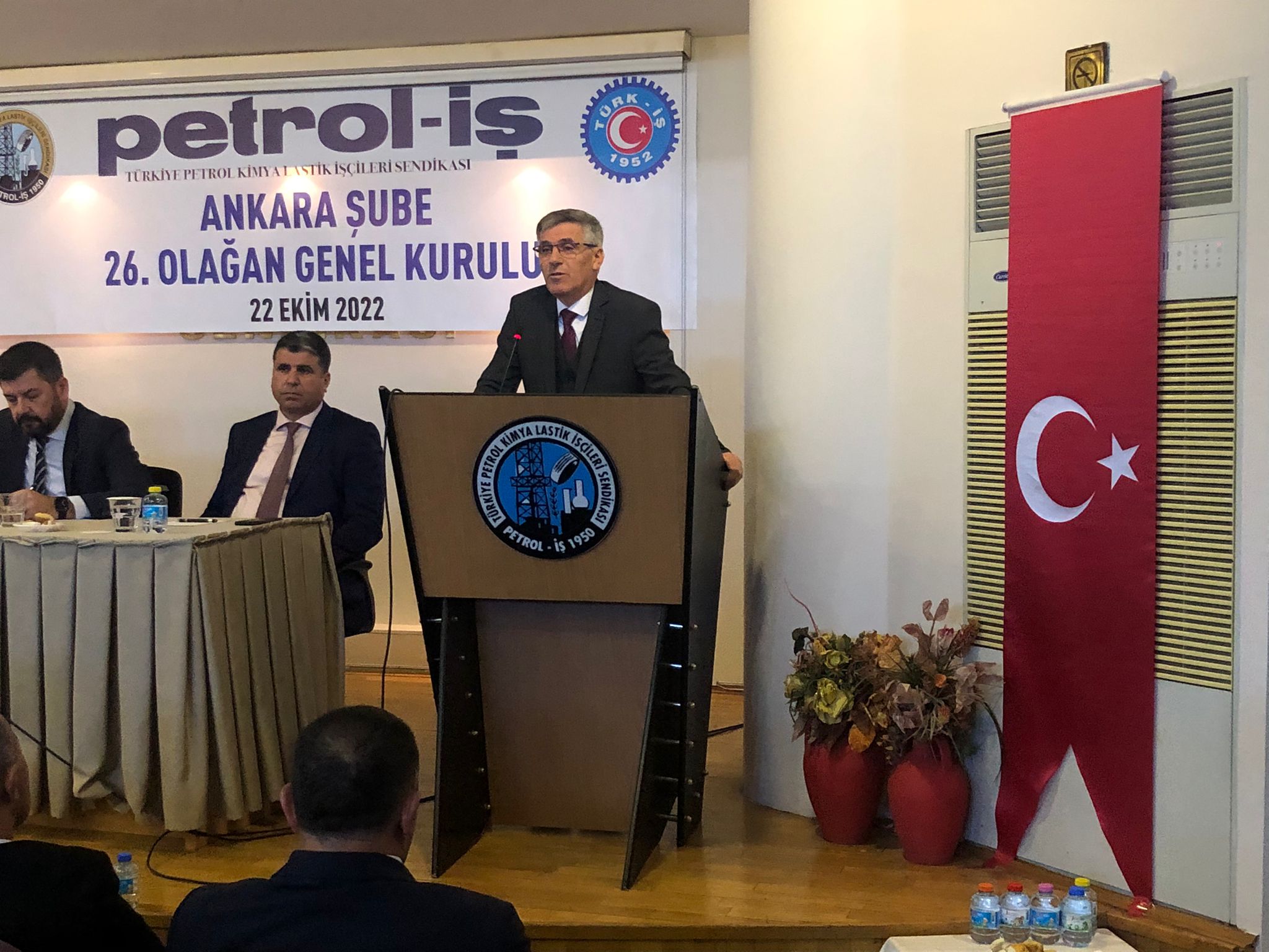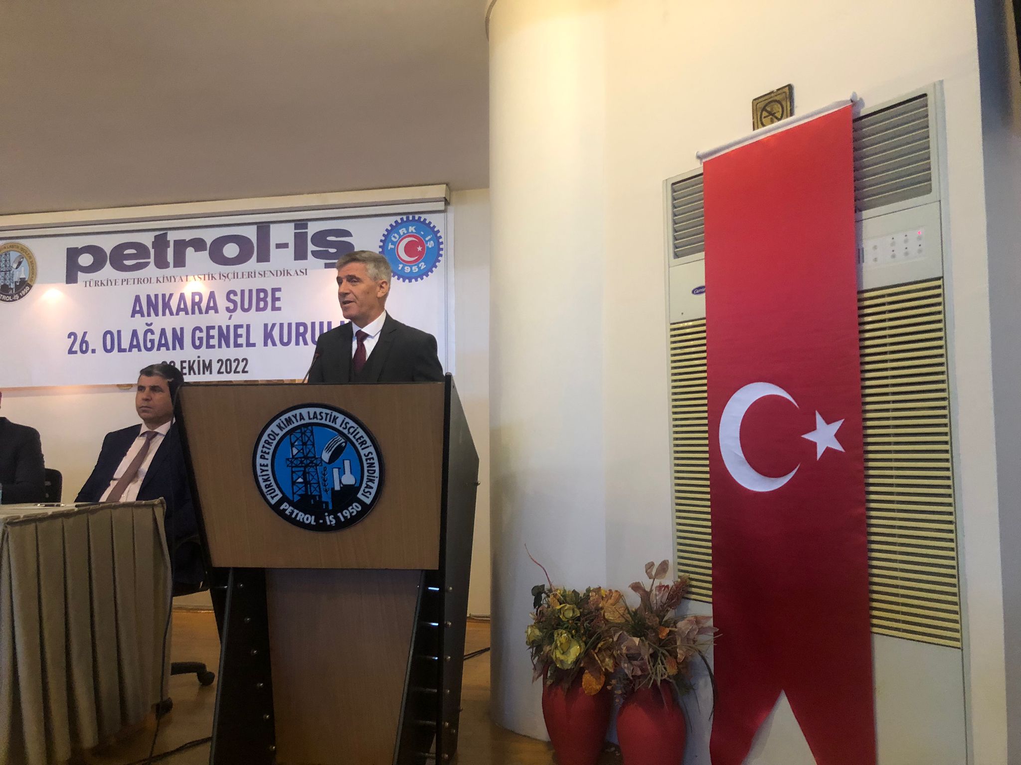 Divanın oluşmasının ardından Genel Başkanımız Süleyman Akyüz konuşmasını yapmak üzere kürsüye davet edildi. Genel Başkanımız konuşmasında Türkiye ve emek gündemine dair değerlendirmelerde bulunduktan sonra kongrenin Petrol-İş Sendikasına ve Türkiye işçi sınıfına hayırlı olmasını diledi.