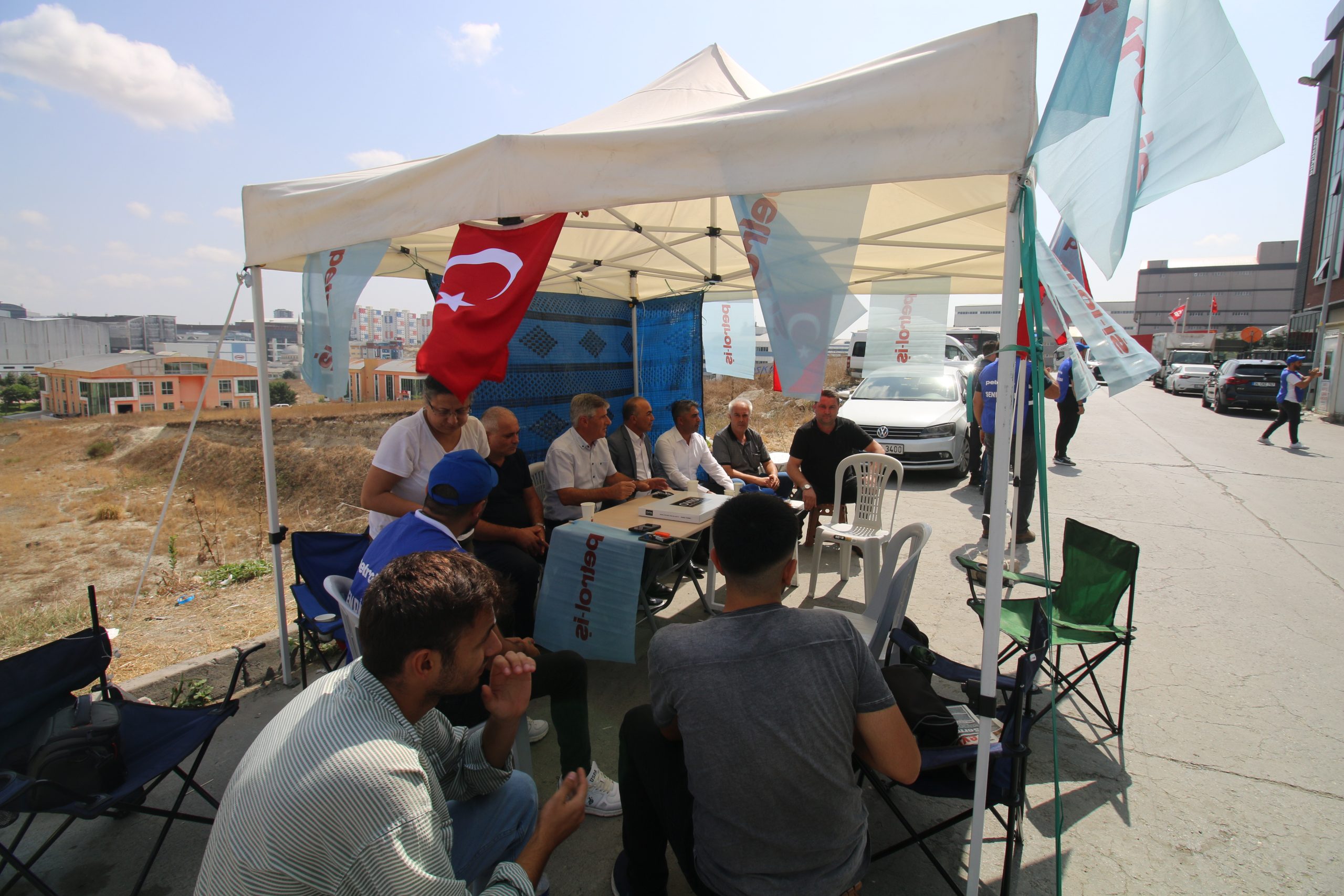 Sendikamız Genel Merkez Yönetimi 5 Eylül Perşembe günü direniş alanını ziyaret ederek üyelerimizle bir araya geldi. Fabrikada çalışmaya devam eden ve öğlen molasında olan üyelerimiz de fabrika dışına çıkarak sendikalarıyla bir araya geldi. Genel Başkanımız Süleyman Akyüz burada yaptığı konuşmasında işvereni bir kez daha pazarlık masasına davet ederek Petrol-İş Sendikası’nın diyaloğa açık olduğu mesajını yineledi. Atılan işçilerin geri alınması ve sözleşme masasına dönülmesinin Petrol-İş’in öncelikli talebi olduğunu belirten Genel Başkan Akyüz işverenin uzlaşmaz tutumunu devam ettirmesi durumunda mücadeleden kaçınmayacaklarını da sözlerine ekledi.