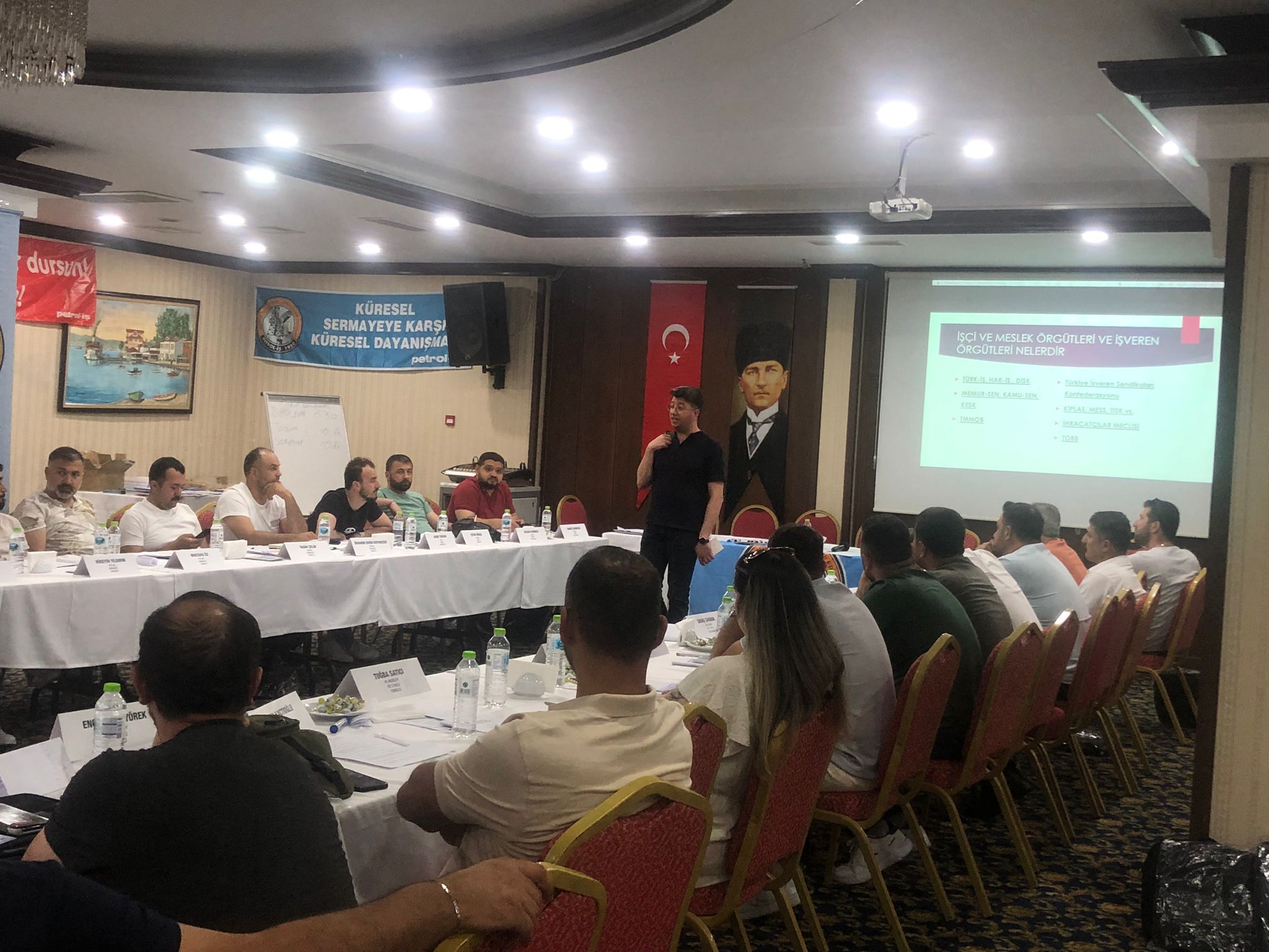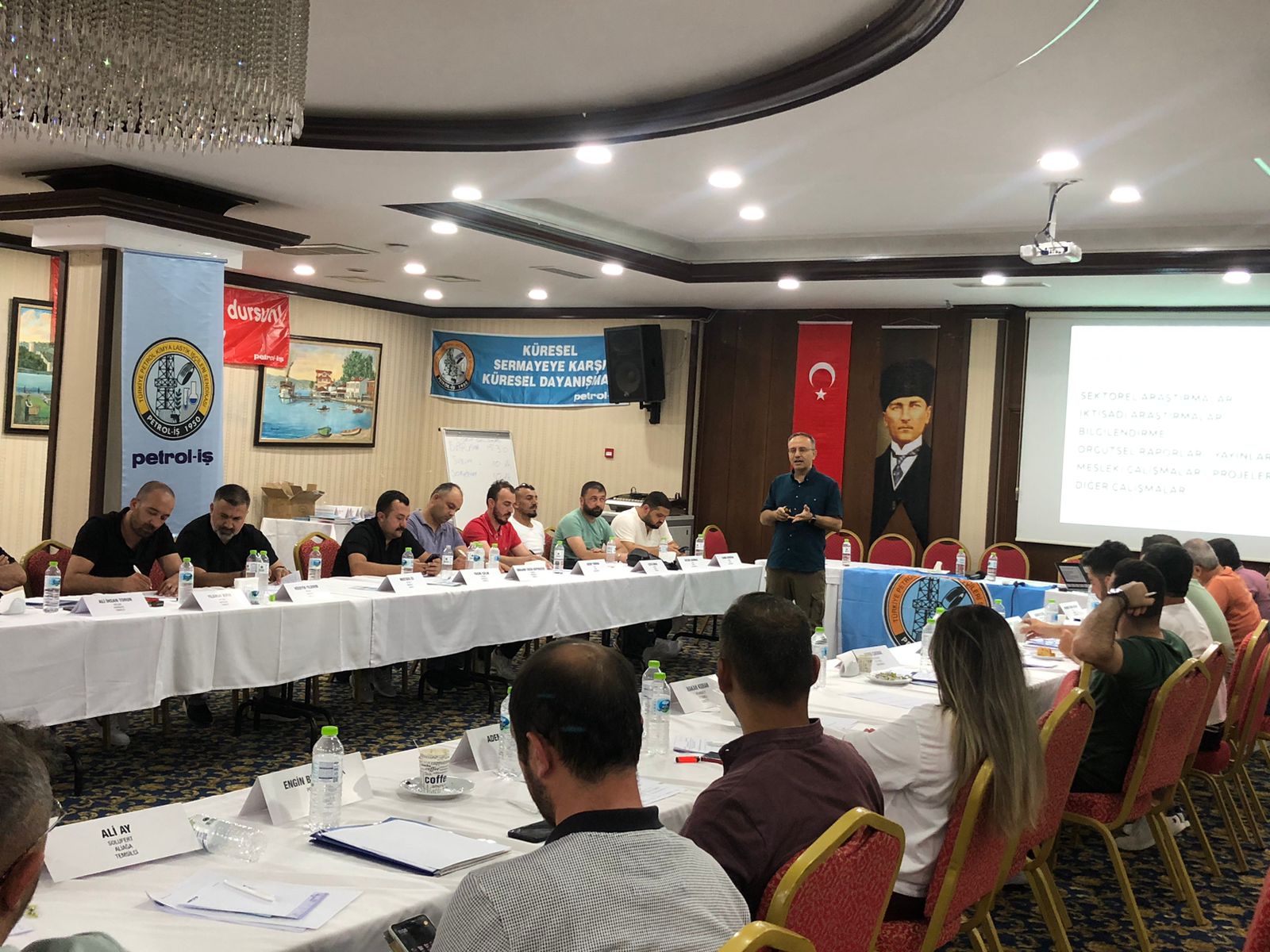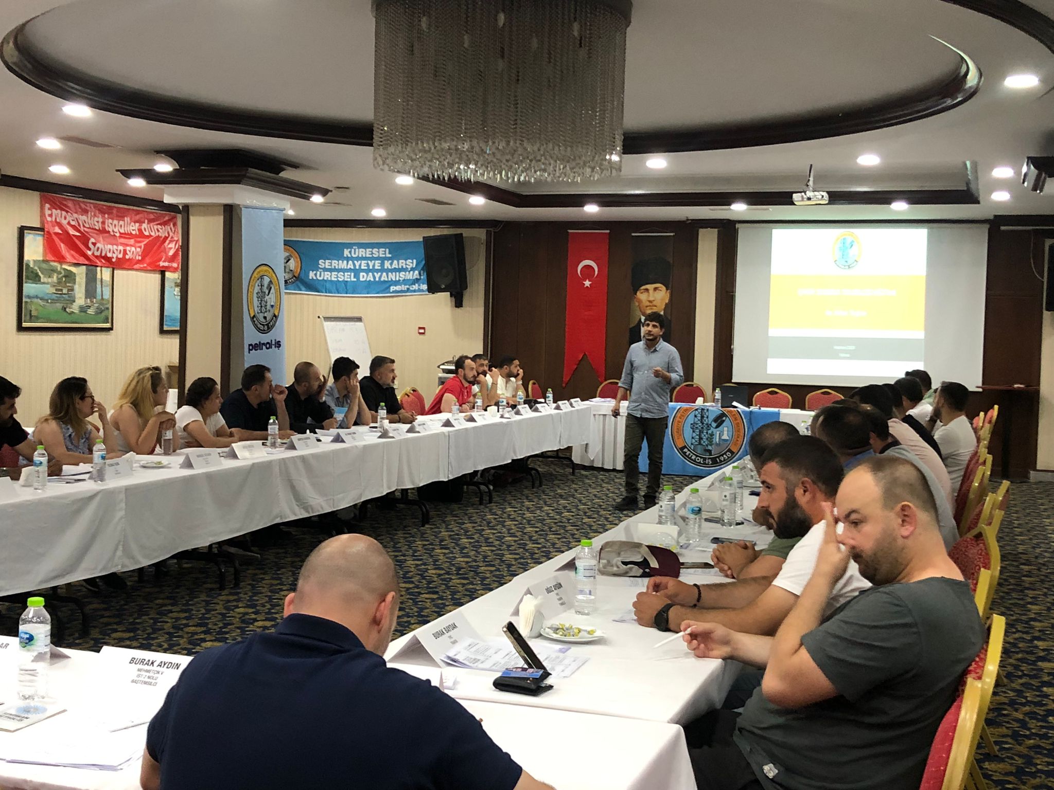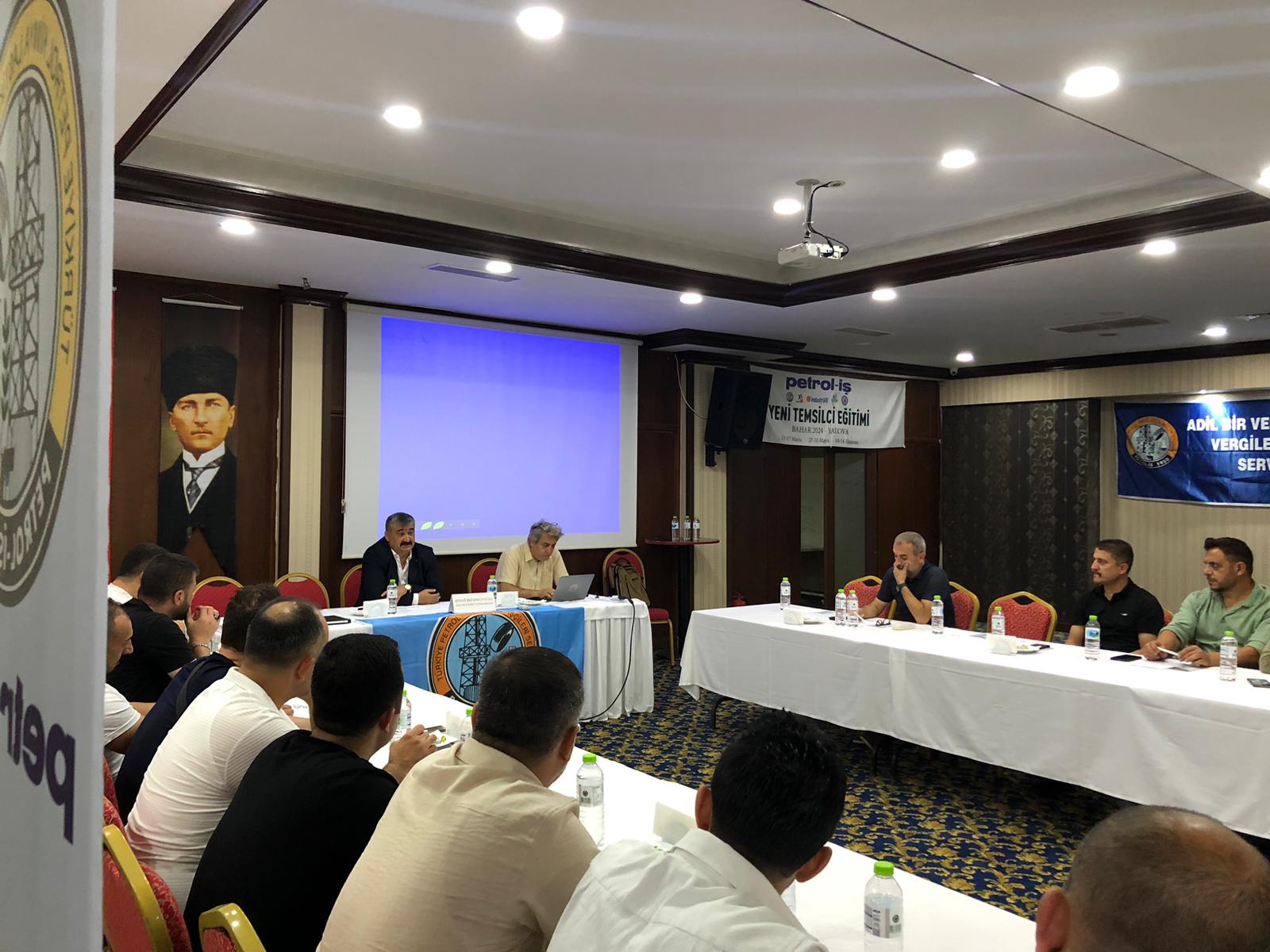 Genel Örgütlenme ve Eğitim Sekreterliği bünyesinde hazırlanıp, Eğitim Servisi tarafından koordine edilen eğitimler haftanın 5 günü devam etti. Her haftanın son günü sendikamız Merkez Yönetim Kurulu temsilcilerle bir araya gelerek hem ülkemizin hem de sendikamızın gündeminde öne çıkan gelişmeleri temsilcilerle paylaştılar, onlardan gelen soruları yanıtladılar. Sendikamız uzmanlık birimleri de kendilerine ayrılan süre zarfında sunumlarını yaptılar, kendi sorumluluk alanlarına dair temsilcilere bilgi aktardılar.