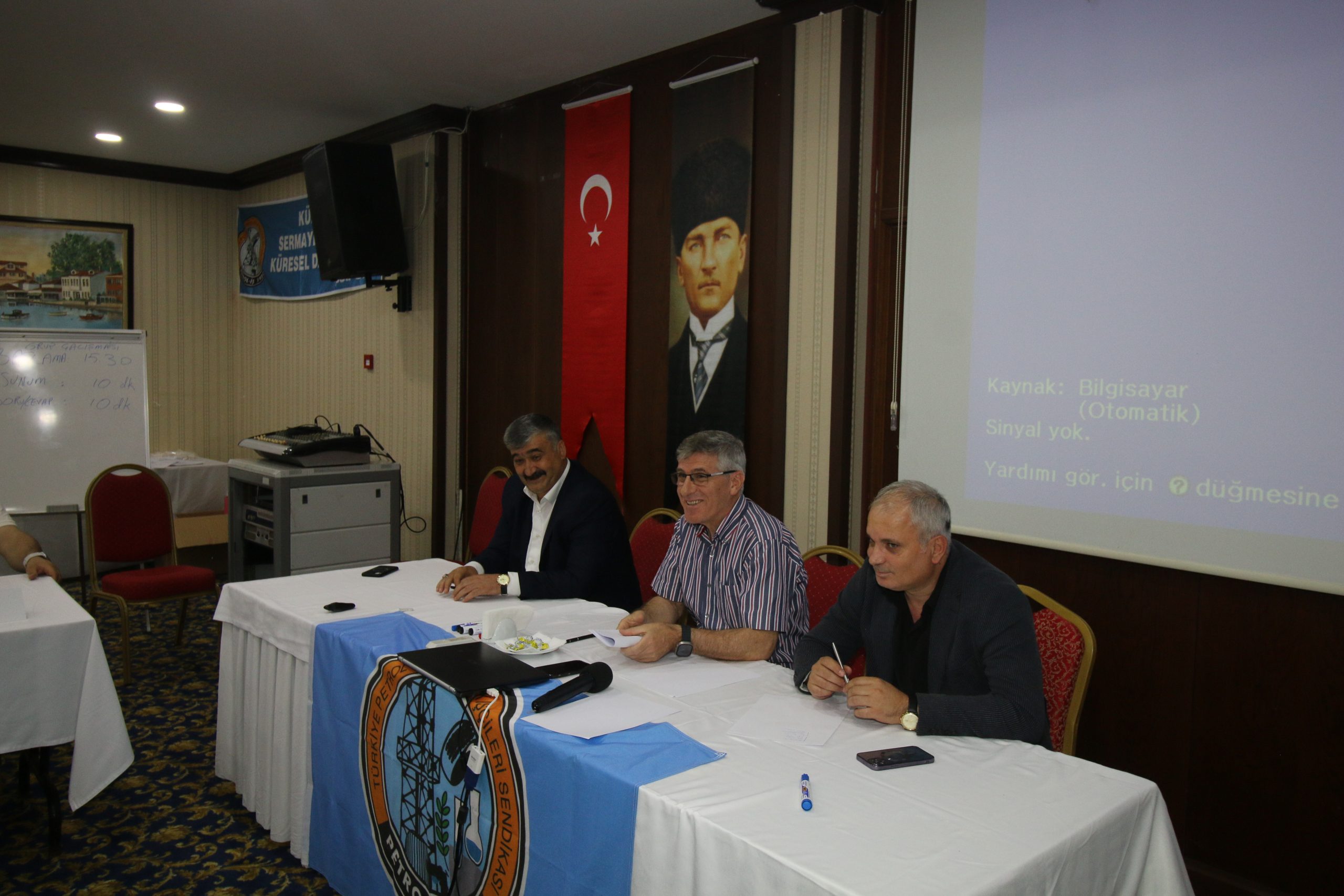 Üçüncü Grup Yeni Temsilci Eğitimi Kurban Bayramı sebebiyle 13 Haziran Perşembe günü sona erdi. Saat 16.00’da sendikamız Genel Başkanı Süleyman Akyüz, Genel Mali Sekreteri Mehmet Kaya ve Genel Örgütlenme ve Eğitim Sekreteri Niyazi Recepkethüda temsilcilerle bir araya geldi. Genel Sekreter Ahmet Baranlı ve Genel Yönetim Sekreteri Ali Haluk Koşar yoğun programları sebebiyle eğitime katılamadılar.