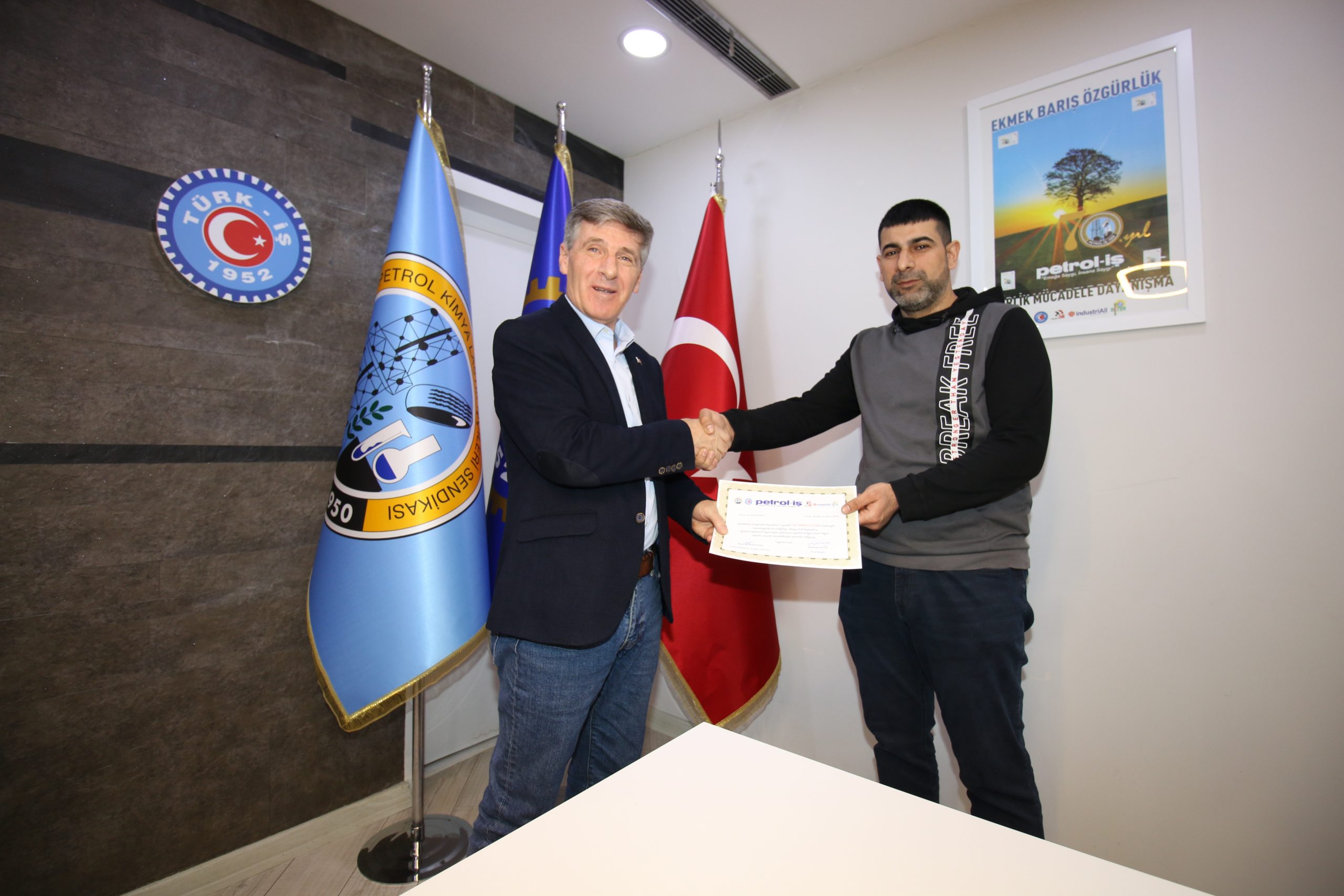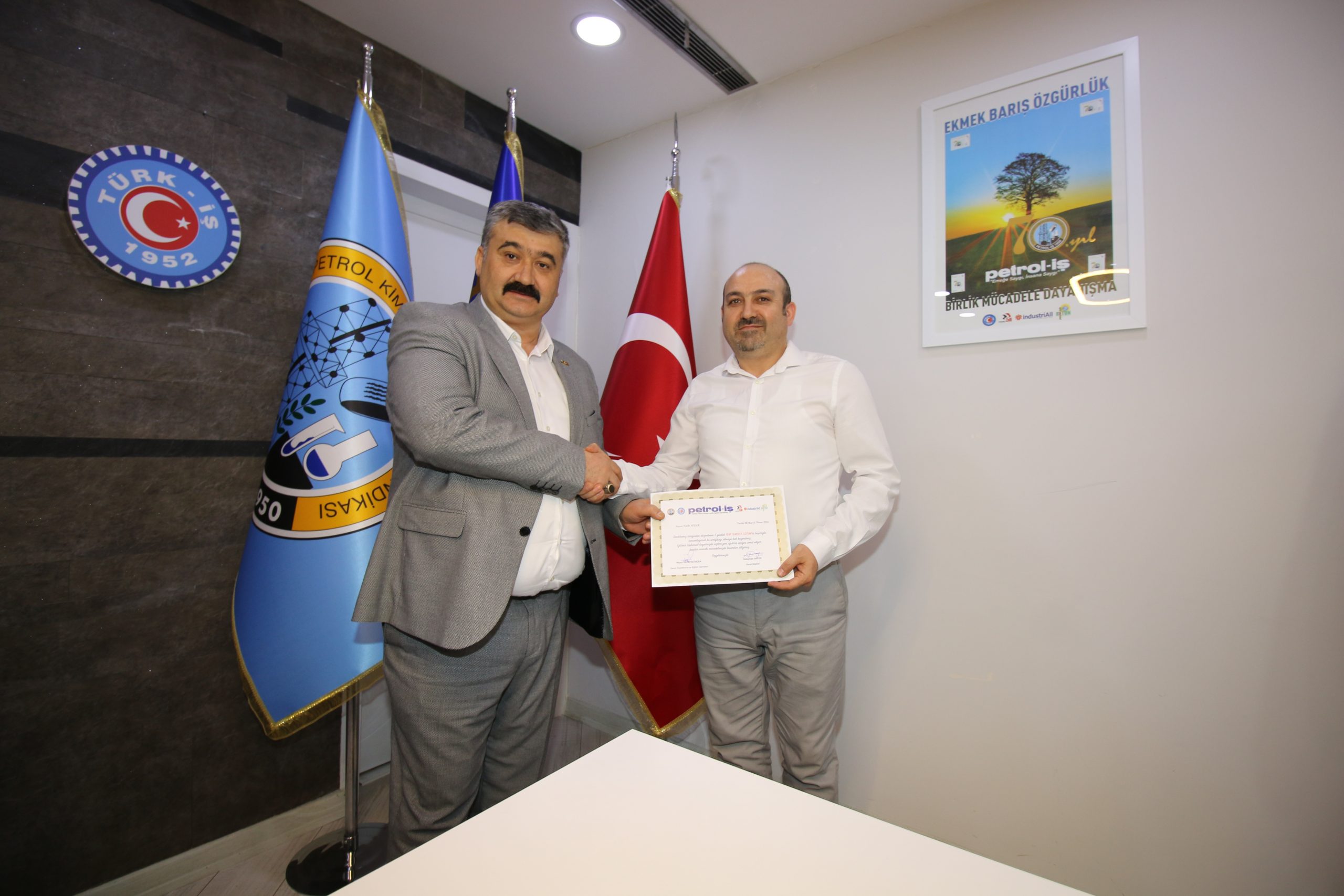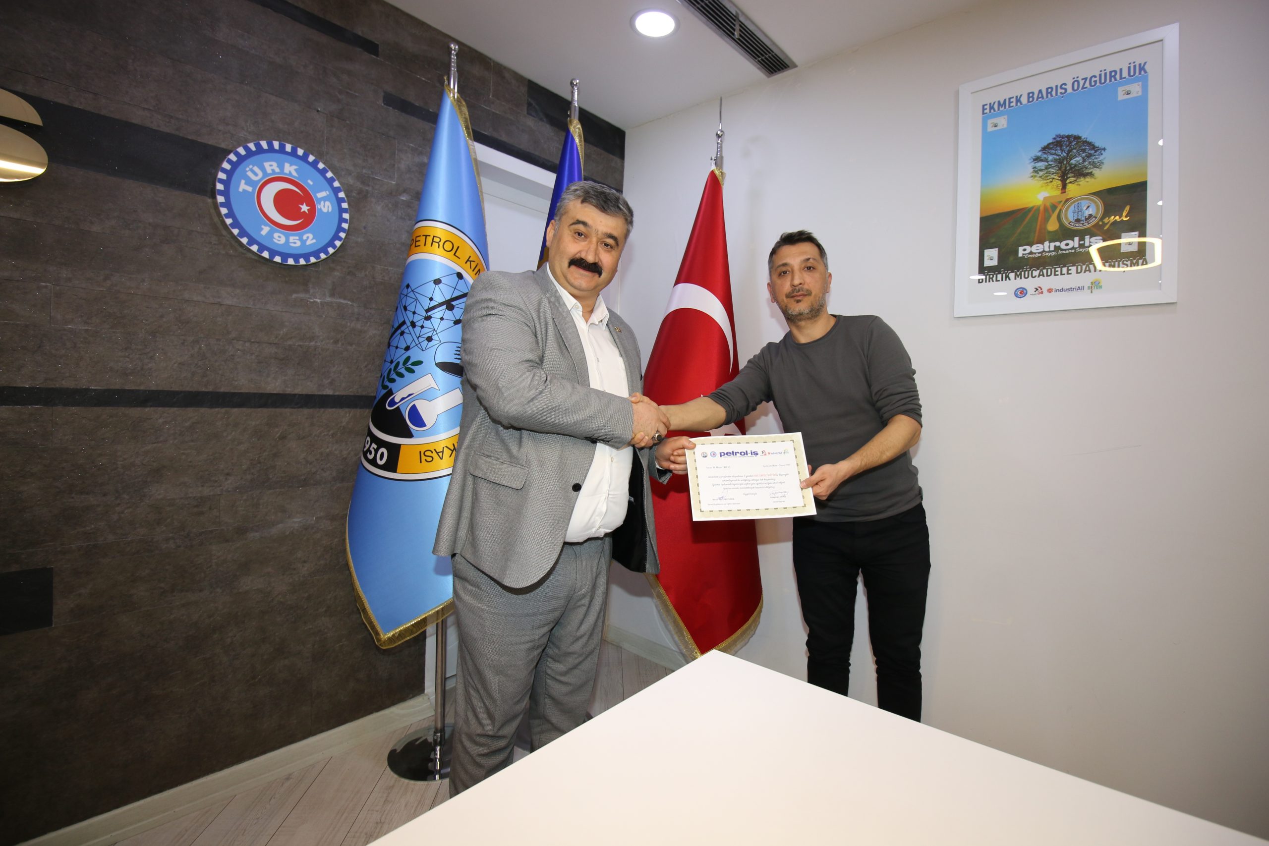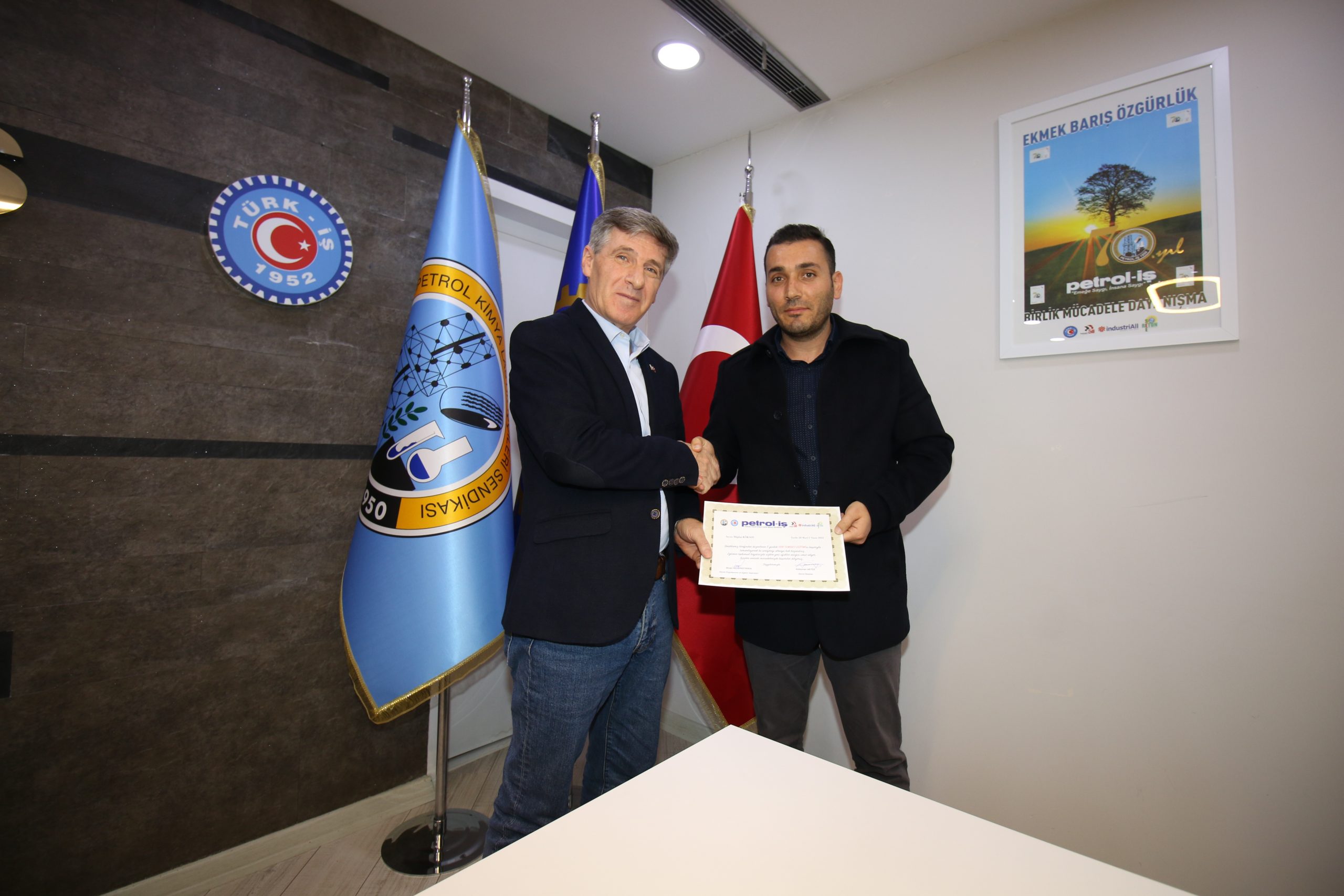 Eğitimin son gününde, Cuma günü sertifika töreni öncesi Genel Başkan Süleyman Akyüz “Petrol-İş Sendikası kurulduğu günden bugüne dek eğitim politikalarına oldukça önem vermiştir. Bizler de devraldığımız eğitim mirasını sürdürebildiğimiz için gurur duyuyoruz, Covid-19 Pandemisi sebebiyle yüz yüze eğitimlerimizde bir süre için aksamalar olsa da artık hızlı bir şekilde tüm eğitimlerimizi gerçekleştiriyoruz ve MYK olarak da bu hızımıza azaltmamaya kararlıyız” diyerek yeni dönemde izlenecek eğitim politikasını belirlemiş oldu.