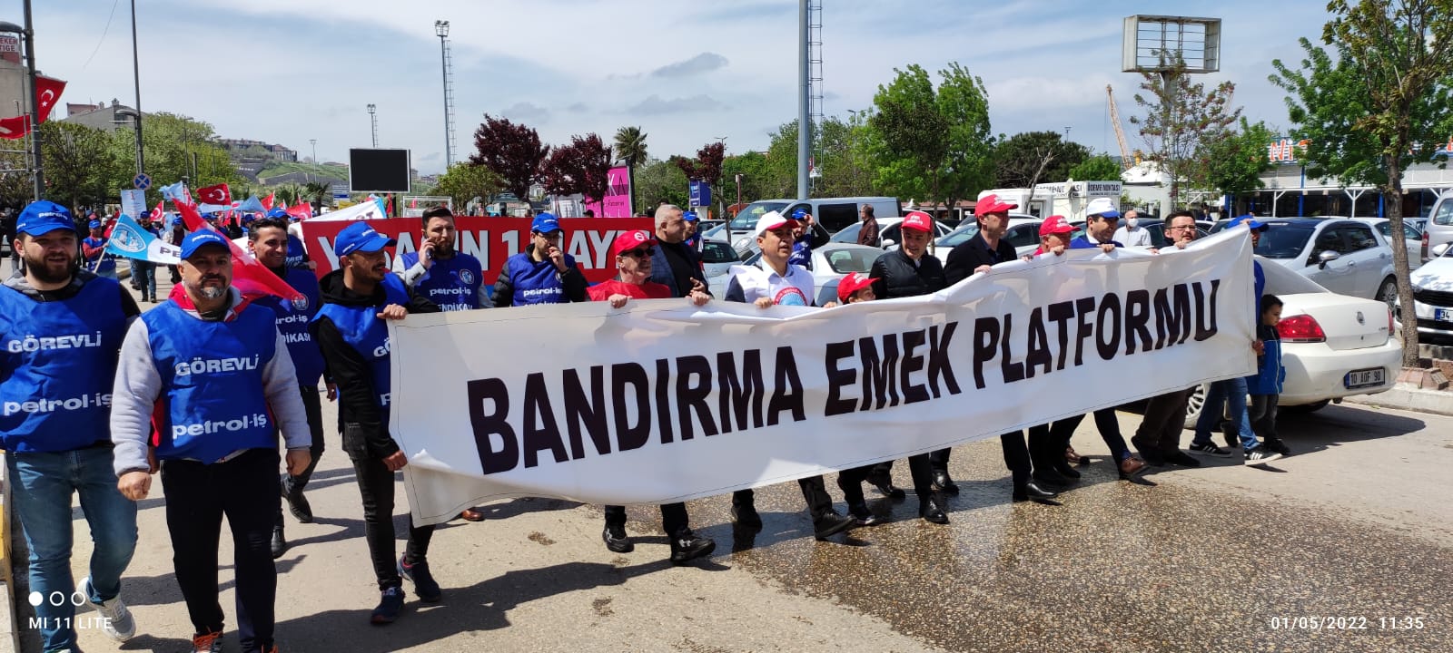 İlk olarak Bandırma İDO iskelesi önünde toplanan sendika, siyasi parti, sivil toplum örgütleri ve vatandaşlar buradan sloganlarla Cumhuriyet Meydanı’na yürüdü. Günün anlam ve önemini belirten konuşmayı Bandırma Emek Platformu Dönem Sözcüsü Serkan Ünlü Yaptı. Açıklamanın ana temasını her geçen gün ağırlaşan ekonomik koşullar, zamlar ve bunlara karşı durabilmek adına örgütlü mücadele etmenin önemi oluşturdu.