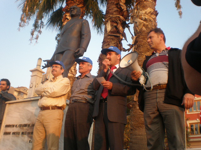 “Fabrikadaki işçi arkadaşlarımız çalışma barışı olmadığından dolayı huzursuz. Bunu ortadan kaldırmanın da koşulları belli. İşçi arkadaşlarımız yıllık izinlerini kullanamıyorlar. 2002 yılında fabrikanın ihracat geliri yıllık 180 milyon dolarken, 2008 sonunda 520 milyon dolara çıktı. 2004 yılından bu yana 337 kişi işten ayrıldı. Sadece 84 kadrolu eleman işe girdi. Geri kalan farkı müteahhit firma elemanlarıyla kapattılar. Üretim 3 katına çıkarken bu, teknolojik yenilikle otomasyon sistemine geçilerek çıkmadı. Tamamen işçi arkadaşlarımız gayretleriyle oldu. Bu tür müteahhitleşme uygulamaları ilk defa Bandırma’da yapılıyor. İşveren hiçbir şekilde iyi niyetle hareket etmiyor. Arkadaşlar Bor madeninin önemi hepimizce malum ancak Fabrika Müdürü bu tür davranışlar ile fabrikanın içini boşaltmaya çalışıyor. Bu tür olumsuzluklar devam ederse yarın Bor madenlerine sahip çıkacak tek bir işçi bulamayız. Ayrıca Bandırmalı esnafımızın da desteği bizim için önemli. Çünkü burada çalışan işçi kardeşlerimiz kazandıkları parayı Bandırma esnafıyla paylaşıyor.”