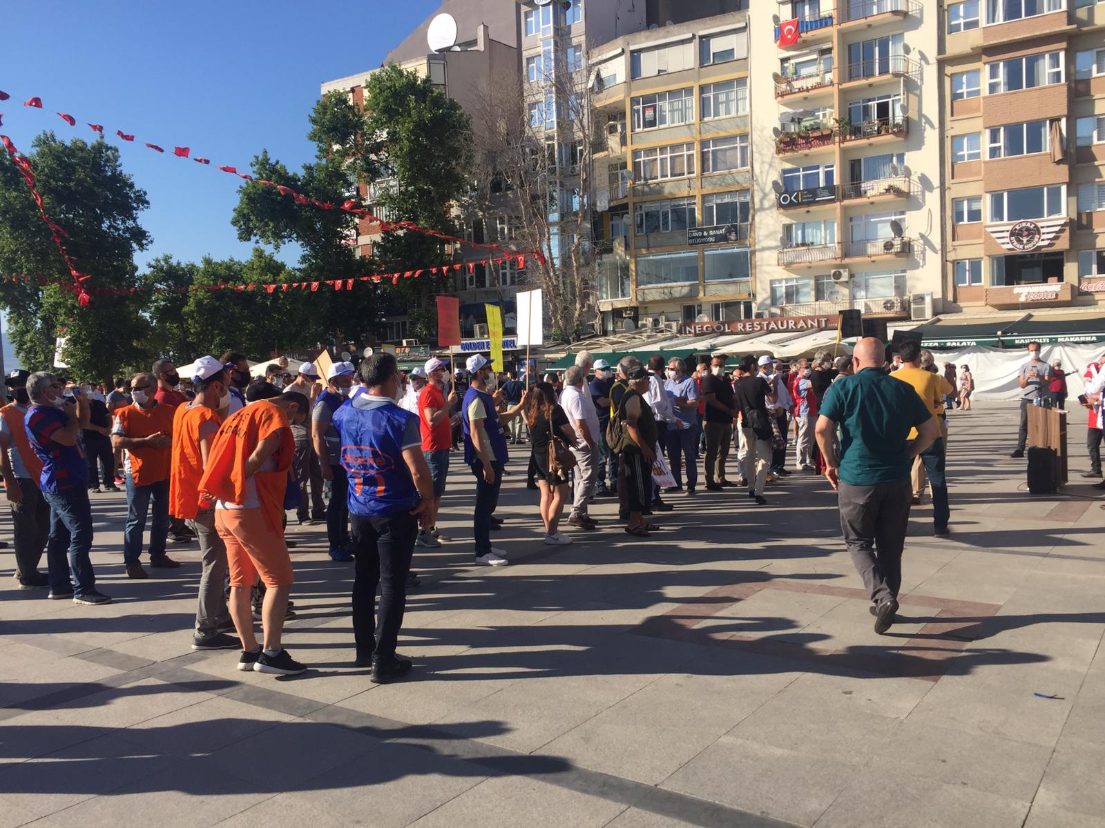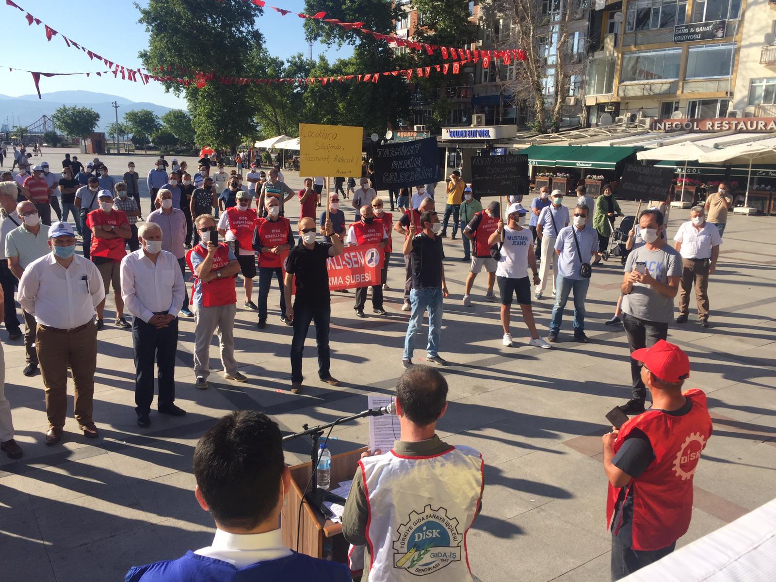 Konfederasyonumuz Türk-İş’in almış olduğu karar neticesinde 29 Haziran Pazartesi günü tüm Türkiye’de emekçiler sokağa çıkarak “Kıdem Tazminatıma Dokunma” dedi. Sendikamız Bandırma Şubesi de, Bandırma’daki Emek Platformu Bileşenleri ile birlikte Pazartesi saat 18.00’de biraraya gelerek, kıdem tazminatında herhangi bir geriye gidişe dur demek için basın açıklaması yaptı. Cumhuriyet Meydanı’nda, sosyal mesafe kuralını gözeterek yapılan basın açıklamasını Bandırma Şube Başkanımız İlyas Satırlı okudu.