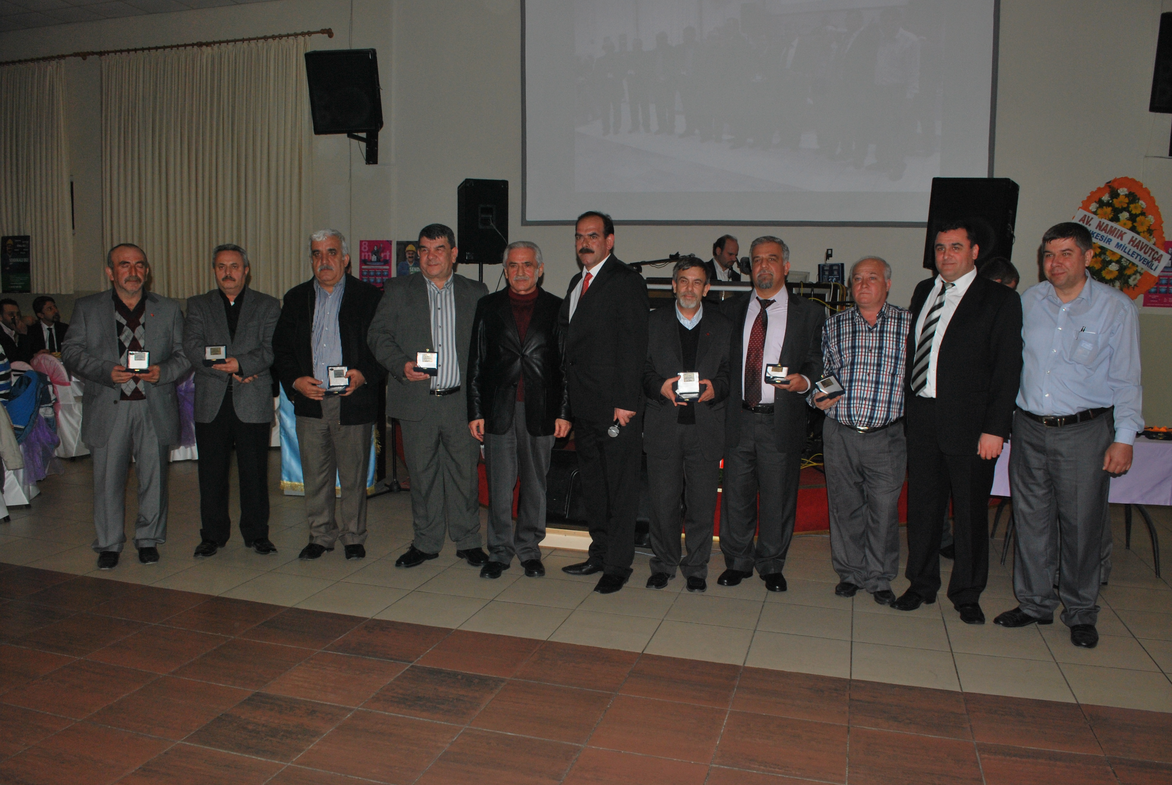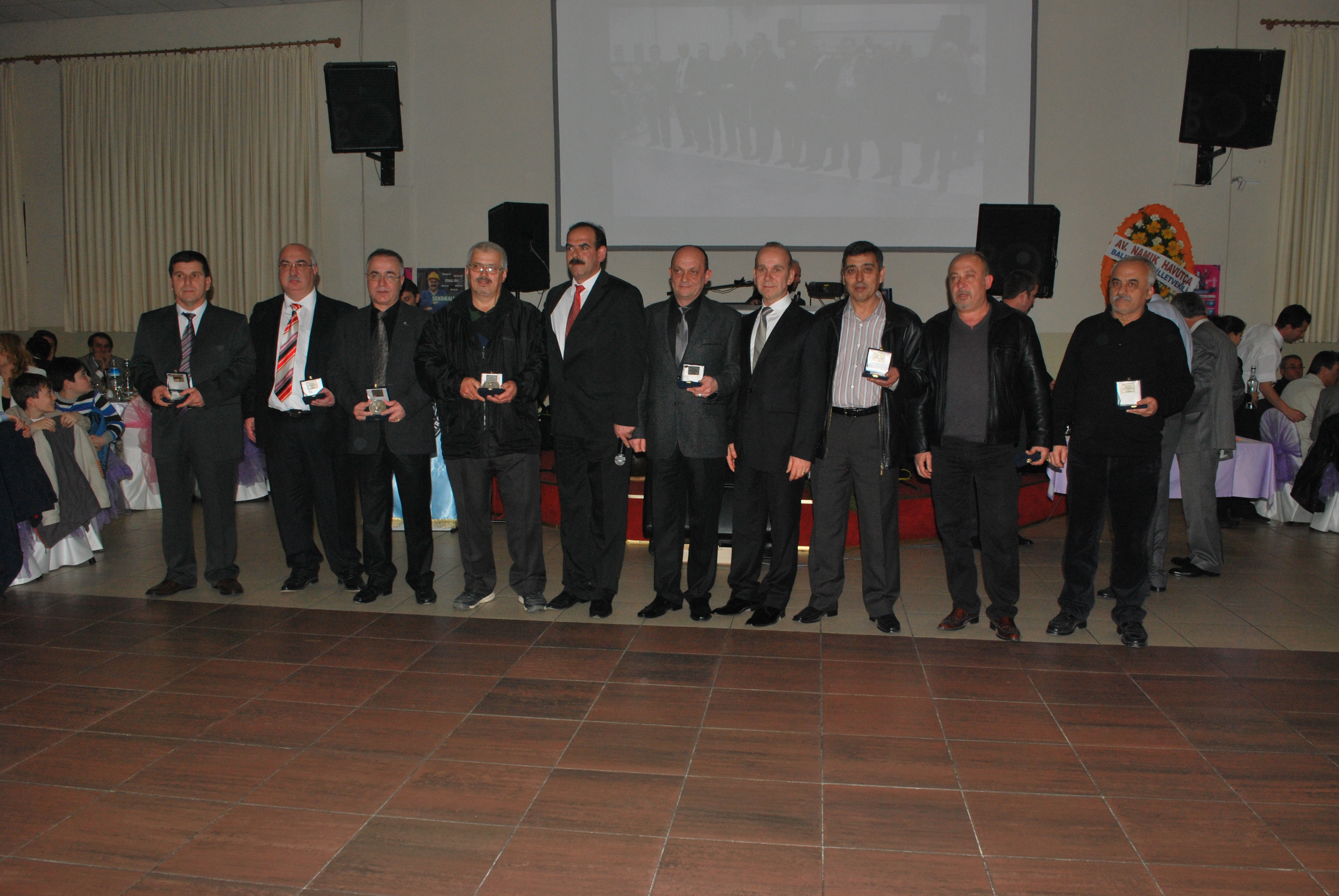 Cihat Bozkurt ve Yalçın Şenyiğit’in eşleri plaket töreninde gözyaşlarına hakim olmadı. Gecede ayrıca emekli olan 46 sendika üyesine de plaket verildi. İşçiler plaketlerini protokol üyelerinin elinden aldı.