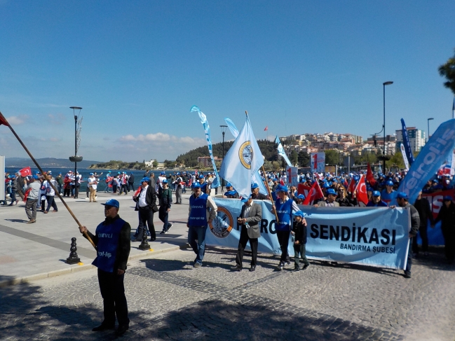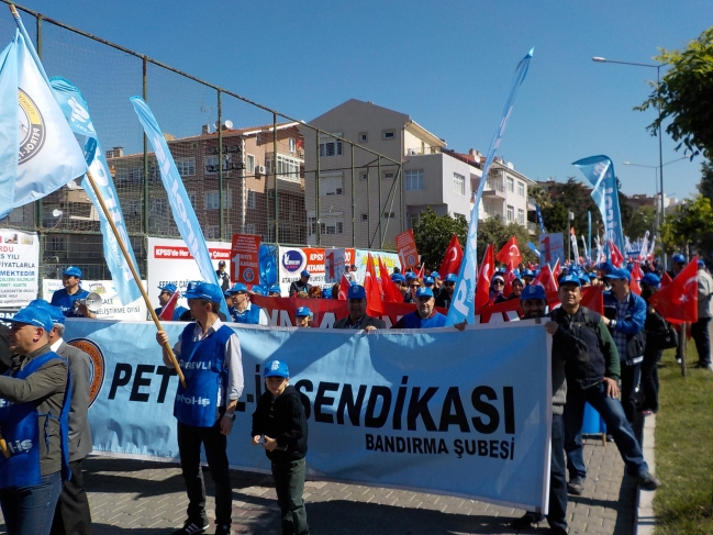 Sendikamız Merkez Denetim Kurulu Başkanı Yusuf Ziya Kahyaoğlu'nun da yer aldığı etkinlikte Bursa, Düzce, Bandırma, Kocaeli, İstanbul 1 Nolu, İstanbul 2 Nolu Şube Başkanlarımız, Şube Başkan Yardımcılarımız ve şube üyelerimiz de yerlerini aldılar. Coşkulu ve kitlesel bir kortej oluşturan Petrol-İş üyeleri, bu İşçi Bayramı'nı davul ve zurna ile değil, şehitlerimizi anarak kutladı.