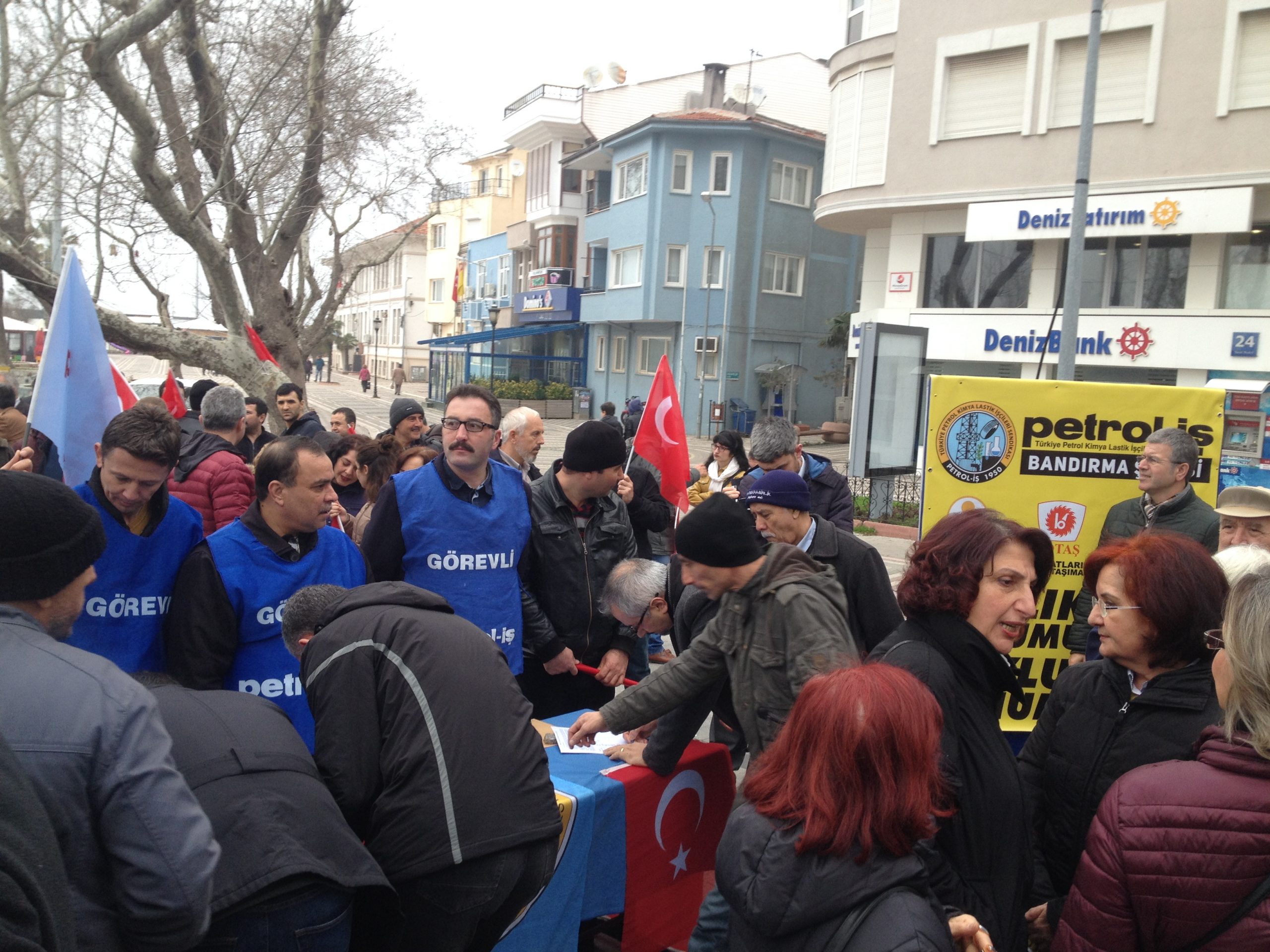 Bandırma Şube Başkanımız İsmail Kayan bugün düzenledikleri imza kampanyası ve basın açıklaması ile Etibank’ın hükümet tarafından “Varlık Fonuna” devredilmesine tepki göstererek basın açıklamasında bulundu. Bandırma Belediye Başkanı Dursun Mirza başta olmak üzere, sivil toplum örgütleri, sendikalar, işçiler ve vatandaşların katıldığı imza kampanyası ve basın açıklamasında hükümetin Etibank’ı Varlık Fonu’na devretmesine tepki göstererek, bu kararı geri çekmelerini istedi.