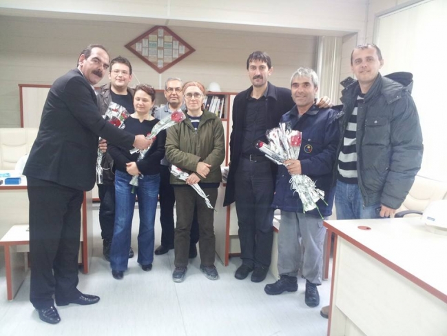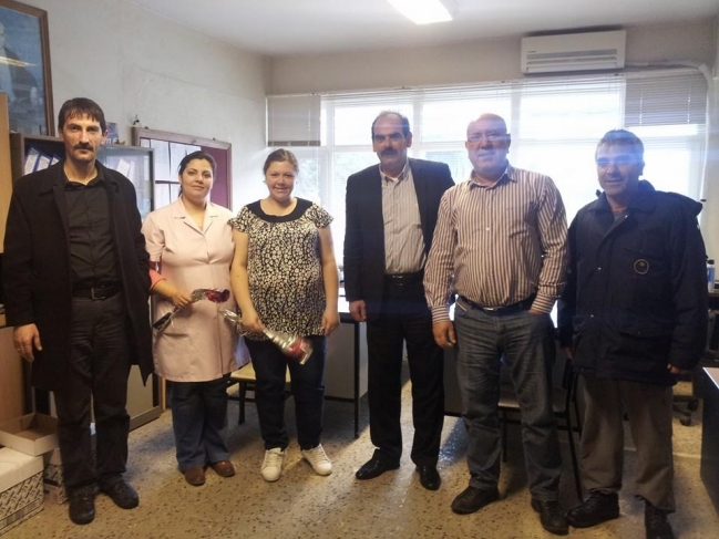 Bandırma Eti Maden işyerlerinde çalışan bayan üyelerimizin 8 mart Dünya Emekçi Kadınlar günü sebebiyle işyerlerini ziyaret eden Bandırma Şube Başkanımız İsmail Kayan ve Yönetim Kurulumuz bayan üyelere kranfil takdim ettiler ve sohbet ettiler.