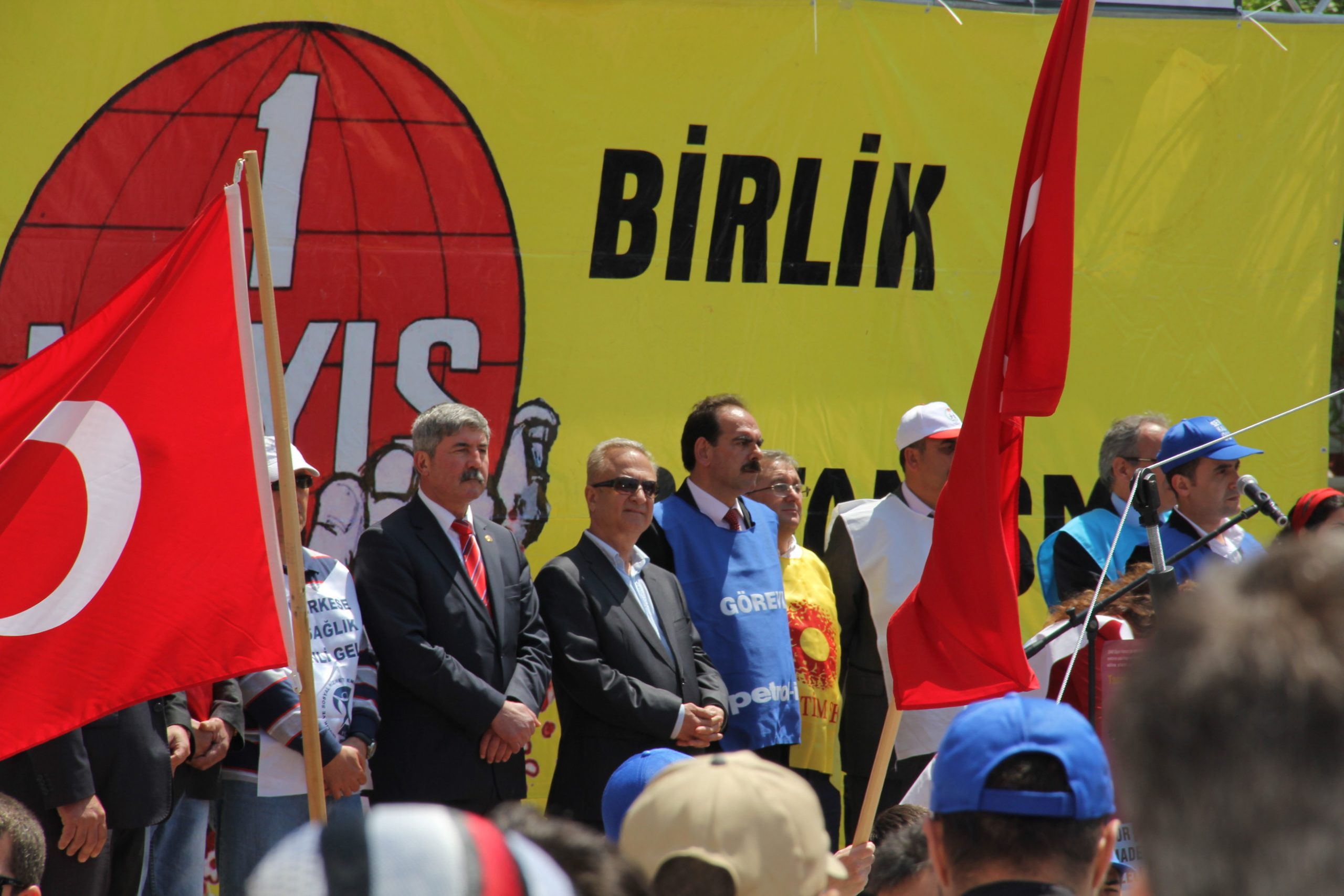 Cumhuriyet Meydanındaki kutlamalara sendikamızın Bandırma Şube’sinde örgütlü Etimaden işçilerinin yanında Bandırma Eğitim-Sen, Eğitim-İş, SES, Genel-İş, Emekli-Sen,Genç-Sen, Enerji Sanayi ve Maden Kamu Emekçileri Sendikası, Tüm Bel-Sen, Koop-İş, Çağdaş Yaşamı Destekleme Derneği, Atatürkçü Düşünce Derneği, CHP, İşçi Partisi, ÖDP, Halkların Demokratik Kongresi katılım gösterdi. Çevre ilçelerden sendika ve temsilcilik bazında katılımlar gerçekleşti. Ayrıca her yıl olduğu gibi işçi bayramına katılım gösteren CHP’nin Balıkesir Milletvekili Namık Havutça, Belediye Başkanı Sedat Pekel, Belediye Başkan Yardımcıları Dursun Mirza, Ozan Onur, İl Genel Meclis Üyeleri, İlçe Başkanı Metin Ok, Sodev Genel Sekreteri Mehmet Tüm dikkat çeken isimler oldular.