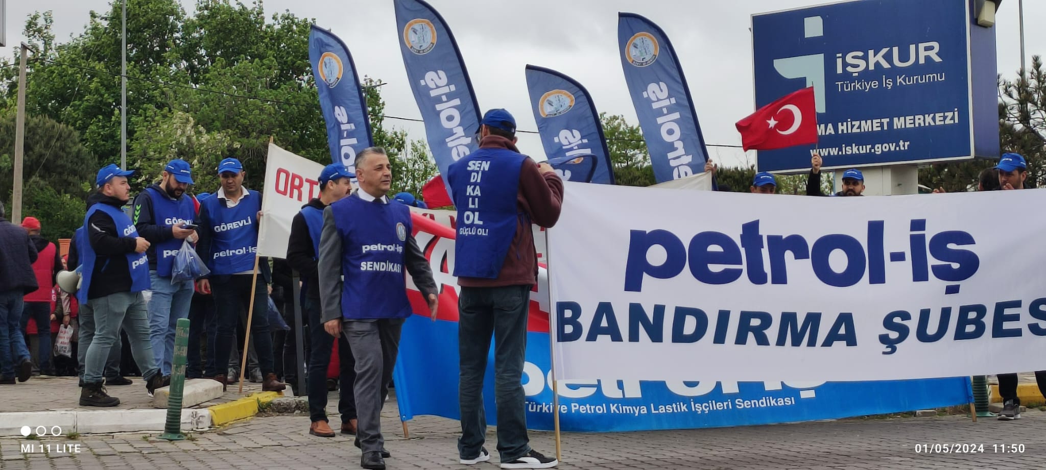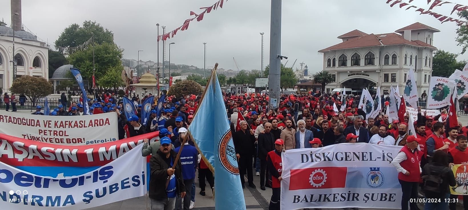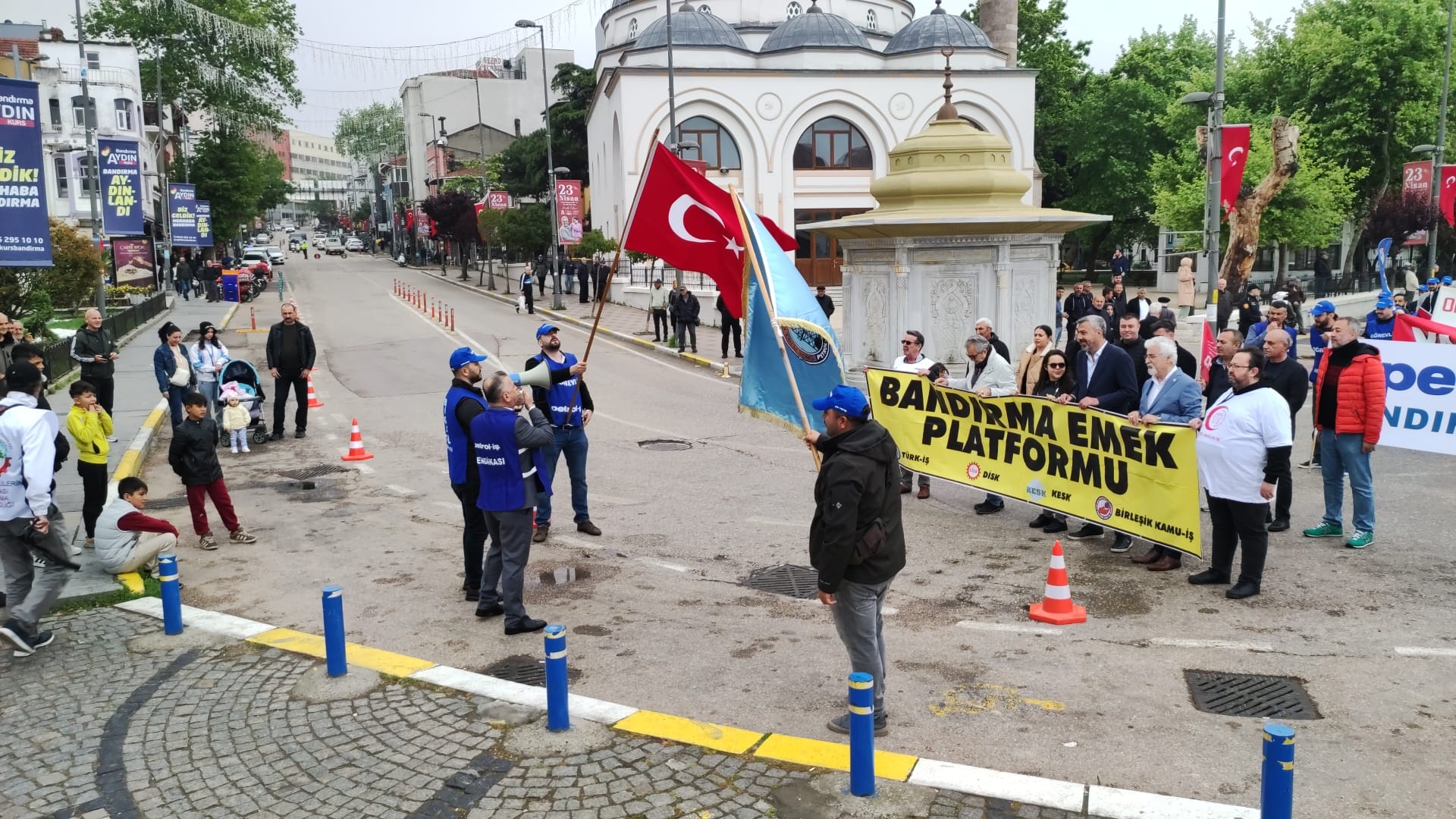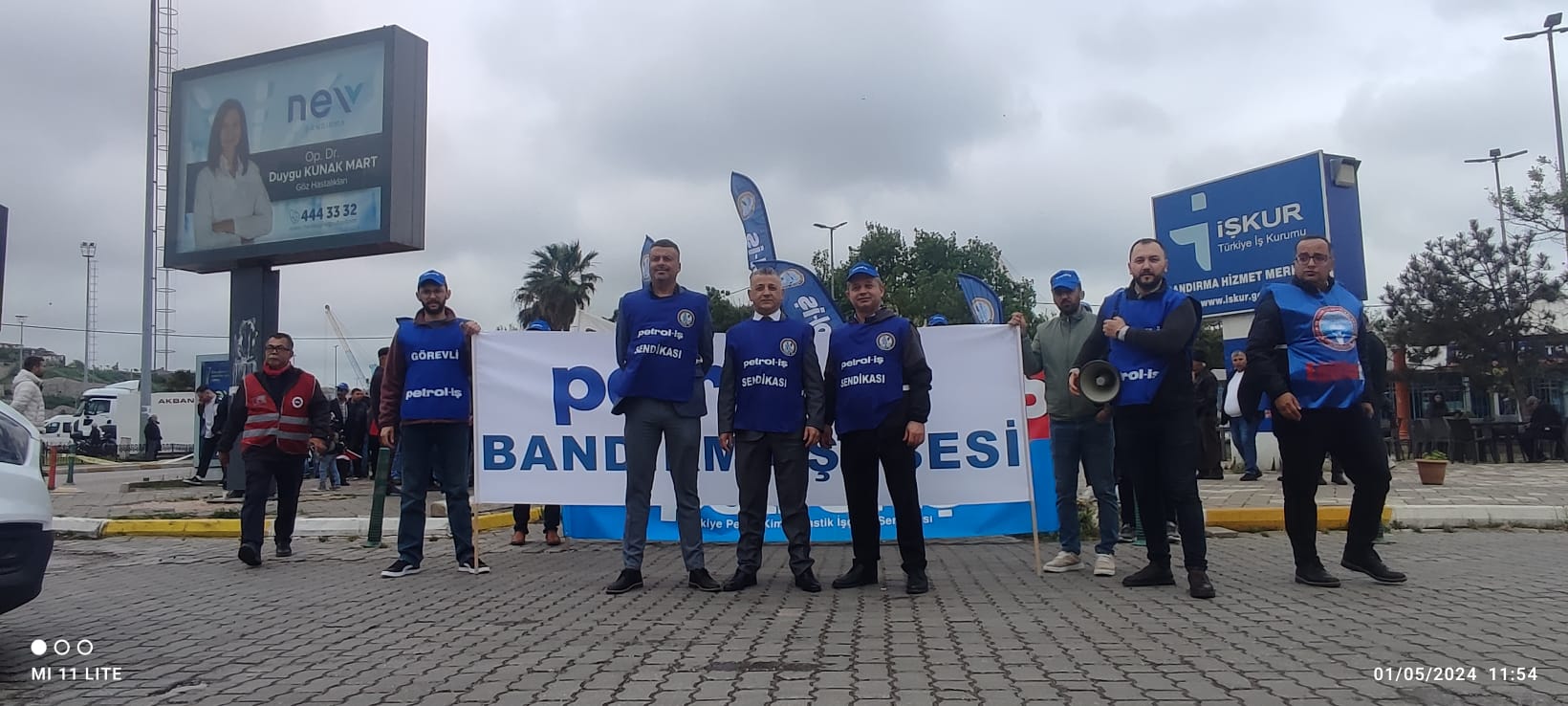 İDO önünde toplanan kitle sloganlarla Cumhuriyet Meydanına kadar yürüdü. Meydandaki yer almaların ardından Saygı Duruşunda bulunuldu ve arkasında İstiklal Marşı okundu. Günün anlam ve önemini belirten konuşmayı, Bandırma Emek Platformu Dönem Sözcüsü ve sendikamız Bandırma Şube Başkanı Tuncay Topuz yaptı. Tuncay Topuz konuşmasında, “Eşitlikten ve adaletten yana olanlar, insanca bir yaşam ve güzel bir gelecek isteyenler, 1 Mayıs Birlik, Mücadele ve Dayanışma gününüz kutlu olsun. Bugün burada sömürünün, açlığın, yoksulluğun ve baskının olmadığı insanca bir dünya özlemiyle bir araya geldik. İşyerlerinde insan onuruna yakışır çalışma şartlarını savunmak için buralardayız. Tüm emekçiler için sömürü ve zulme karşı sesimizi çıkarmak için toplandık,” dedi. Bandırmadaki kutlamalar başladığı gibi coşkulu bir şekilde sona erdi.
