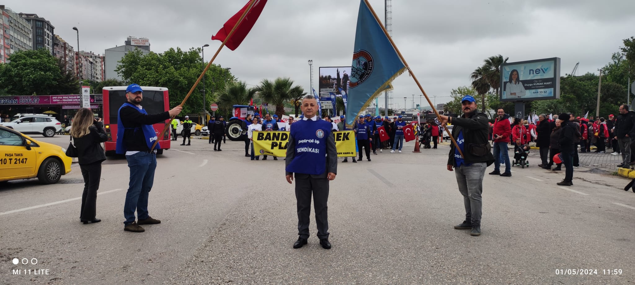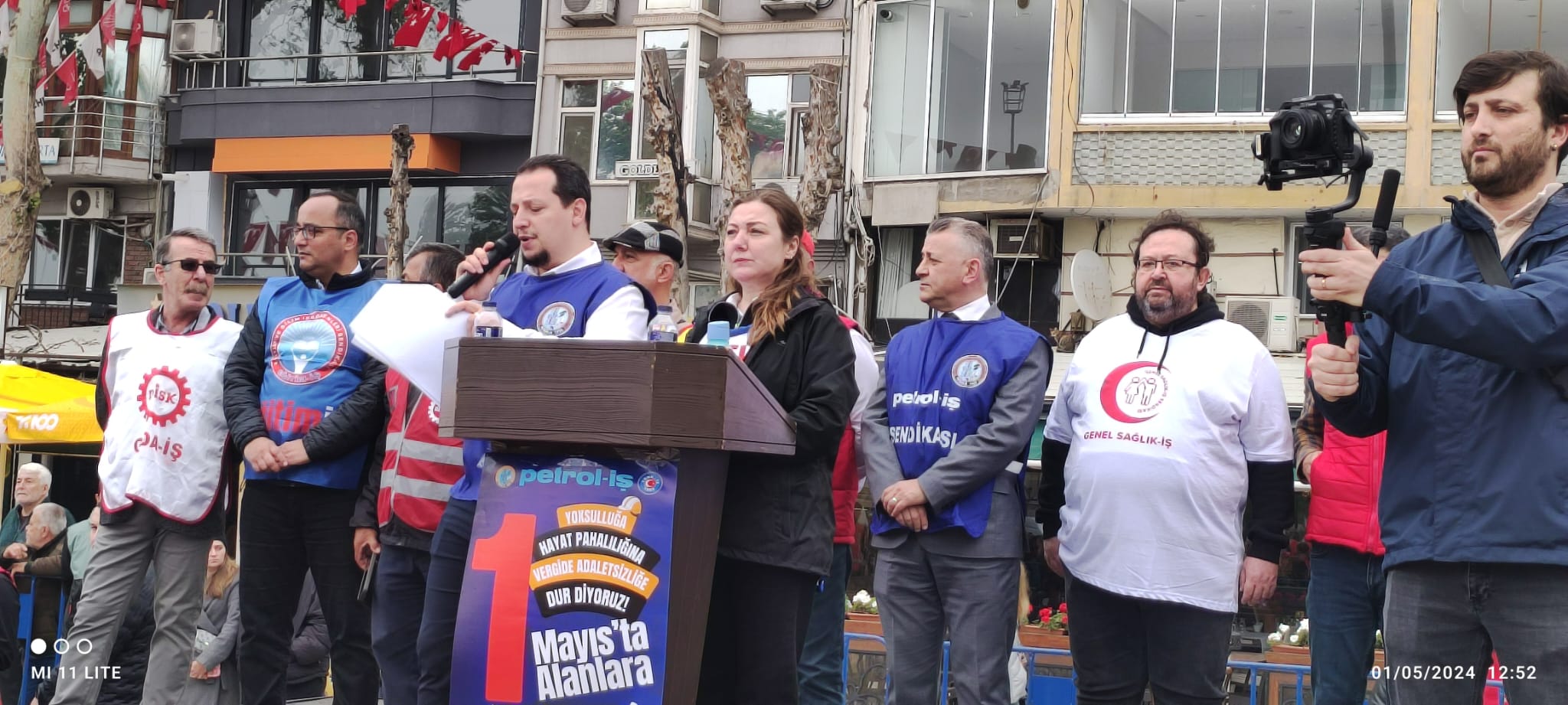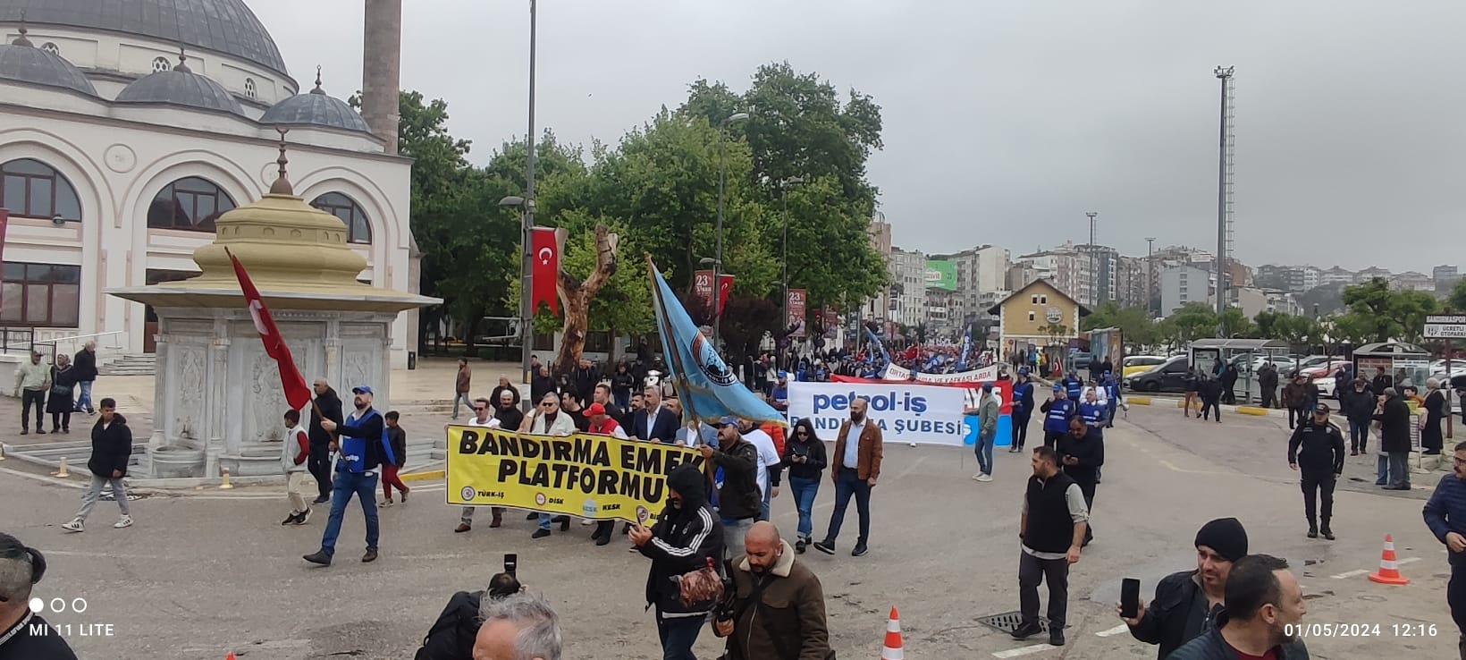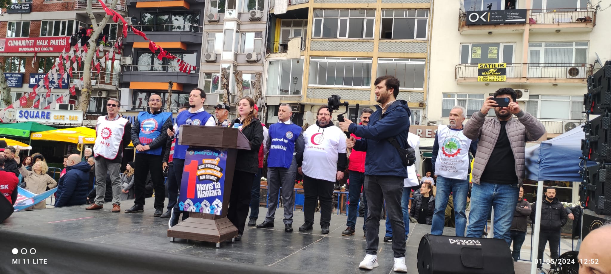 İDO önünde toplanan kitle sloganlarla Cumhuriyet Meydanına kadar yürüdü. Meydandaki yer almaların ardından Saygı Duruşunda bulunuldu ve arkasında İstiklal Marşı okundu. Günün anlam ve önemini belirten konuşmayı, Bandırma Emek Platformu Dönem Sözcüsü ve sendikamız Bandırma Şube Başkanı Tuncay Topuz yaptı. Tuncay Topuz konuşmasında, “Eşitlikten ve adaletten yana olanlar, insanca bir yaşam ve güzel bir gelecek isteyenler, 1 Mayıs Birlik, Mücadele ve Dayanışma gününüz kutlu olsun. Bugün burada sömürünün, açlığın, yoksulluğun ve baskının olmadığı insanca bir dünya özlemiyle bir araya geldik. İşyerlerinde insan onuruna yakışır çalışma şartlarını savunmak için buralardayız. Tüm emekçiler için sömürü ve zulme karşı sesimizi çıkarmak için toplandık,” dedi. Bandırmadaki kutlamalar başladığı gibi coşkulu bir şekilde sona erdi.
