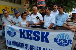 Ofis Postanesi önünde düzenlenen basın açıklamasına ESP Bağlar İlçe Başkanı Julide Ateş, DTK Başkanlık Divanı Başkanı Edip Yaşar katıldı. Eylemde konuşan KESK Dönem Sözcüsü ve Tarım Orkam-Sen Diyarbakır Şube Başkanı Ahmet Ayaz, “Baskı ve tutuklamalarla ne Kürtler ne de emekçiler haklı konumlarından vazgeçmeyeceklerdir” dedi.