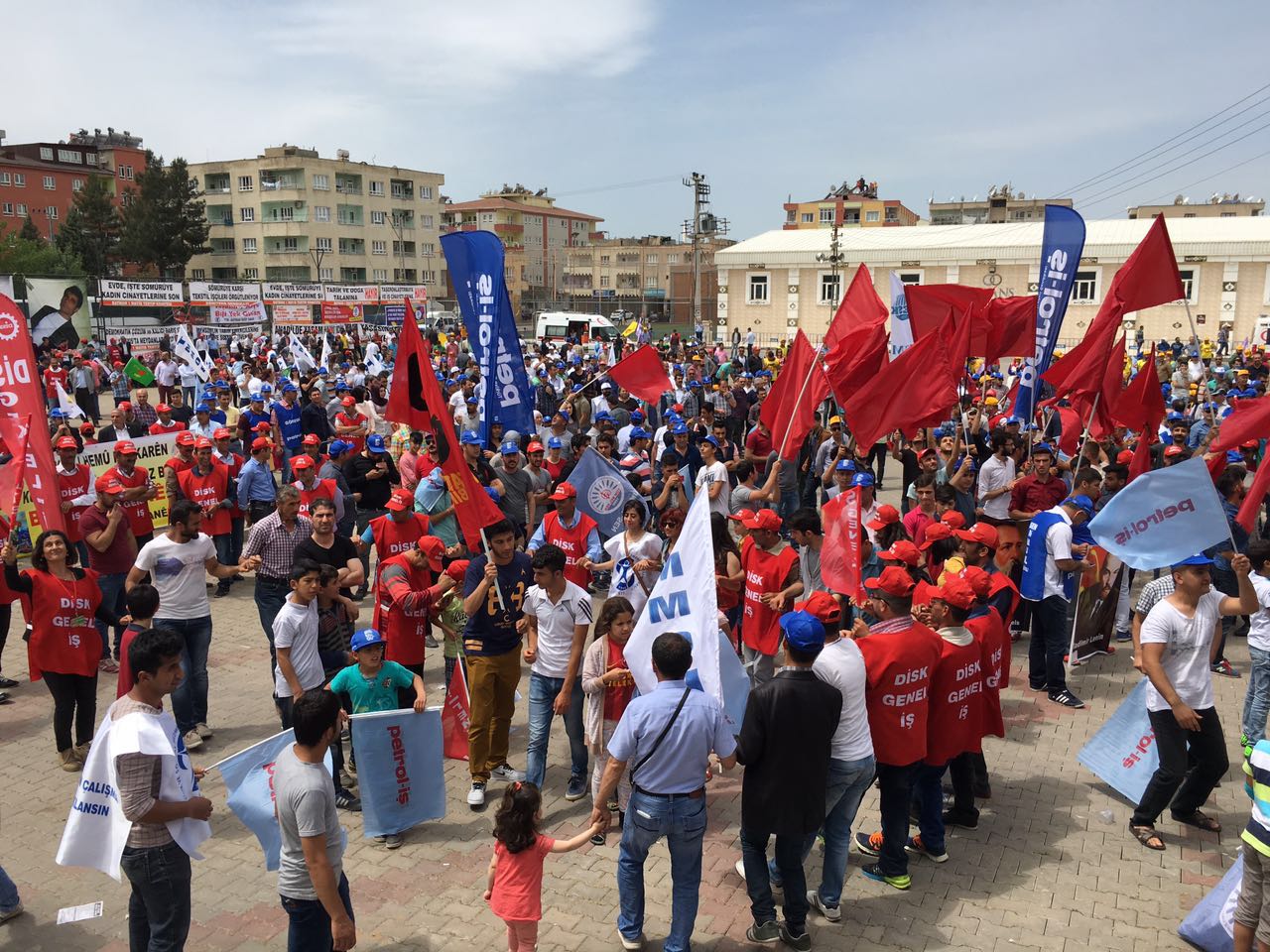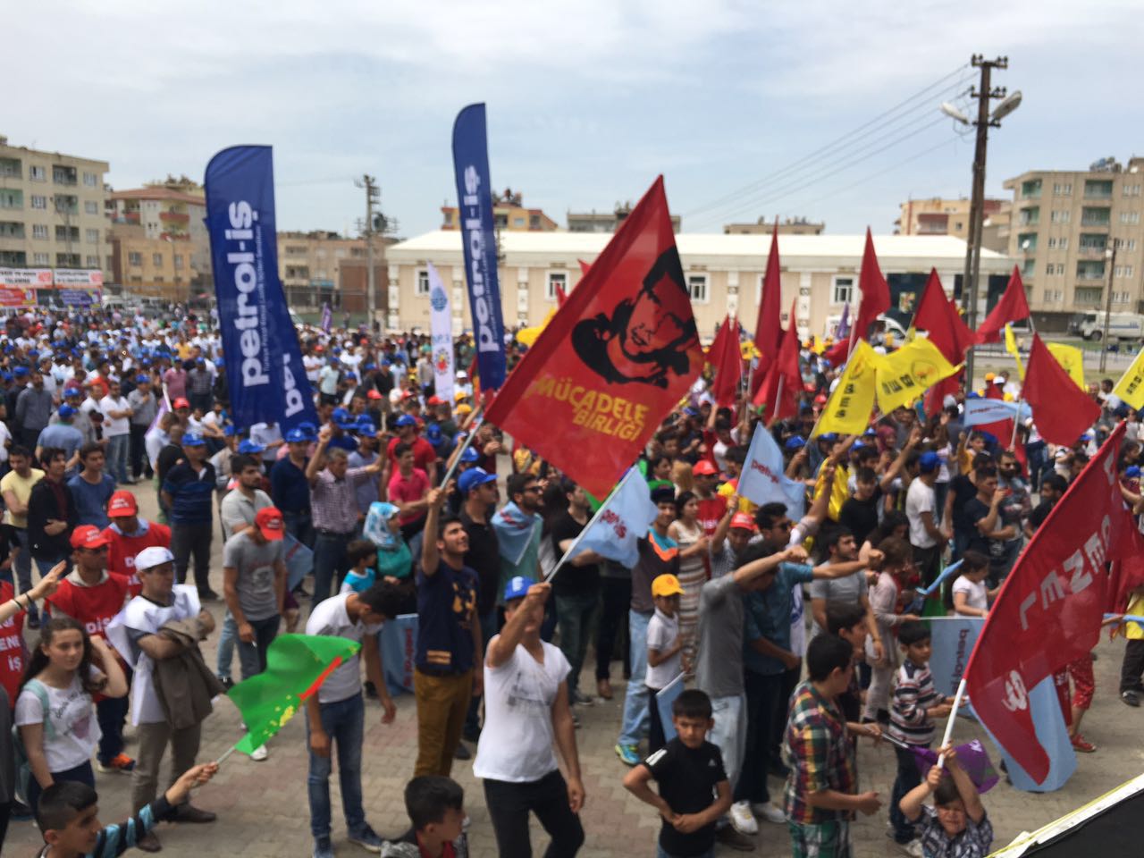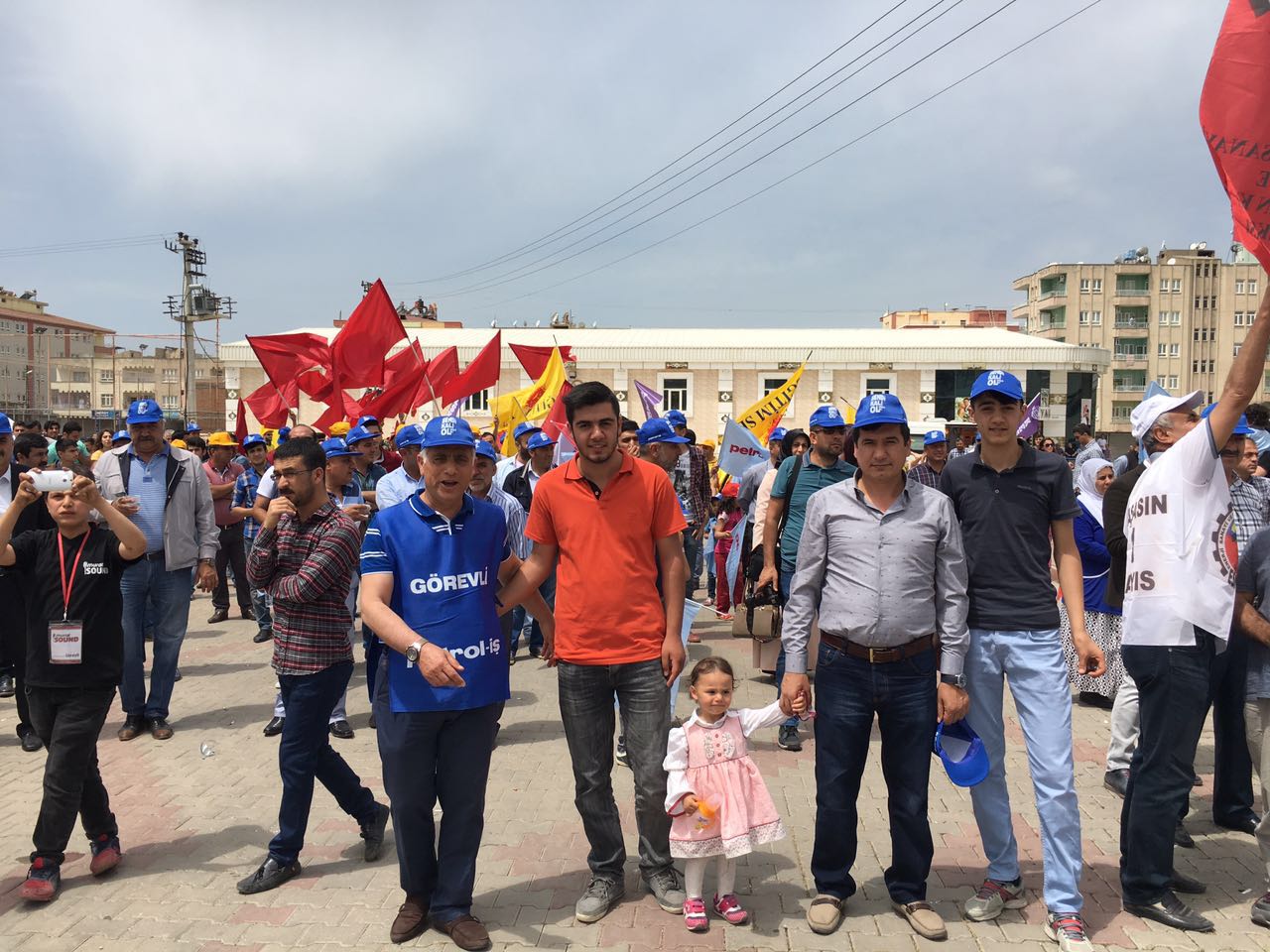 Batman Şubemiz 1 Mayıs’ı Batman’da kutladı. Petrol-İş Sendikası, DİSK, KESK , TMMOB, TTB düzenlediği mitinge çok sayıda kişi katıldı. Miting güvenlik gerekçesiyle Batman 16 Mayıs Şehir Stadı’nın yanında kutlandı. Kortejle yürüyüşlere izin verilmedi. Alanda toplanan kitleye ilk konuşmayı Demokrasi Platformu adına Genel-İş Şube Eş Başkanı Narin Erol yaptı. Ardından Petrol-İş Sendikası adına Genel Merkez Örgütlenme Sekreterimiz Mustafa Mesut Tekik söz aldı. İşçi ve bölgede yaşanan hak ihlalleri üzerine değerlendirmede bulundu. Kalıcı barış için Çanakkale ve Kobanê ruhunu örnek gösterdi. Ardından Grup Rosida, Emeğe ezgi ve Grava Rojê çok dilli ezgileriyle, işçi marşlarıyla kitleyi coşturdu. Kapanış konuşmasını HDP Batman Milletvekilleri Saadet Becerikli ve Ayşe Acar Başaran yaptı. Onlarda Bölgedeki hak ihlallerine ve emek iktidar ilişkilisine yönelik konuşmalarda bulundular. Barış temennileriyle miting son buldu.