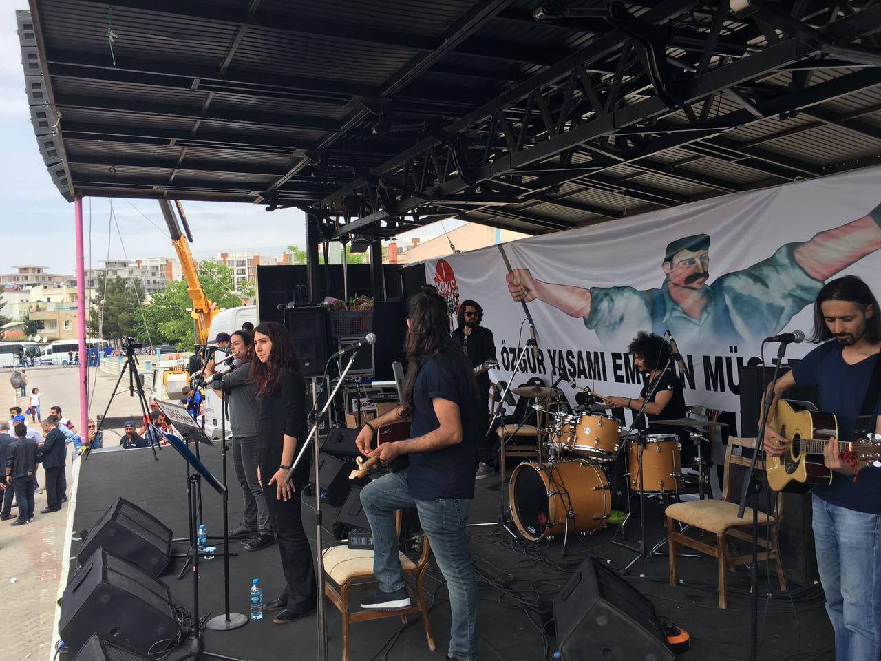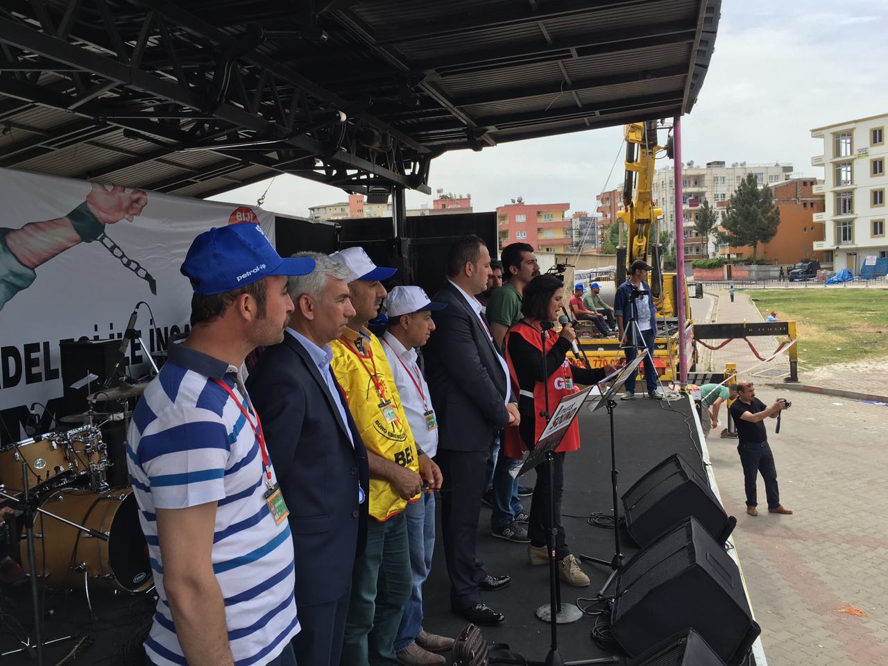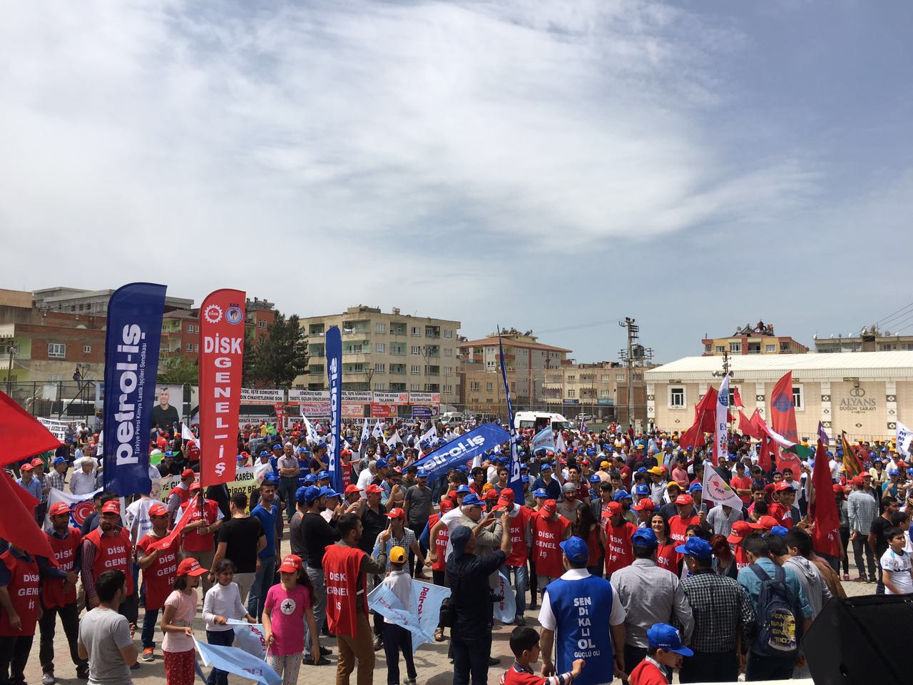 Batman Şubemiz 1 Mayıs’ı Batman’da kutladı. Petrol-İş Sendikası, DİSK, KESK , TMMOB, TTB düzenlediği mitinge çok sayıda kişi katıldı. Miting güvenlik gerekçesiyle Batman 16 Mayıs Şehir Stadı’nın yanında kutlandı. Kortejle yürüyüşlere izin verilmedi. Alanda toplanan kitleye ilk konuşmayı Demokrasi Platformu adına Genel-İş Şube Eş Başkanı Narin Erol yaptı. Ardından Petrol-İş Sendikası adına Genel Merkez Örgütlenme Sekreterimiz Mustafa Mesut Tekik söz aldı. İşçi ve bölgede yaşanan hak ihlalleri üzerine değerlendirmede bulundu. Kalıcı barış için Çanakkale ve Kobanê ruhunu örnek gösterdi. Ardından Grup Rosida, Emeğe ezgi ve Grava Rojê çok dilli ezgileriyle, işçi marşlarıyla kitleyi coşturdu. Kapanış konuşmasını HDP Batman Milletvekilleri Saadet Becerikli ve Ayşe Acar Başaran yaptı. Onlarda Bölgedeki hak ihlallerine ve emek iktidar ilişkilisine yönelik konuşmalarda bulundular. Barış temennileriyle miting son buldu.