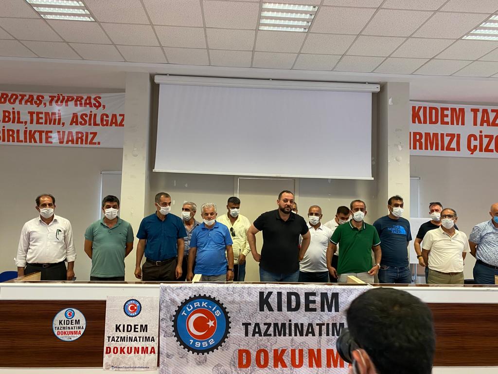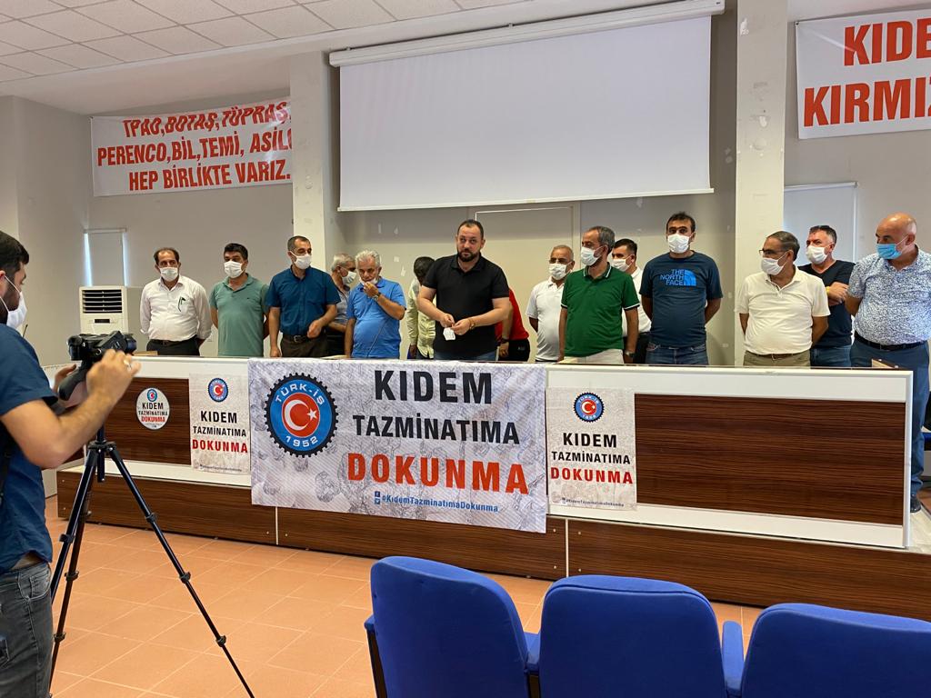 Basın açıklamasında kıdem tazminatı hakkını geriye götürecek herhangi bir düzenlemenin asla kabul edilemeyeceğinin altı çizildi.