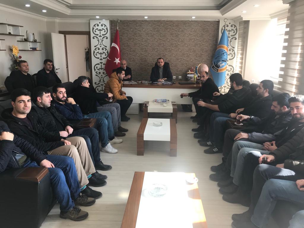 24 Ocak Perşembe günü Batman Şubemize bağlıu TPAO Kuyu Tamamlama ve sondaj bölümünde çalışıp boşta kalan üyelerimizle istişare toplantısı düzenledi ve son gelişmeler hakkında bilgi verildi. Toplantıya Batman Şube Başkanımız Şehmus Kaygusuz ve Başkan Yardımcısı idari Mehmet Sinooğlu ve temsilcilerimiz Tayfur Toprak ve Tahsin Çetin eşlik etti.