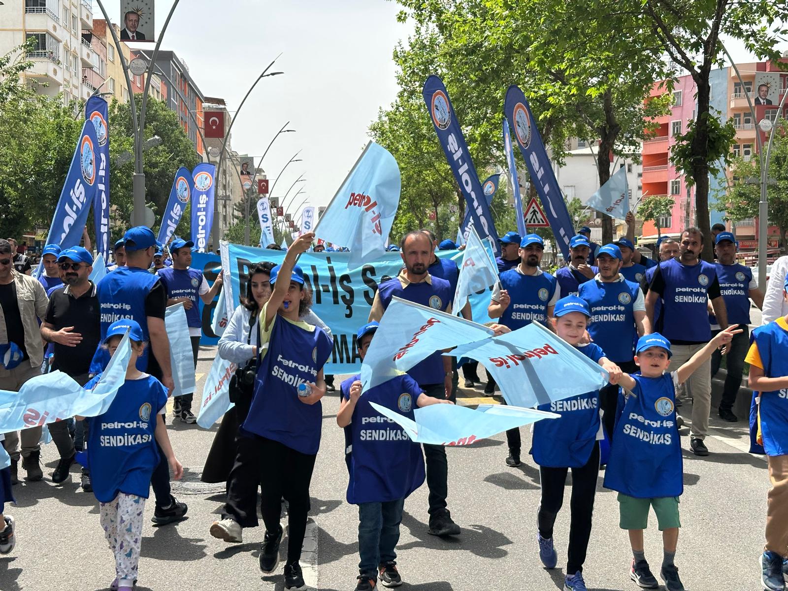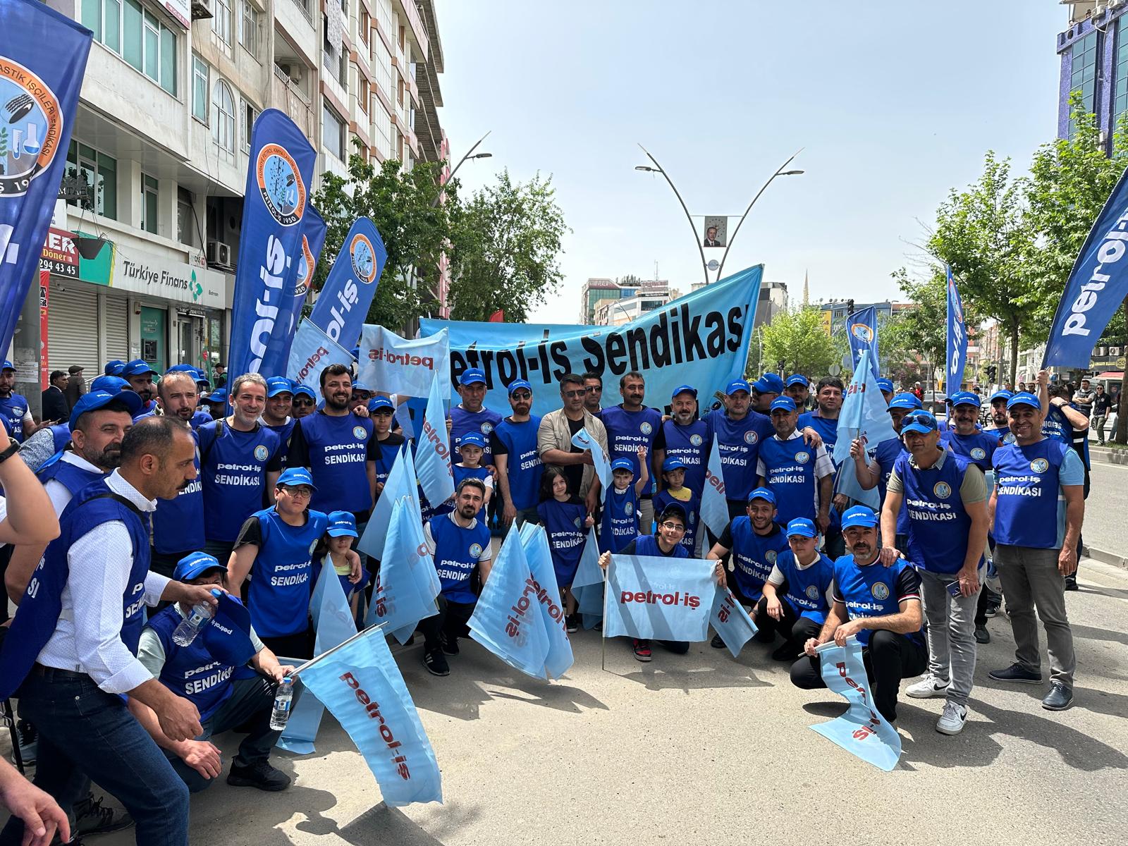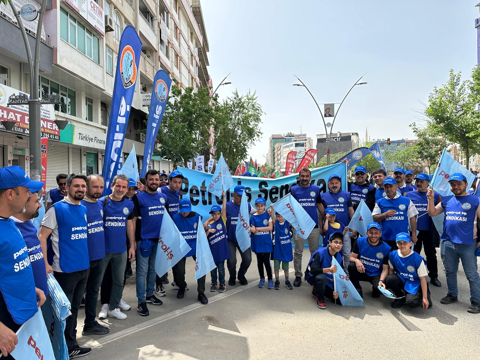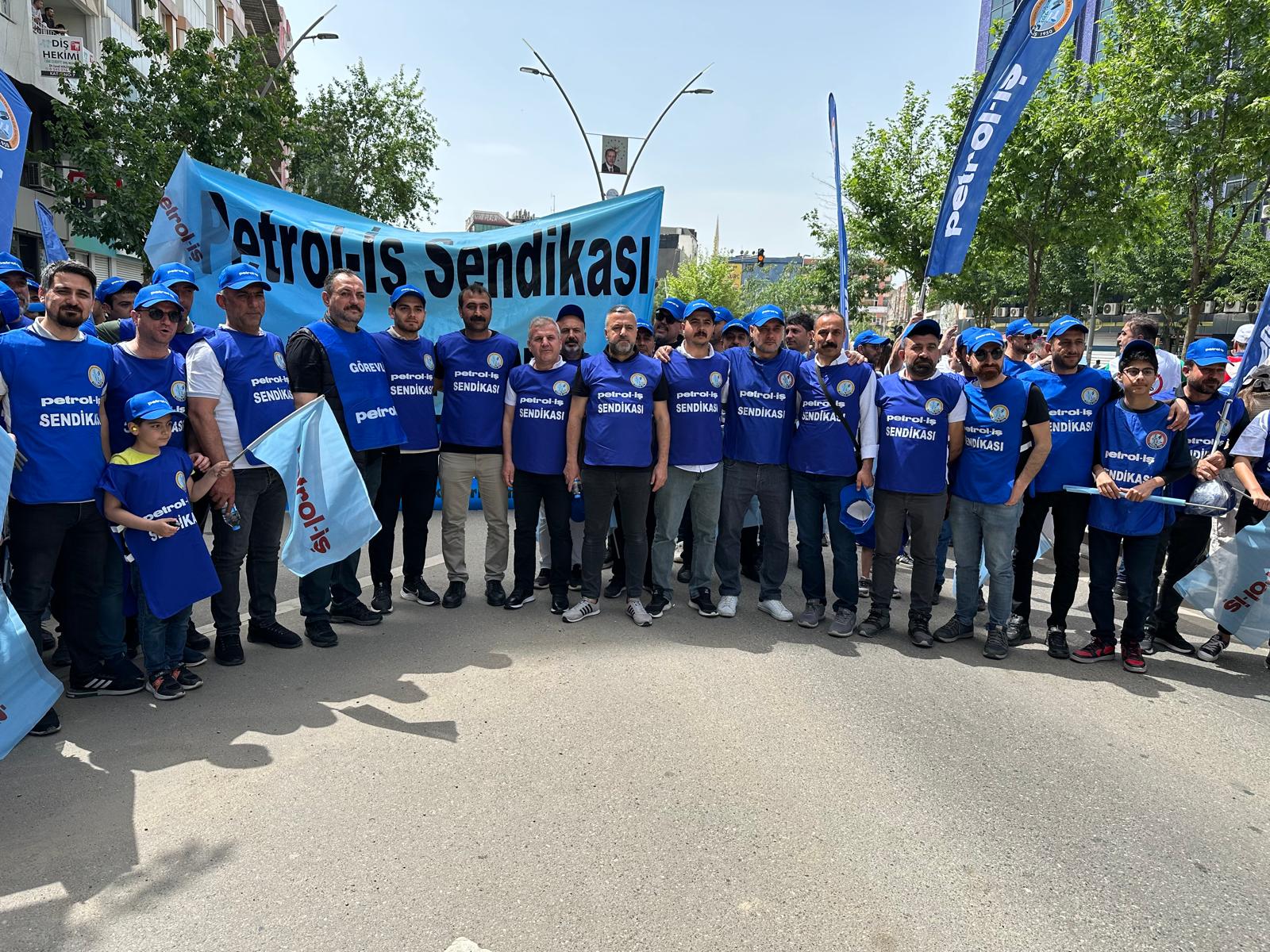 2025 1 Mayıs’ı Batman’da coşkulu bir şekilde kutlandı. Batman Şubemiz de 1 Mayıs alanında şube yöneticilerimiz ve üyelerimizin yoğun katılımıyla yer aldı. Batman Emek ve Demokrasi Platformu koordinasyonunda yapılan 1 Mayıs, ‘Emek, barış, demokrasi, adalet’ temasıyla düzenlendi. Kutlamalara Batman Şubemiz, KESK, DİSK, SES, TTB, İHD, Teksif, TMMOB’un yanı sıra birçok sivil toplum örgütü ve siyasi parti de katıldı. Basın kavşağında kortejler halinde başlayan yürüyüş, Atatürk Parkı Yılmaz Güney sineması alanında son buldu. Yürüyüşü boyunca Petrol-İş kortejinden “Zafer Direnen Emekçinin Olacak”, “Direne Direne Direnişten Zafere”, İşçilerin Birliği Sermayeyi Yenecek” sloganları yükseldi. Taşınan pankartlar, atılan sloganlar ve davul-zurna eşliğinde çekilen halaylar da kutlamalara renk kattı.