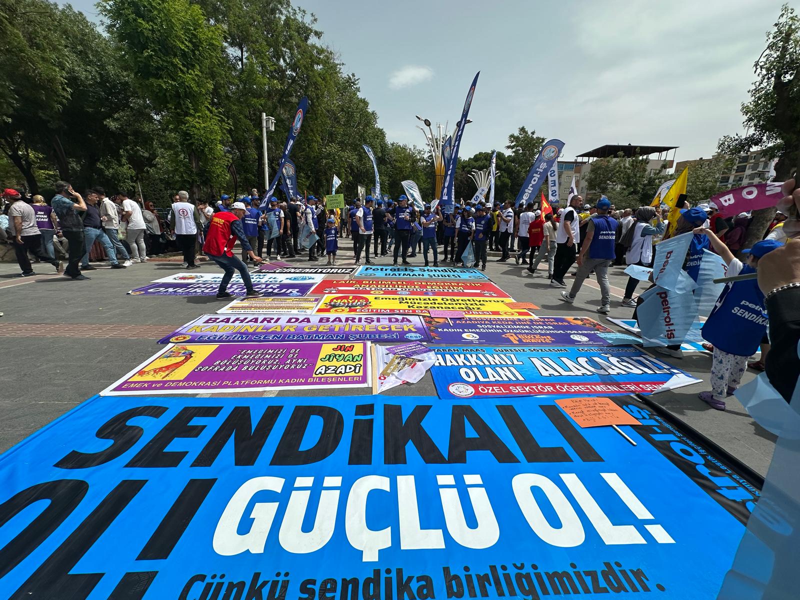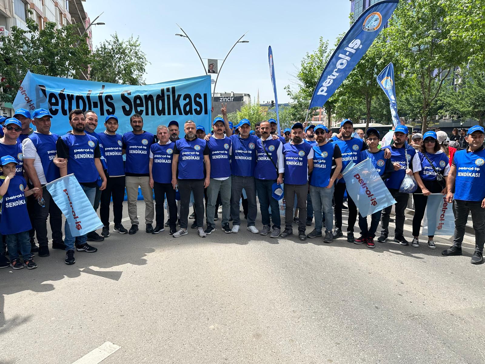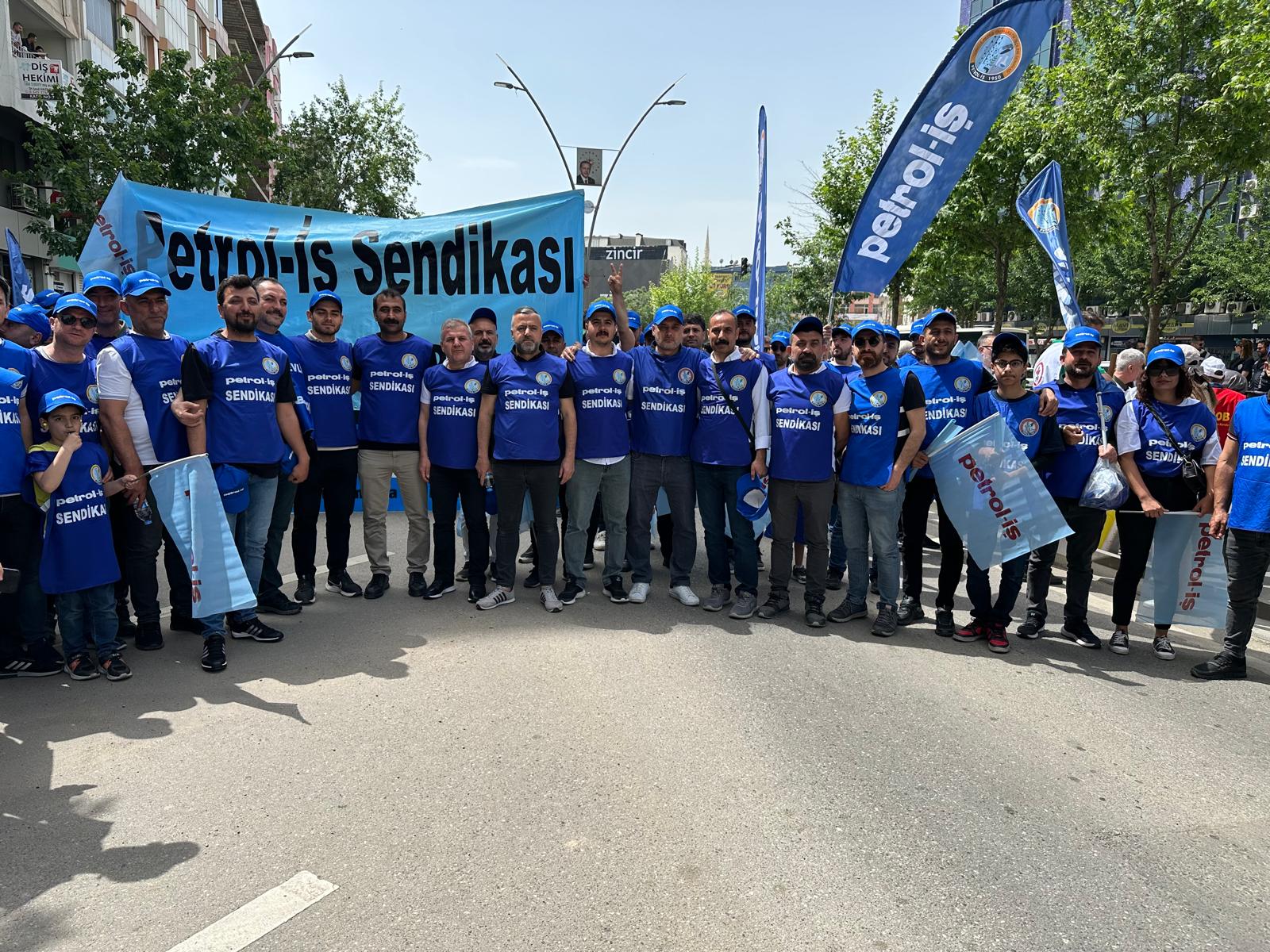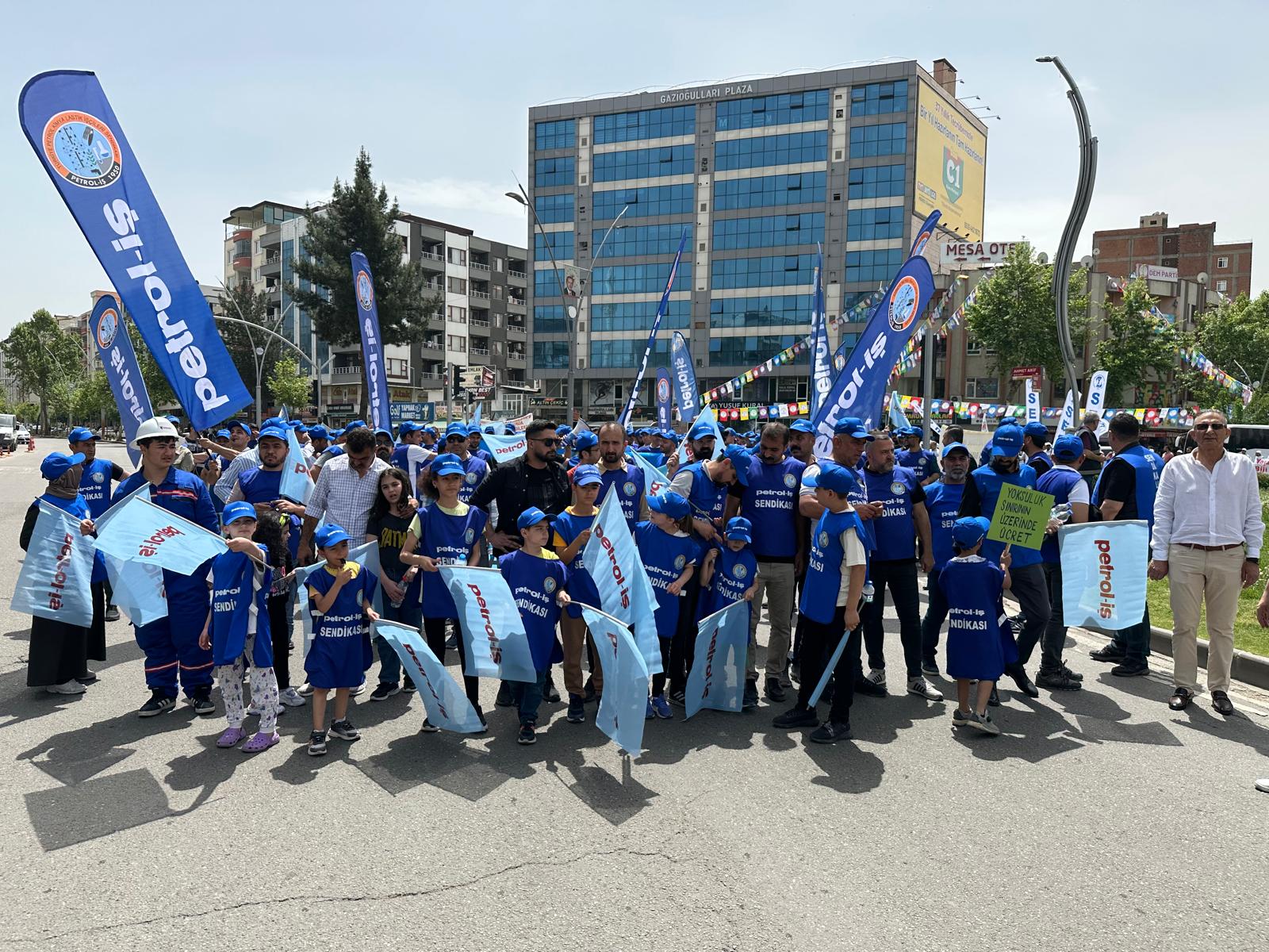2025 1 Mayıs’ı Batman’da coşkulu bir şekilde kutlandı. Batman Şubemiz de 1 Mayıs alanında şube yöneticilerimiz ve üyelerimizin yoğun katılımıyla yer aldı. Batman Emek ve Demokrasi Platformu koordinasyonunda yapılan 1 Mayıs, ‘Emek, barış, demokrasi, adalet’ temasıyla düzenlendi. Kutlamalara Batman Şubemiz, KESK, DİSK, SES, TTB, İHD, Teksif, TMMOB’un yanı sıra birçok sivil toplum örgütü ve siyasi parti de katıldı. Basın kavşağında kortejler halinde başlayan yürüyüş, Atatürk Parkı Yılmaz Güney sineması alanında son buldu. Yürüyüşü boyunca Petrol-İş kortejinden “Zafer Direnen Emekçinin Olacak”, “Direne Direne Direnişten Zafere”, İşçilerin Birliği Sermayeyi Yenecek” sloganları yükseldi. Taşınan pankartlar, atılan sloganlar ve davul-zurna eşliğinde çekilen halaylar da kutlamalara renk kattı.