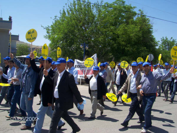 1 Mayıs İşçi Bayramı nedeniyle Batman Belediyesi ve Bulvar İş Merkezi önünde toplanan ve aralarında Batman Belediye Başkanı Nejdet Atalay’ın da bulunduğu yüzlerce emekçi, Batman Demokrasi Platformu üyeleri öncülüğünde Sanat Sokağı’na kadar yürüdü. Yürüyüşte ‘Barış hemen şimdi’, ‘Kayıplar bulunsun failler yargılansın’, ‘Kadrolaşma ve sürgünlere hayır’, ‘Yaşasın Kürt ve Türk emekçilerinin dayanışması’, ‘Bijî yekitiya tekoşina ketkarên kûrdu Tirkan, Bijî yek Gulan’ pankartları ile ‘AKP sağlığa zararlıdır’, ‘Herkese eşit ücretsiz sağlık hakkı’ dövizler taşındı. Bu arada bir süre önce Beşiri Belediyesi’nde AKP’li Belediye Başkanı tarafından işten çıkarılan 33 işçi ‘Devlet kadrosu Beşiri’de boş’, ‘Ağalar diyarında işçi kıyımı’, ‘Ağa geldi ekmek gitti’, ‘AKP Ankara’da Bayram Beşiri’de kurban’ yazılı dövizleri taşıyarak, tepkilerini dile getirdi.