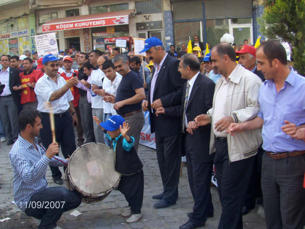 Sanat Sokağı’nı dolduran işçiler konuşmaların ardından davul zurna eşliğinde halaylar çekti.