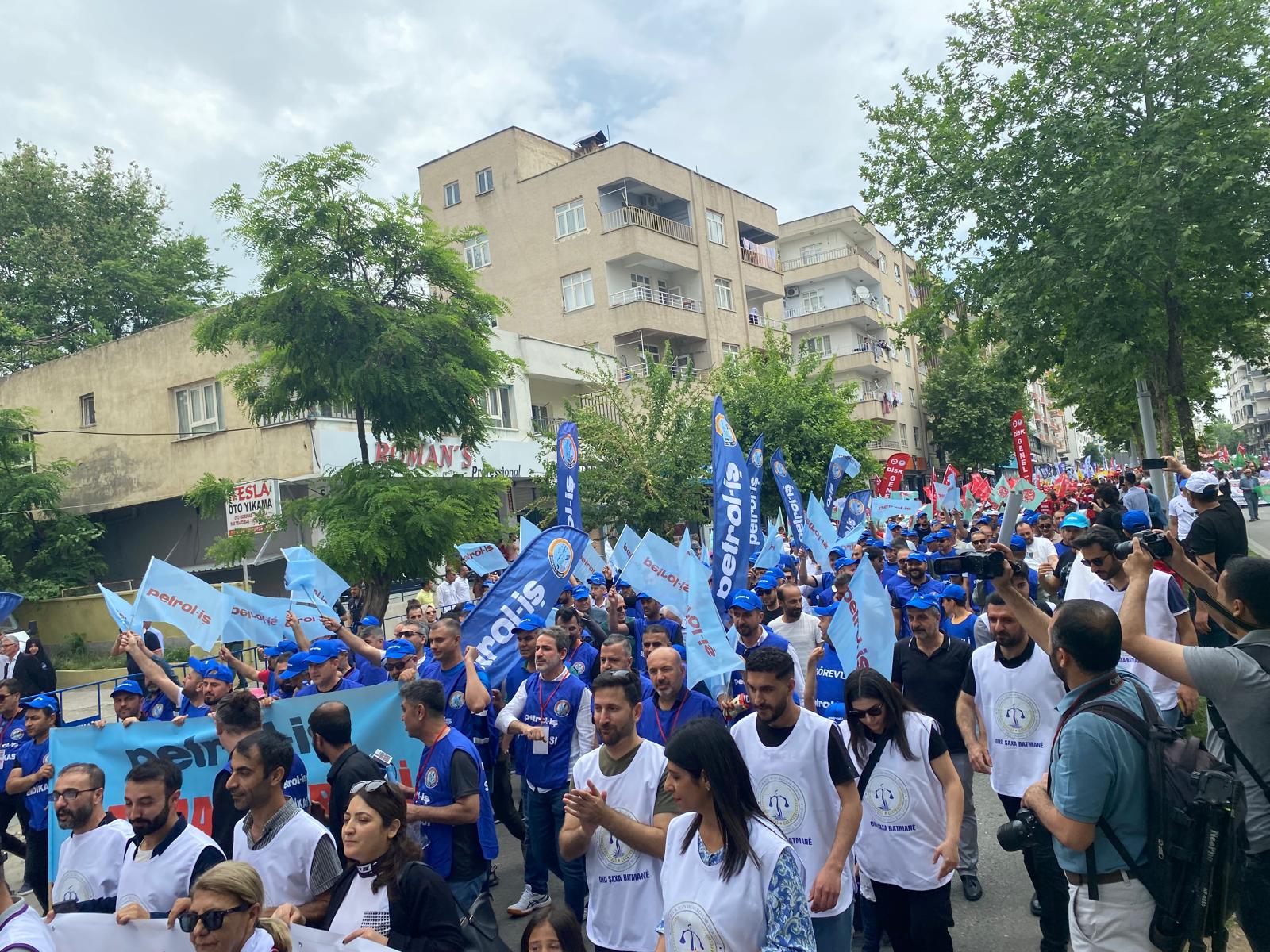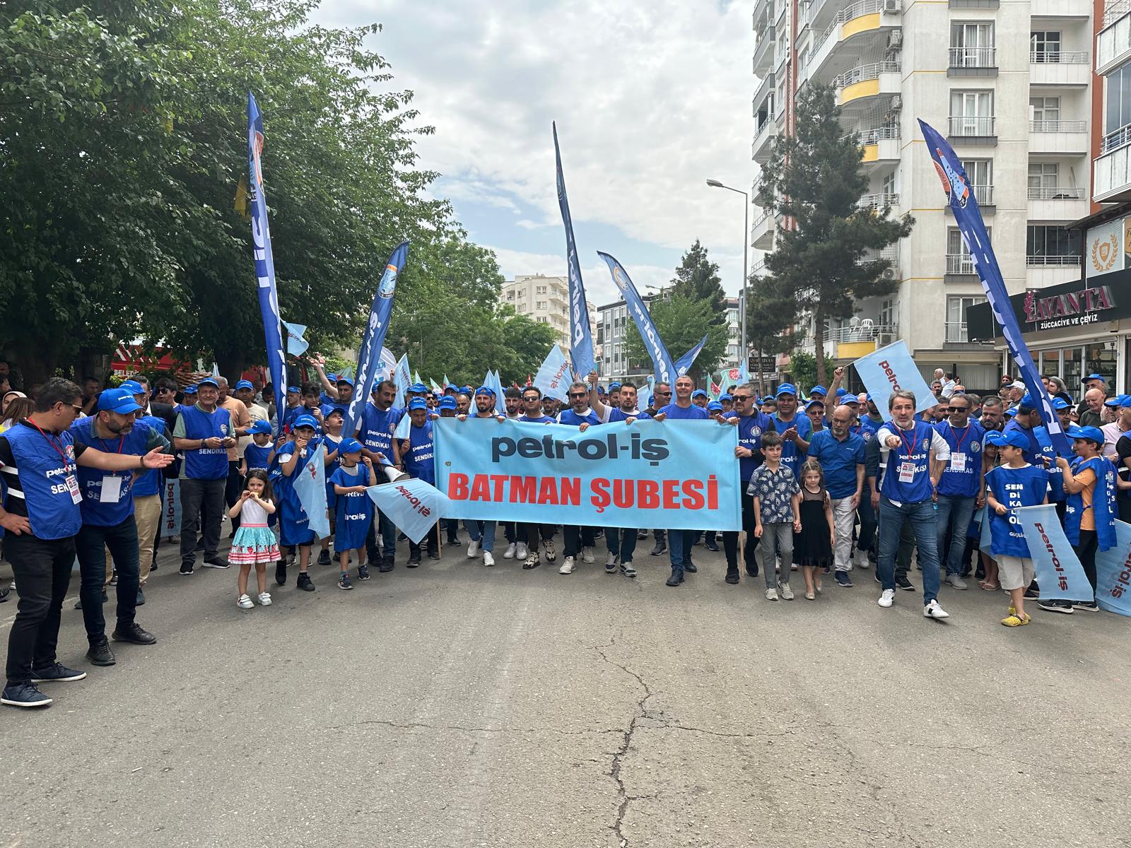 Sendikamız Batman Şubesi de ev sahibi olarak 1 Mayıs’a yoğun katılım gösterdi. Şube Yöneticilerimiz ve örgütlü olduğumuz işyerlerinden üyelerimiz sabahın ilk saatlerinden itibaren bir araya gelerek kortejler halinde miting alanına doğru sloganlarla yürüyüşe geçti.