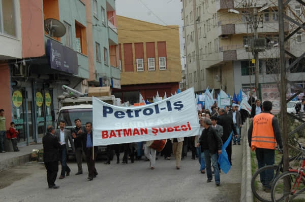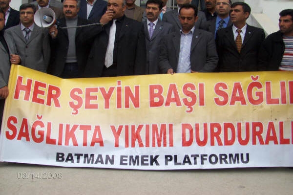 Saat 10.00'dan itibaren Batman merkezde çalışan üyelerimiz, sendikamız önünde toplanmaya başladılar. Çekilen halayların ardından üyelerimizle beraber basın açıklamasının yapılacağı alana doğru, disiplinli bir kortej oluşturulup yürüyüşe geçildi. Yol boyunca sloganlar atıldı ve coşkumuza halk da arabalarının kornalarıyla, balkonlardan selamlarıyla ortak oldu. Kadın katılımımız ilk kez tam katılımla gerçekleşirken, bu durum gelecek günler için umut verdi. Alana vardığımızda büyük bir coşkuyla karşılandık. Sık sık "AKP sağlığa zararlıdır. Savaşa değil eğitime bütçe, sağlık hakkımız satın alınamaz, Kahrolsun IMF işbirlikçi AKP" sloganları atıldı. Şube Başkanımız ve KESK temsilcilerinin yaptığı konuşmalardan sonra, uzun süre halay çekip slogan attıktan sonra eylemimiz sona erdi.