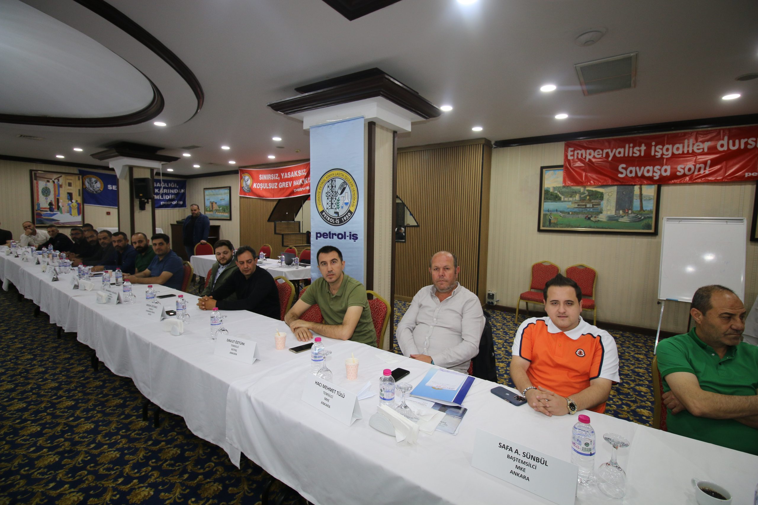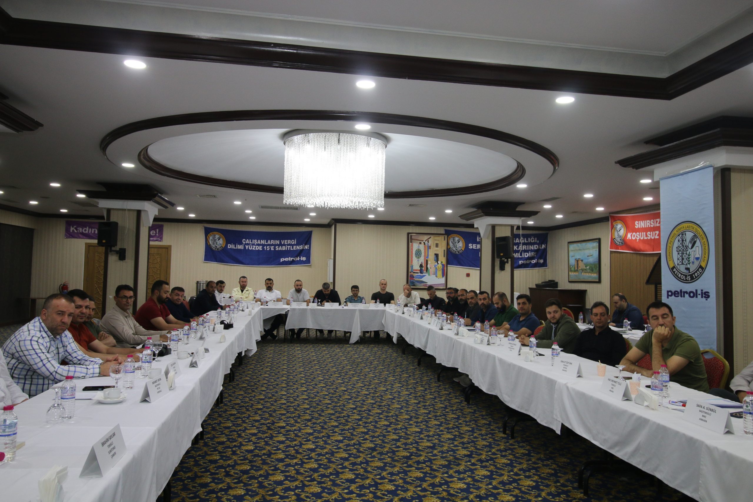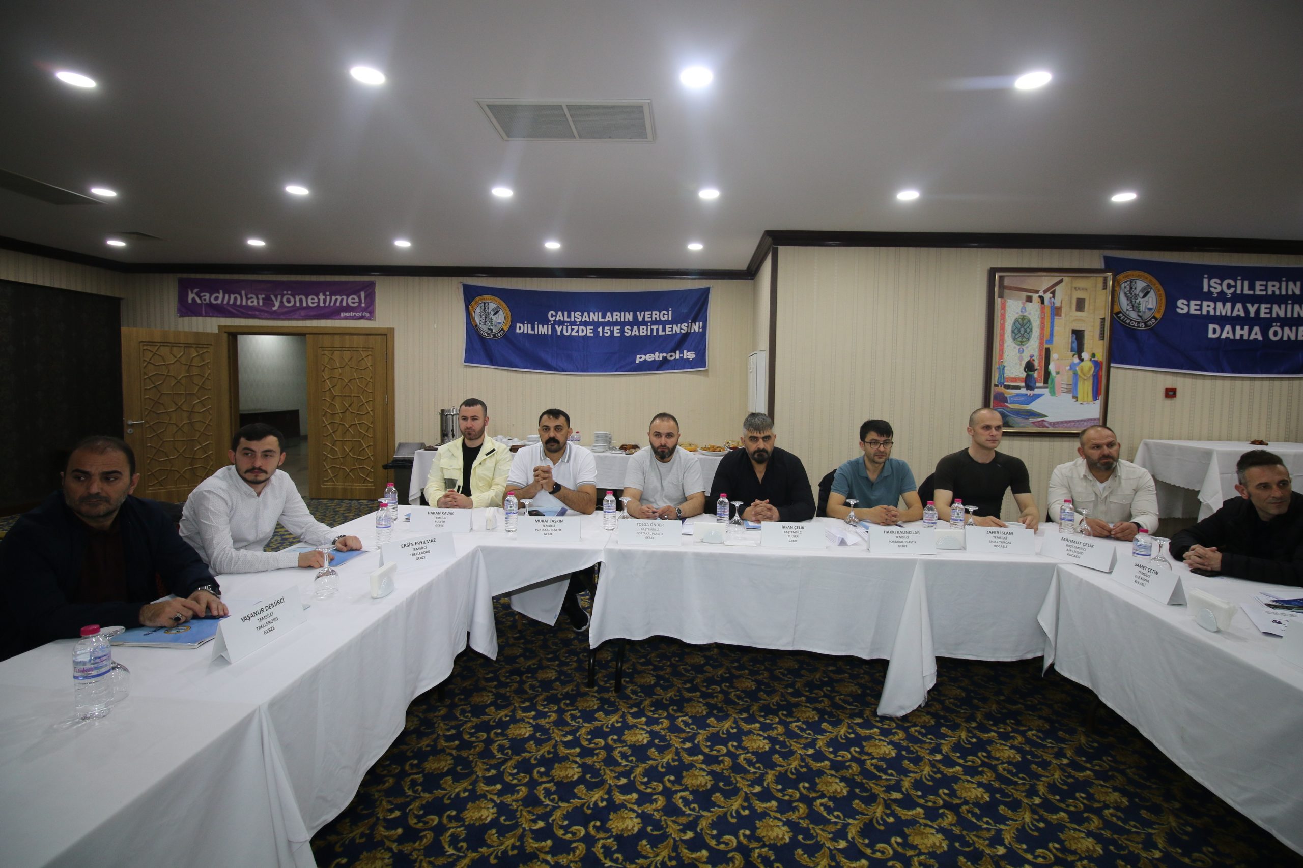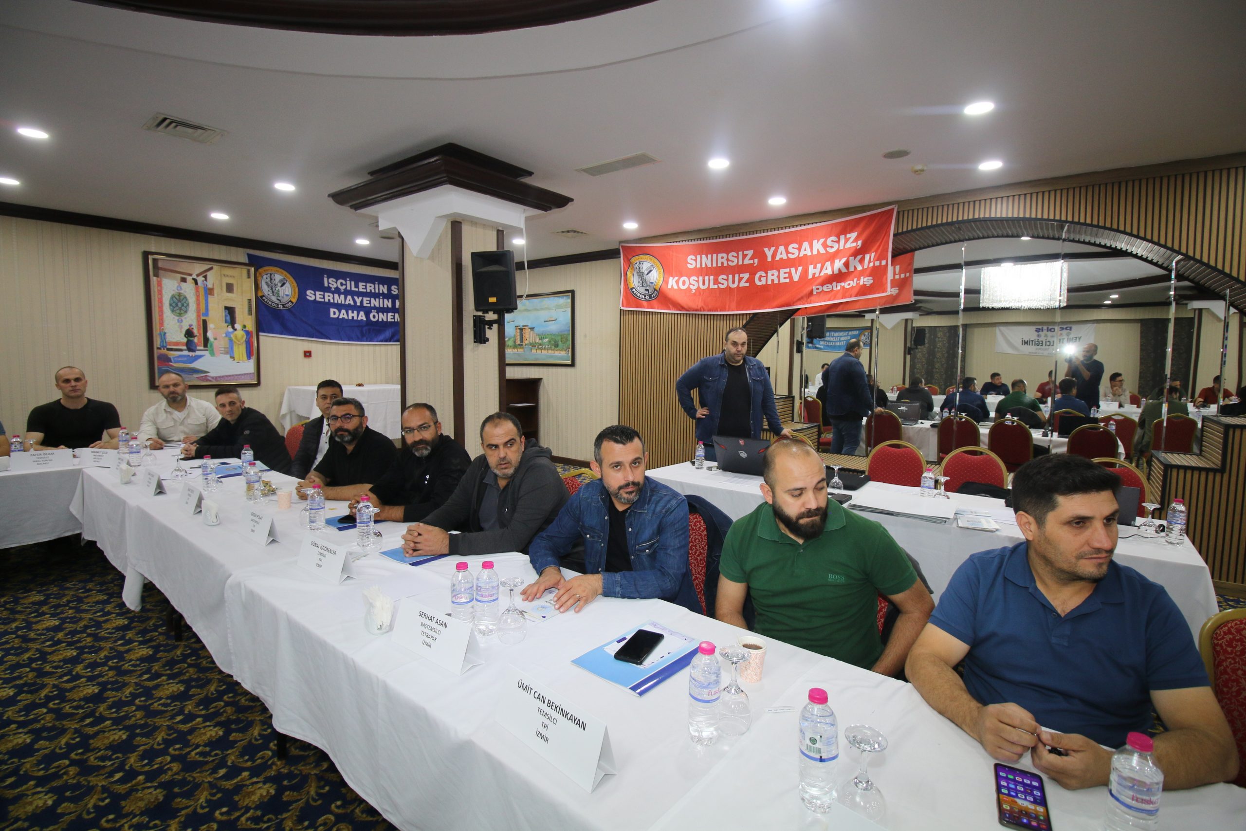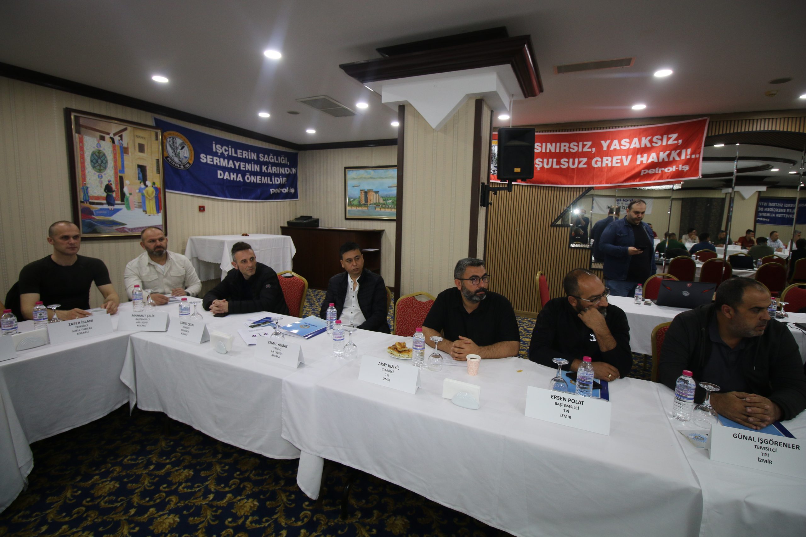 Saat 10.00’da başlayan toplantıda, Petrol-İş eğitimleri başta olmak üzere örgütlenme, toplu sözleşme süreçleri, emek gündemine ilişkin genel politik atmosferin sendikalara ve işçi sınıfına nasıl yansıdığı üzerine değerlendirmelerde bulunuldu.