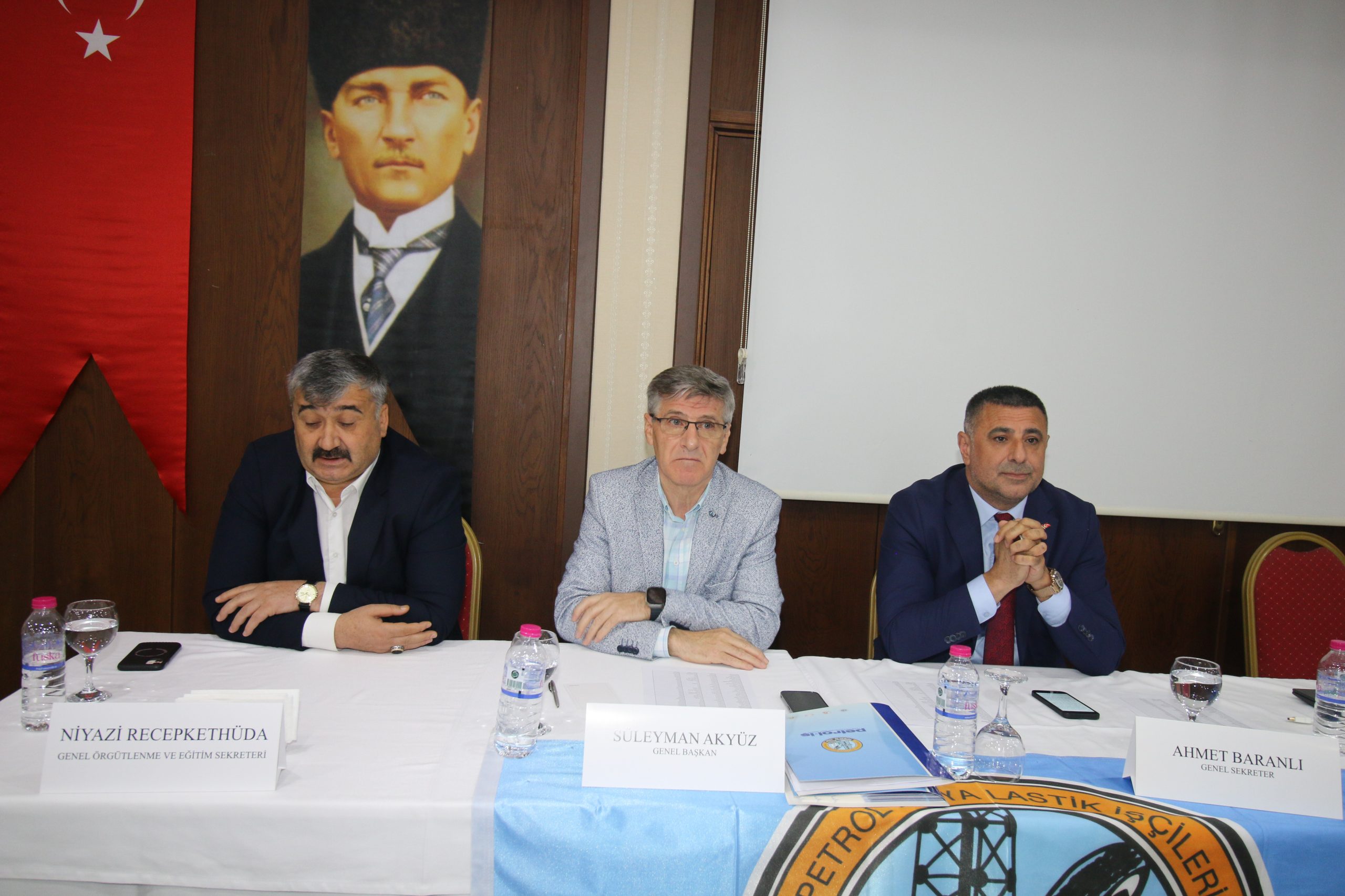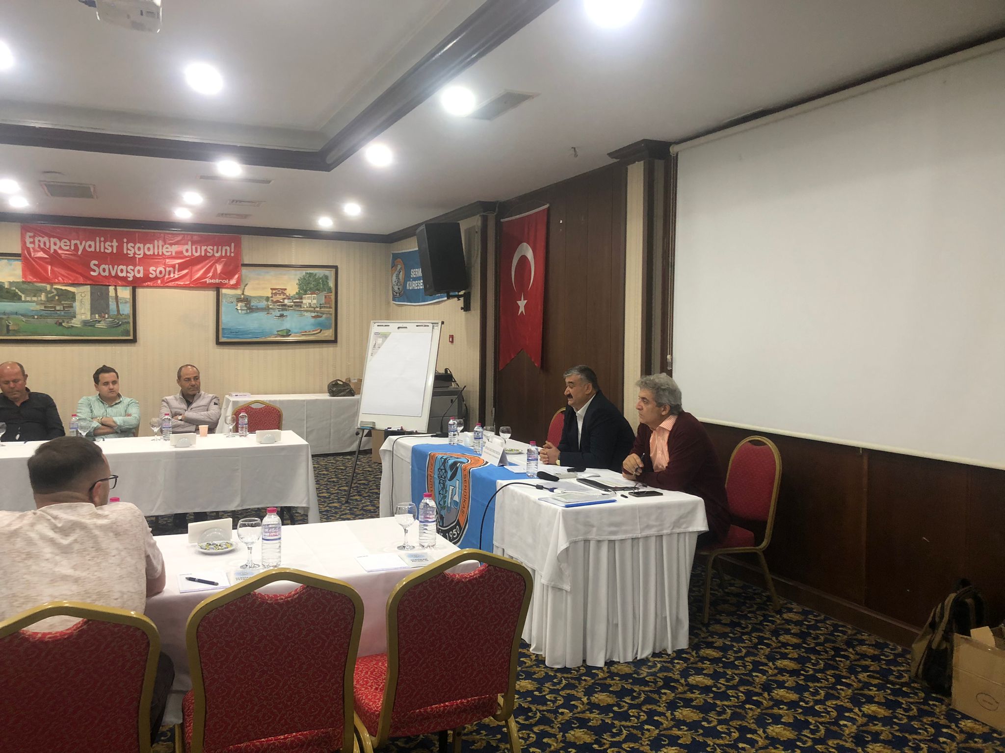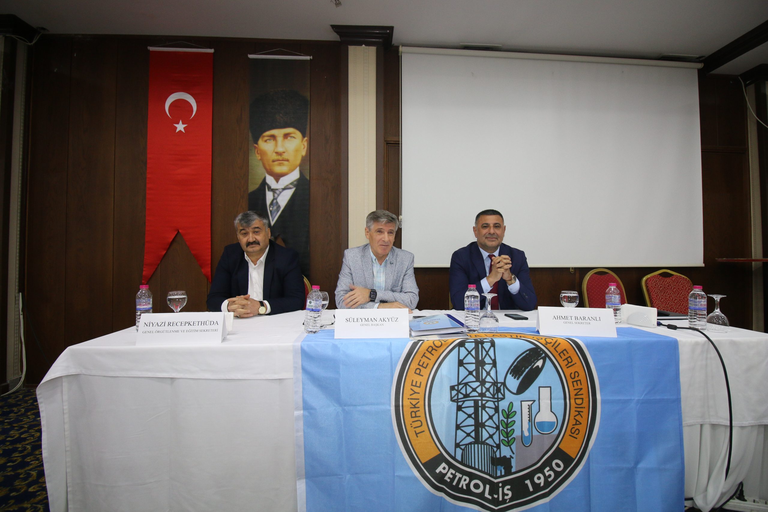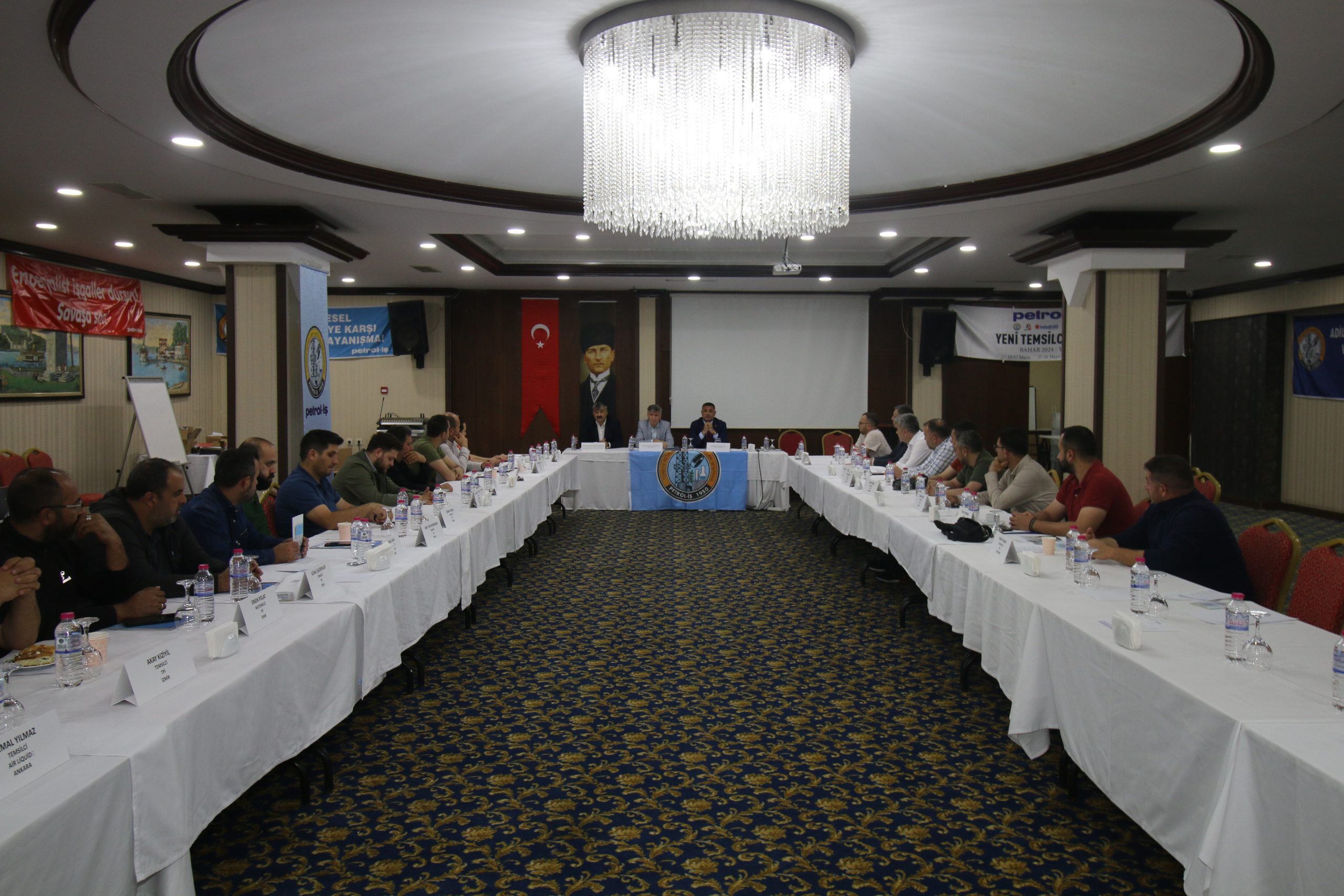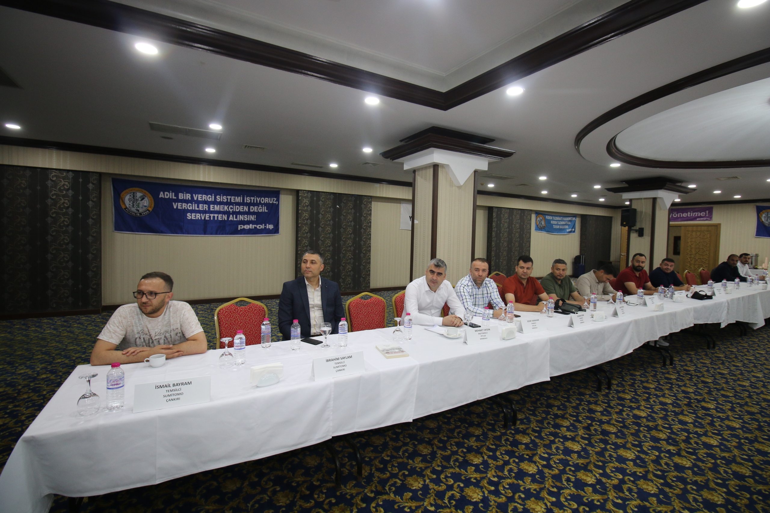 Saat 10.00’da başlayan toplantıda, Petrol-İş eğitimleri başta olmak üzere örgütlenme, toplu sözleşme süreçleri, emek gündemine ilişkin genel politik atmosferin sendikalara ve işçi sınıfına nasıl yansıdığı üzerine değerlendirmelerde bulunuldu.