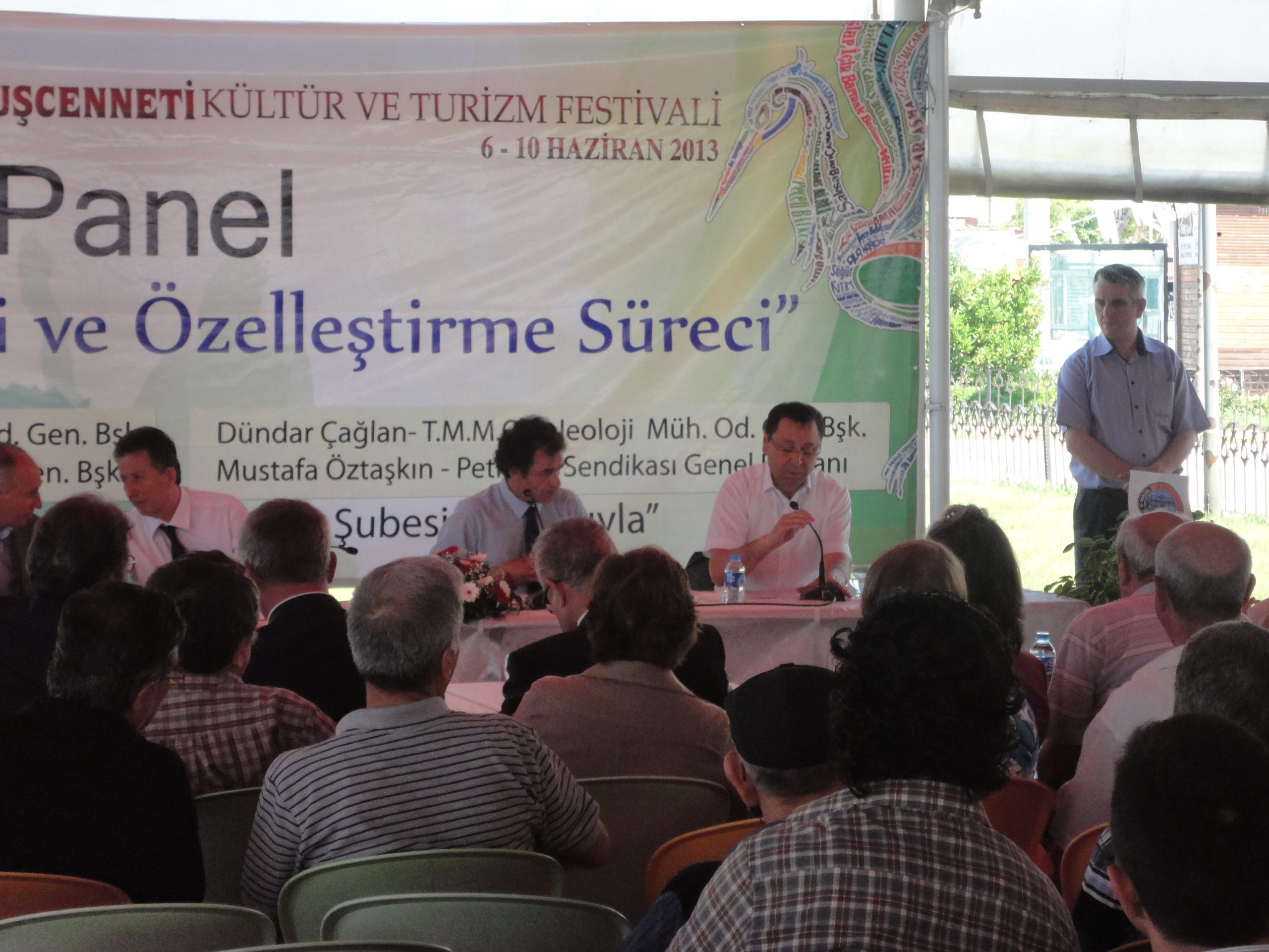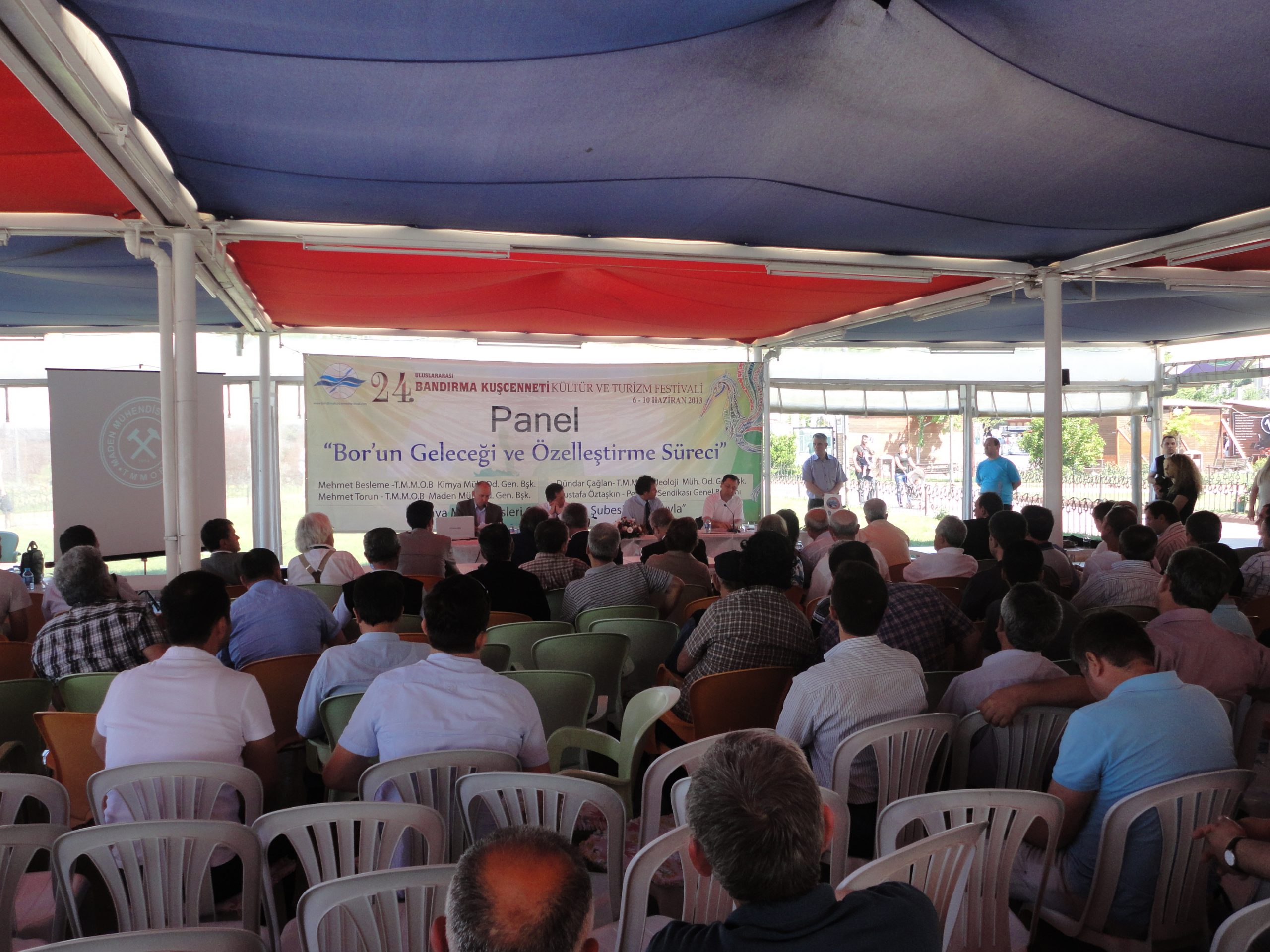 “Borun Geleceği ve Özelleştirme Süreci’’ konulu panel, Bandırma’da Hayal Çay Bahçesi’nde yapıldı. Kimya Mühendisleri Odası Başkanı Mehmet Besleme’nin moderatörlüğünü yürüttüğü panele, konuşmacı olarak Petrol-İş Sendikası Genel Başkanı Mustafa Öztaşkın, Jeoloji Mühendisleri Odası Başkanı Dündar Çağlan ve Maden Mühendisleri Odası Başkanı Mehmet Torun katıldı.