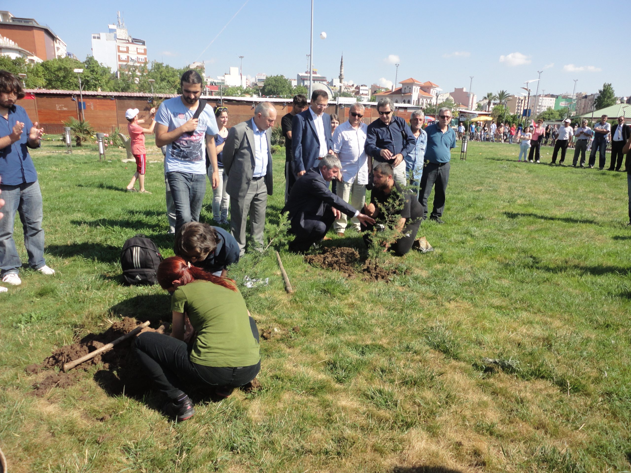 Panel’in ardından konuşmacı ve katılımcılar Gezi Parkı eylemlerinde yaşamını yitiren iki direnişçi anısına sahil şeridinde bulunan Aşk Köprüsü civarına iki çam fidanı diktiler.