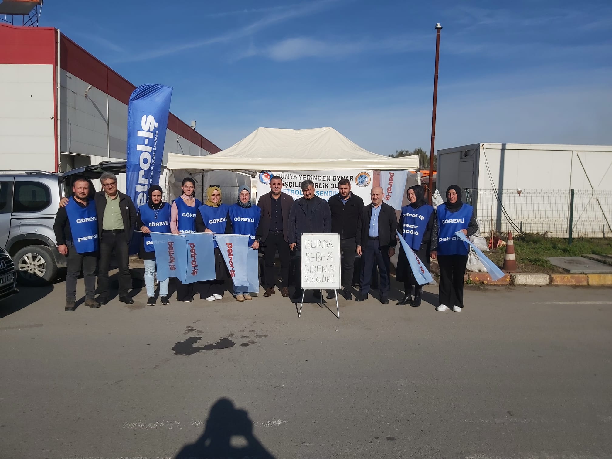 Sendikamız Düzce Şubesi öncülüğünde sürdürülen Burda Bebek Direnişi bugün 25. gününde kararlılıkla devam ediyor. 14 Aralık Perşembe günü sendikamız Genel Sekreteri Ahmet Baranlı ile Genel Örgütlenme ve Eğitim Sekreteri Niyazi Recepkethüda direniş alanında üyelerimizle biraraya geldi. Direniş alanında kararlılık vurgusu öne çıkarken, işverenin bir an önce kanunlara uygun davranması ve toplu sözleşme masasına oturma çağrısı yinelendi. İstanbul 1 Nolu Şube Yönetim Kurulu Üyesi Aziz Aydın ile sendikamız Eğitim Servisi Uzmanı Erhan Kaplan da ziyarette yer aldı.