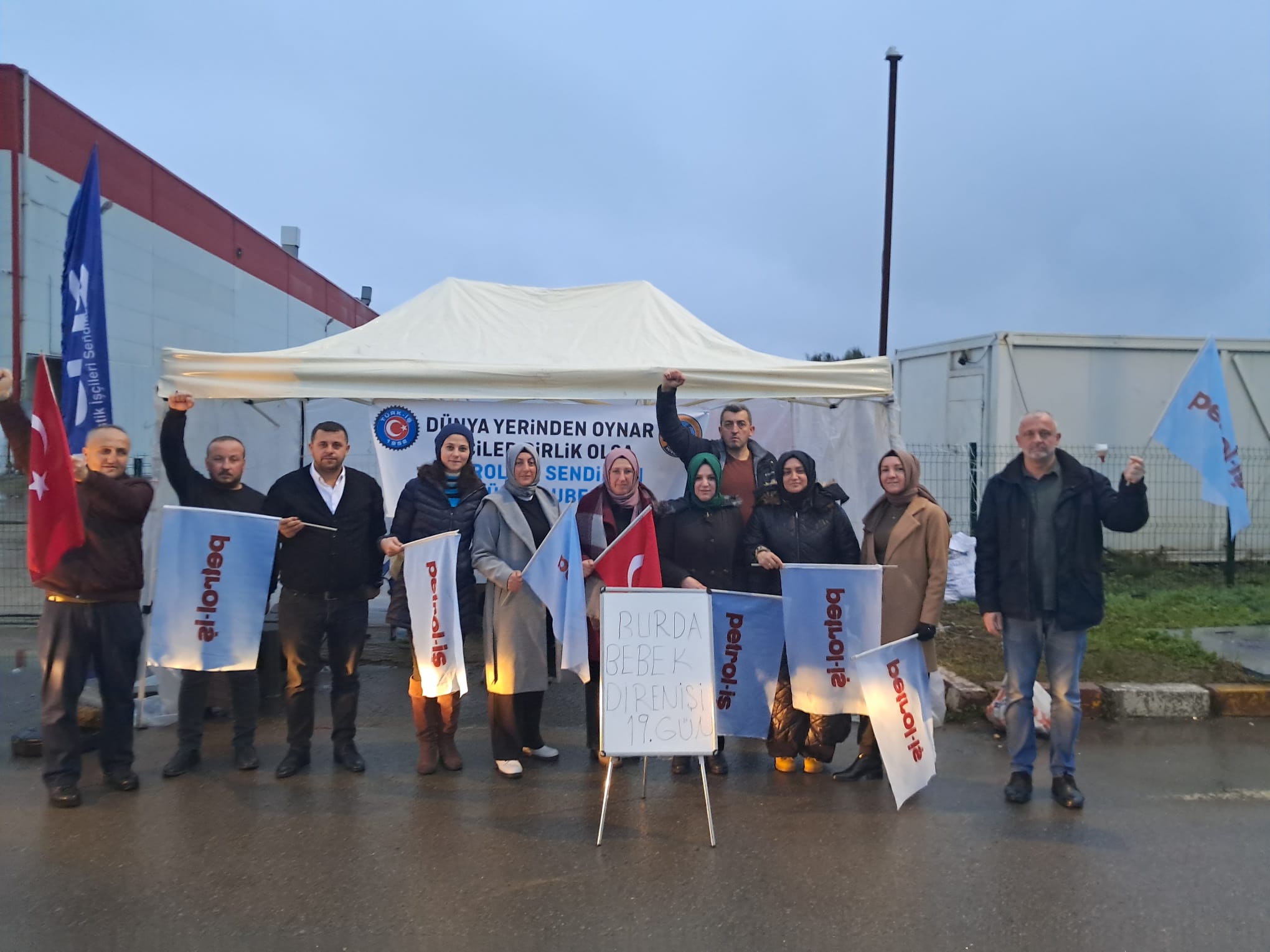 Sakarya Hendek’te kurulu Burda Bebek’te sendikamız Düzce Şube öncülüğünde sürdürülen direniş bugün 19. gününde. İşten çıkarılan üyelerimizin fabrika önündeki direnişi kararlılıkla devam ediyor.
