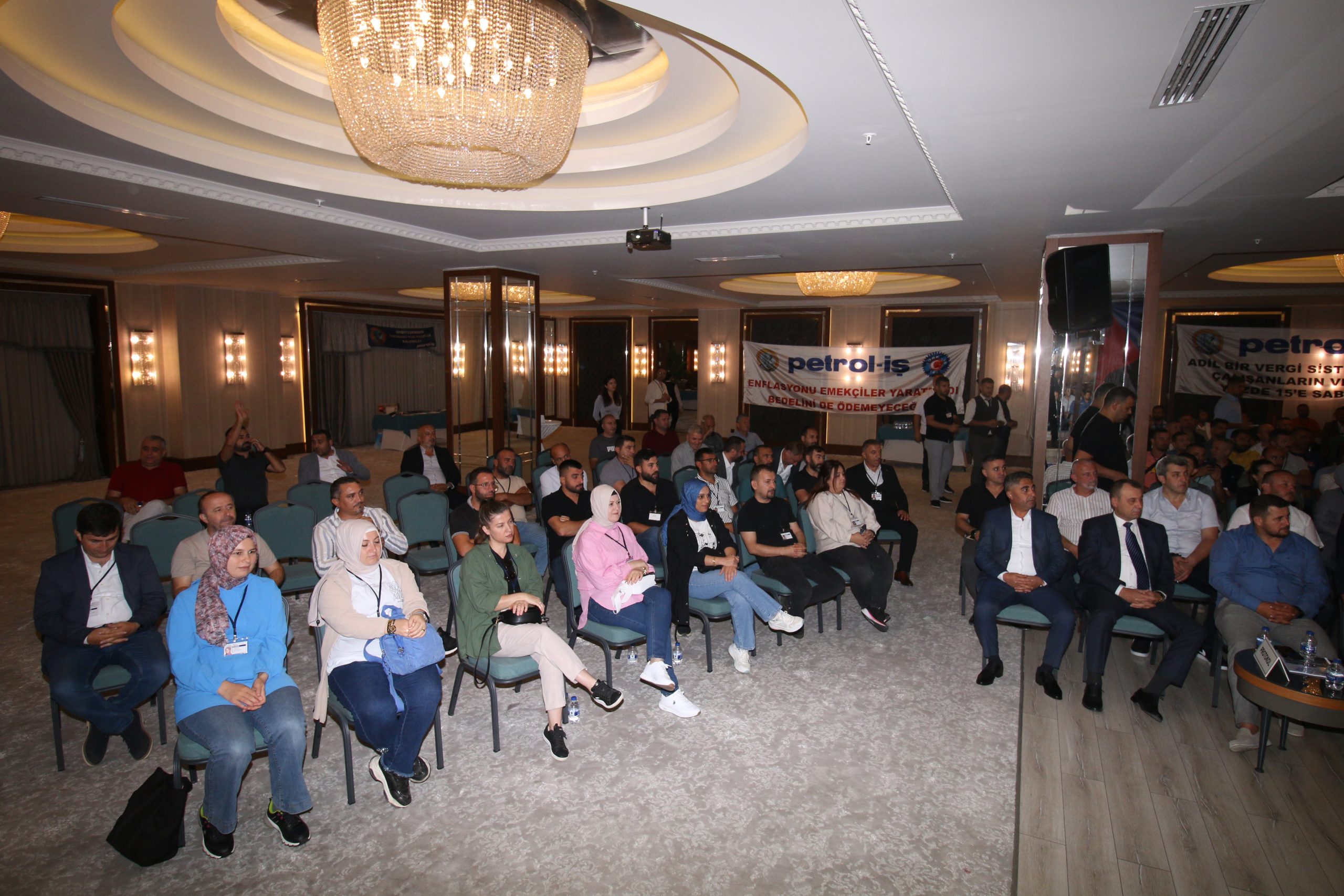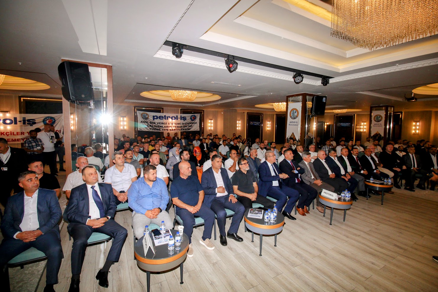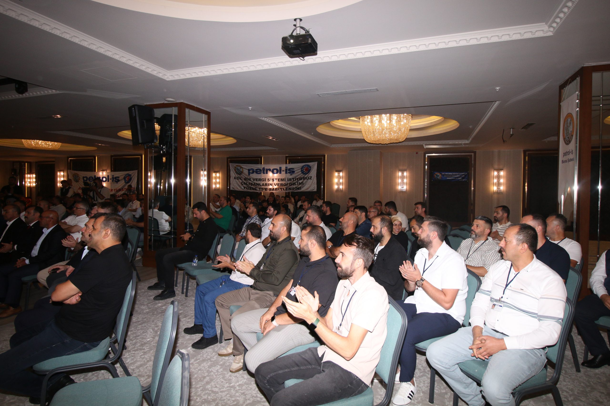 “Zordayız Geçinemiyoruz” eylemleri ile bir mücadele döneminin başladığını söyleyen Akyüz, bu mücadelenin ortak ve birlikte yürütülmesini, tüm işçi sınıfının farklılıklarını bir kenara bırakarak emek çatısı altında mücadele vermesi gerektiği belirtti. Petrol-İş Sendikasının siyasi, etnik kimlik ve inanç anlamında kültürel bir mozaik olduğuna değinen Akyüz, işçi sınıfının sorunları ortadayken ve ülkede kronik hale gelmiş problemler yerinde duruyorken farklı konularla halkın gündeminin değiştirildiğine dikkat çekti. Devamında ise “O yüzden sendikal mücadelenizin yanına siyasal mücadeleyi koymak gerekiyor. Siyasal iktidarlar gelip geçidir, ama emek mücadelesi, sınıf mücadelesi bakidir. Hangi partiye gönül vermiş olursanız olun, kendi partinize baskı yapmalısınız. Biz emekçinin karşısında olan her kuruma ve kişiye karşı mücadele ettik, etmeye de devam edeceğiz.” dedi.