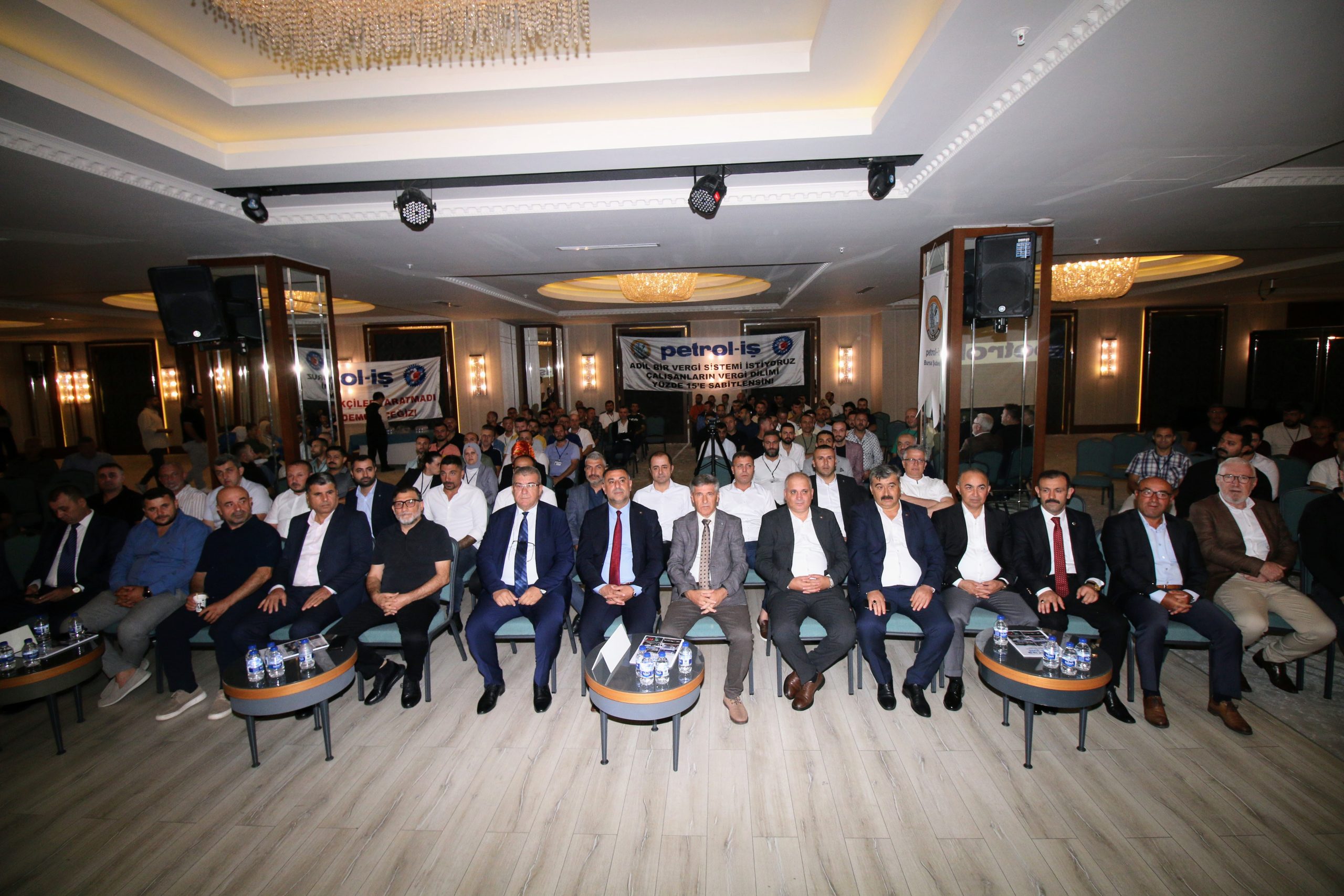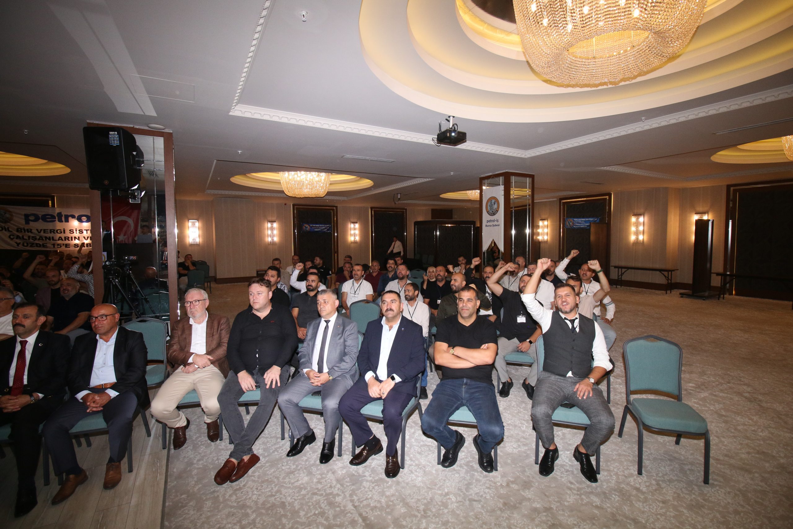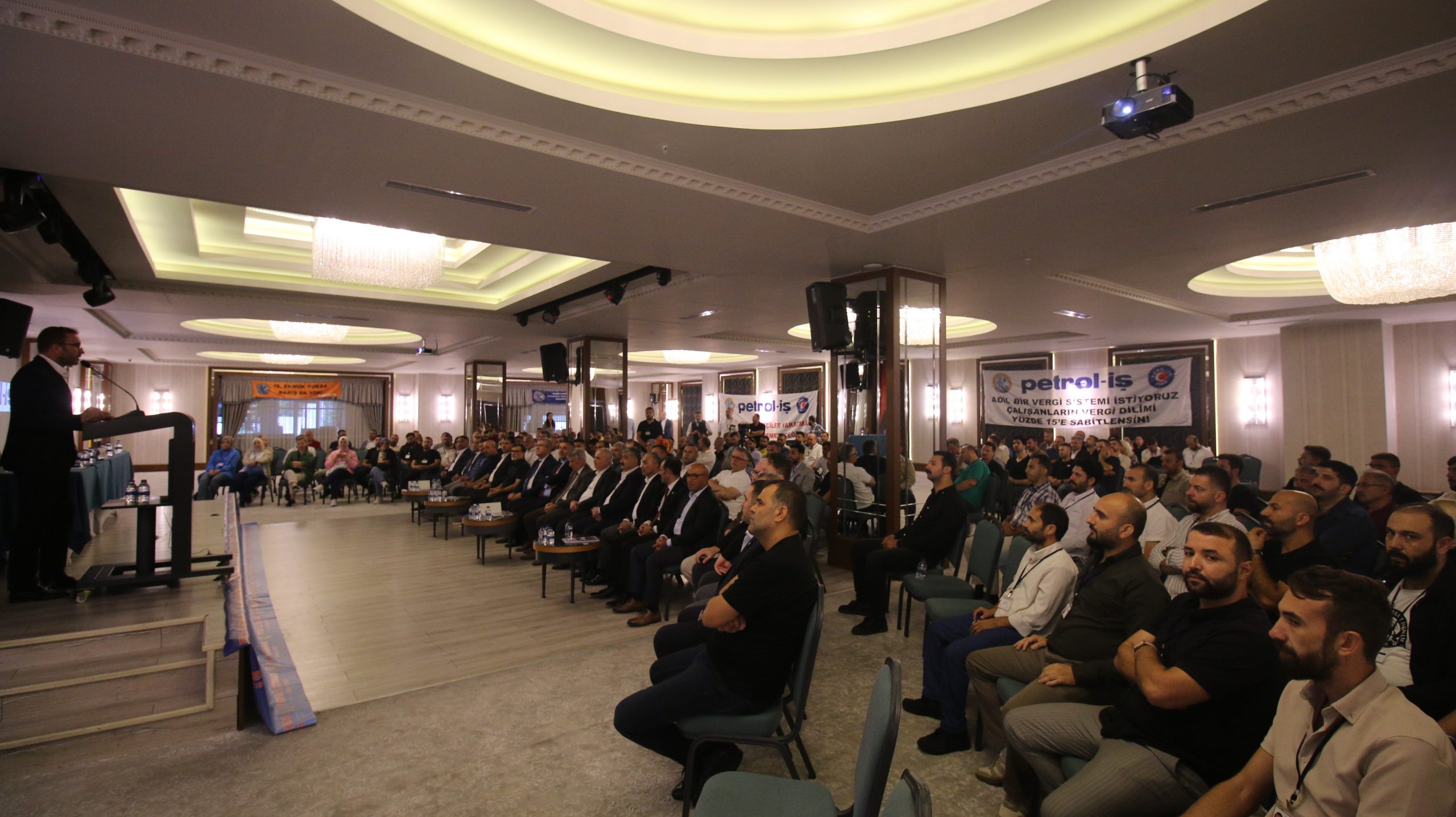 “Zordayız Geçinemiyoruz” eylemleri ile bir mücadele döneminin başladığını söyleyen Akyüz, bu mücadelenin ortak ve birlikte yürütülmesini, tüm işçi sınıfının farklılıklarını bir kenara bırakarak emek çatısı altında mücadele vermesi gerektiği belirtti. Petrol-İş Sendikasının siyasi, etnik kimlik ve inanç anlamında kültürel bir mozaik olduğuna değinen Akyüz, işçi sınıfının sorunları ortadayken ve ülkede kronik hale gelmiş problemler yerinde duruyorken farklı konularla halkın gündeminin değiştirildiğine dikkat çekti. Devamında ise “O yüzden sendikal mücadelenizin yanına siyasal mücadeleyi koymak gerekiyor. Siyasal iktidarlar gelip geçidir, ama emek mücadelesi, sınıf mücadelesi bakidir. Hangi partiye gönül vermiş olursanız olun, kendi partinize baskı yapmalısınız. Biz emekçinin karşısında olan her kuruma ve kişiye karşı mücadele ettik, etmeye de devam edeceğiz.” dedi.