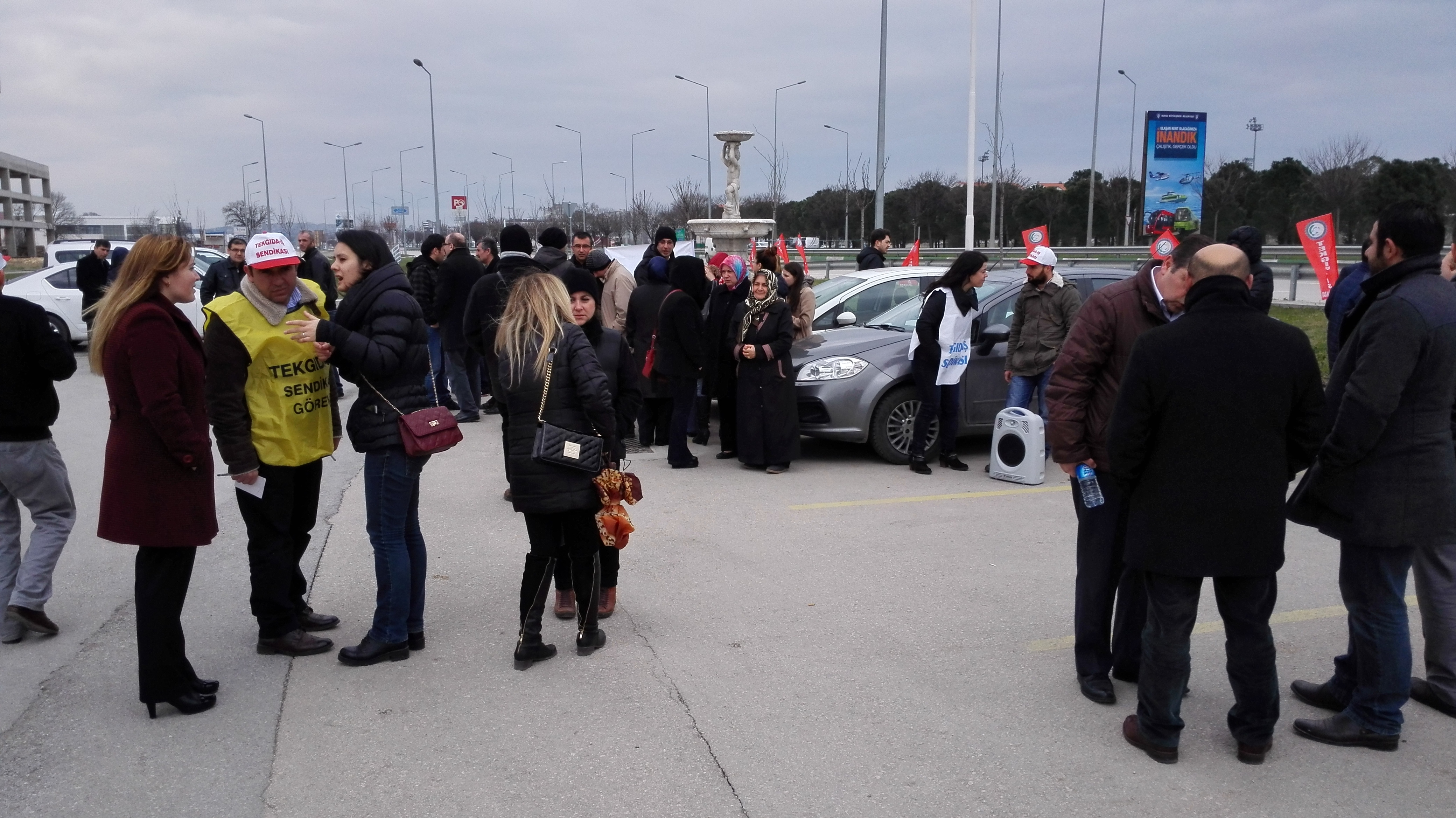 Petrol-İş Sendikası Bursa Şube Başkanı Erhan Yakışan 16 Mart Pazartesi günü Tekgıda-İş Sendikası’nın örgütlenmeye çalıştığı Kafkas Gıda işyerinden atılan 66 işçi için yapılan basın açıklamasına katılarak destek verdi.