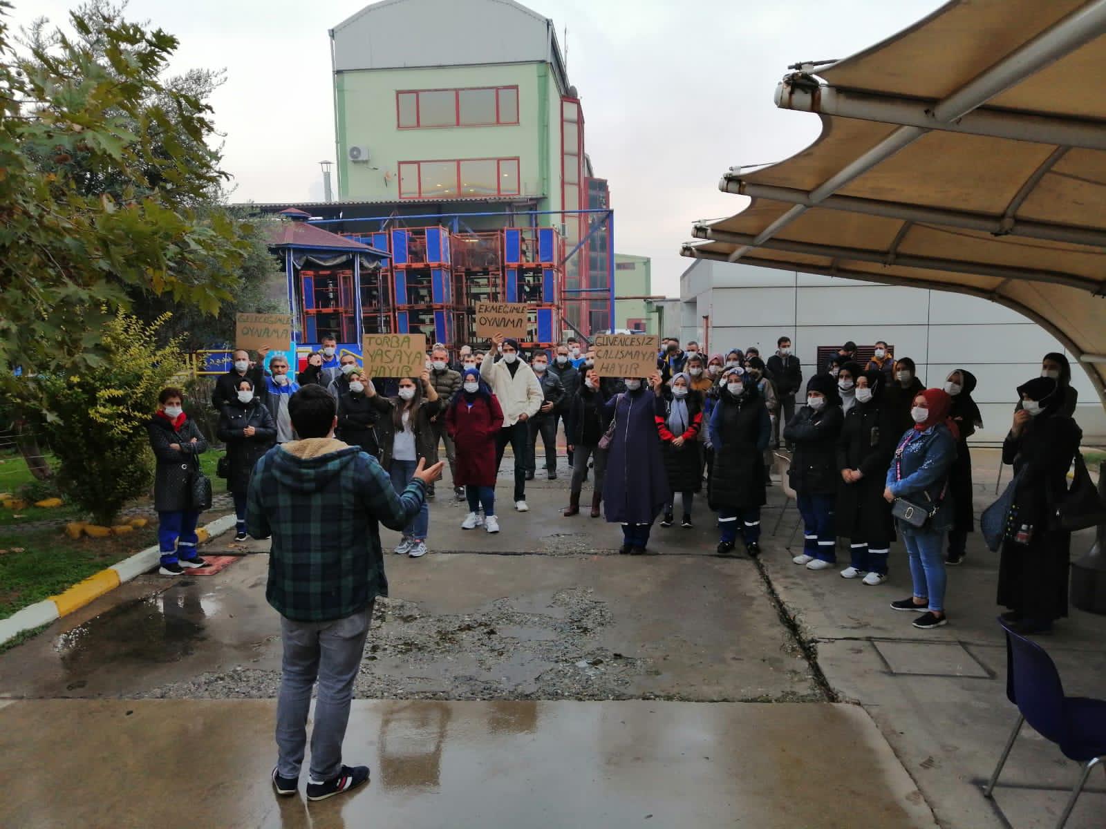 Burada biraraya gelen sendikalar yaptıkları ortak basın açıklamasında torba yasadaki maddelerin güvencesizlik, esnek çalışma ve sendikasızlaştırmanın önünü açacağını belirtilerek, TBMM gündeminden çıkartılması istedi. Ayrıca Bursa’da örgütlü olduğumuz işyerlerinde üyelerimiz, vardiya giriş çıkışlarında sloganlar atılarak tepkilerini dile getirdiler.