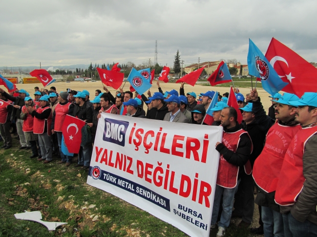 BMC’nin İzmir’deki 50 yıllık fabrikasında çalışan işçiler, iş, ekmek, gelecek mücadelesi için yollara çıktılar. Maaşlarını alamadıkları nedeniyle İzmir’den iki grup halinde Ankara ve İstanbul’a giden BMC işçilerinin bir bölümü 21 Şubat perşembe günü Bursa’ya geldi. Otobüslerle çıktıkları İstanbul yolculuğunda Bursa'ya ulaşan işçiler ile Türk Metal Sendikası Bursa Şubesi üyeleri, Fatih Sultan Mehmet Bulvarı'ndan Bursa Organize Sanayi Bölgesi'ne kadar sloganlarla yürüdü. Eyleme Türk-Metal sendikası Bursa Şubesi'nin, yanı sıra Petrol-İş Bursa Şubesi, Tek Gıda -İş, TÜMTİS, Yol-İş sendikalarının yöneticileri de katılarak destek verdi.