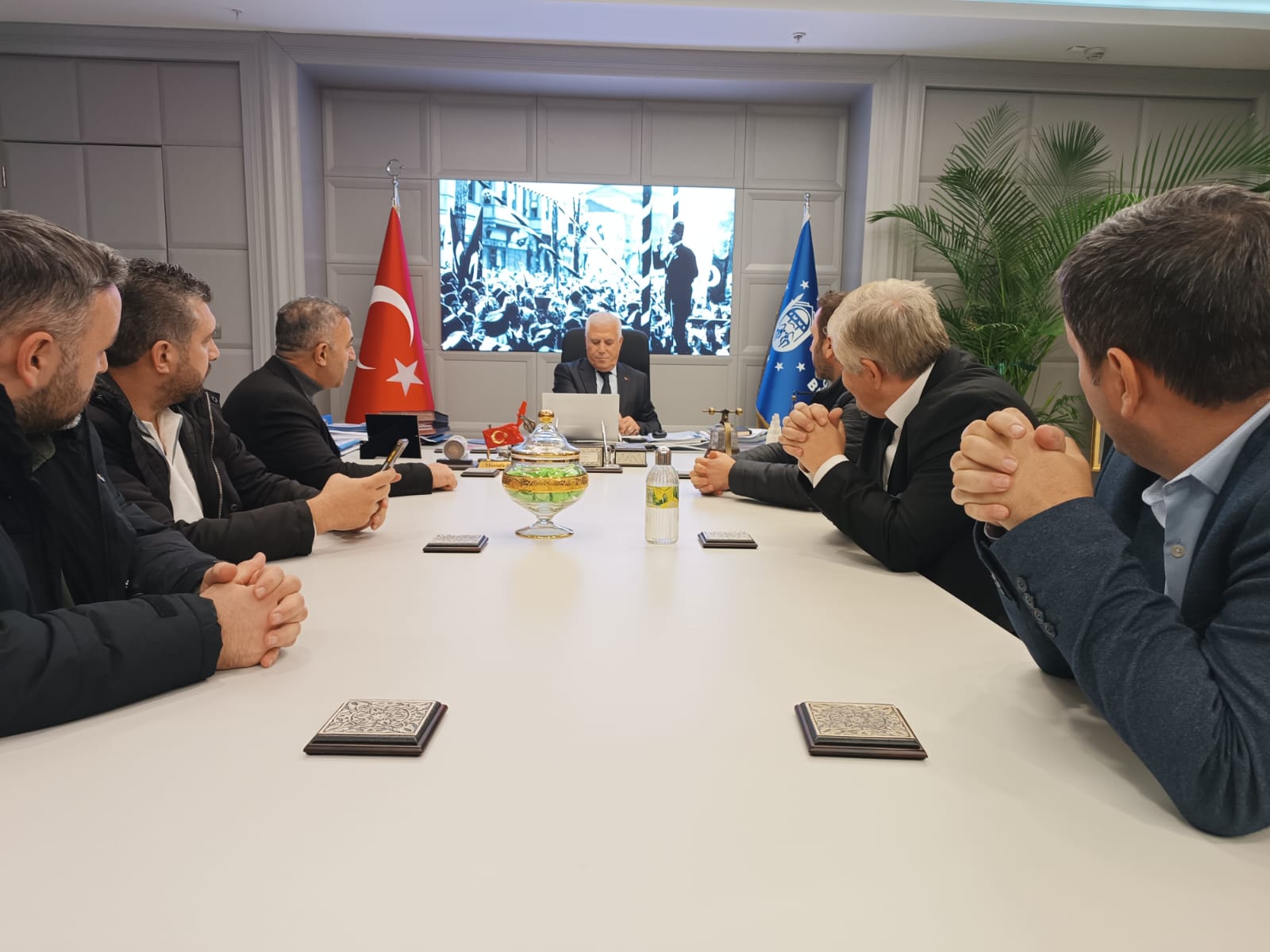 Bursa Şube Başkanımız Erhan Yakışan Başkan Yardımcımız Ersin Birgül Başkan Yardımcımız (Mali) Mustafa Yüksel ve Şube Yönetim Kurulumuz, Bursa Büyükşehir Belediye Başkanı Mustafa Bozbey’i makamında ziyaret ederek hayırlı olsun dileklerinde bulundular. Toplantıda gündeme dair konular ve işçi sınıfının Bursa bölgesinde yaşadığı sorunlar konuşuldu. Büyükşehir Belediye Başkanı Bozbey nezaket dolu ziyaretleri ve temennilerinden dolayı Bursa Şube Başkanımız Erhan Yakışan’a teşekkür etti. Görüşme karşılıklı iyi niyet dilekleri ile son buldu.