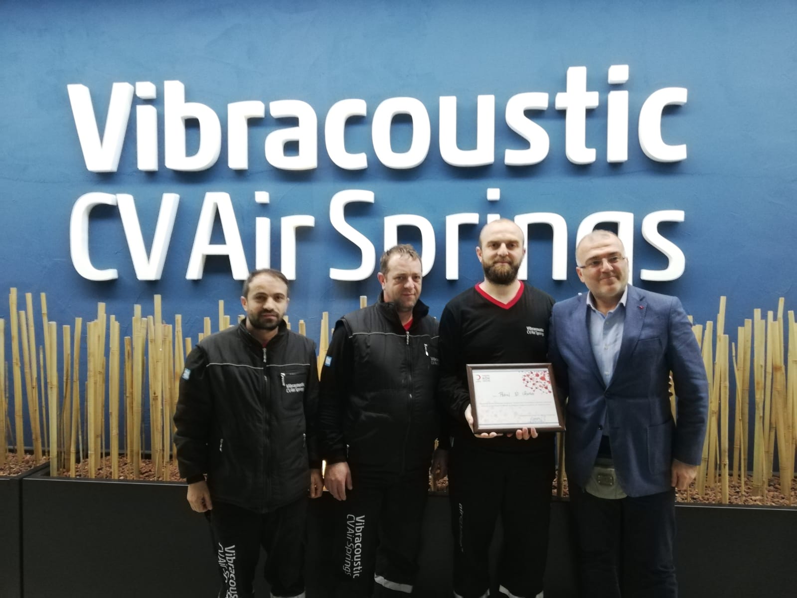 Bursa Şubemizin örgütlü olduğu iş yerlerinden Vibracoustic Cv Air Sprins A.Ş. de çalışan üyelerimiz Kızılay’a kan ve kök hücre bağışında bulundular. Bu duyarlı davranışlarından dolayı Kızılay Güney Marmara Müdürü Ramazan Çiçek tarafından Vibracoustic A.Ş. Fabrika müdürü Burkay Güney ve İnsan Kaynakları Müdürü İlker Yılmazgül’e, Petrol-İş Sendikası adına işyeri temsilcilerimiz Yavuz Giden, Yavuz Demircan ve Zeki Demir’e teşekkür belgesi vererek bu konuda yapmış oldukarı hassas ve duyarlı davranıştan dolayı kendilerine teşekkür ettiler.